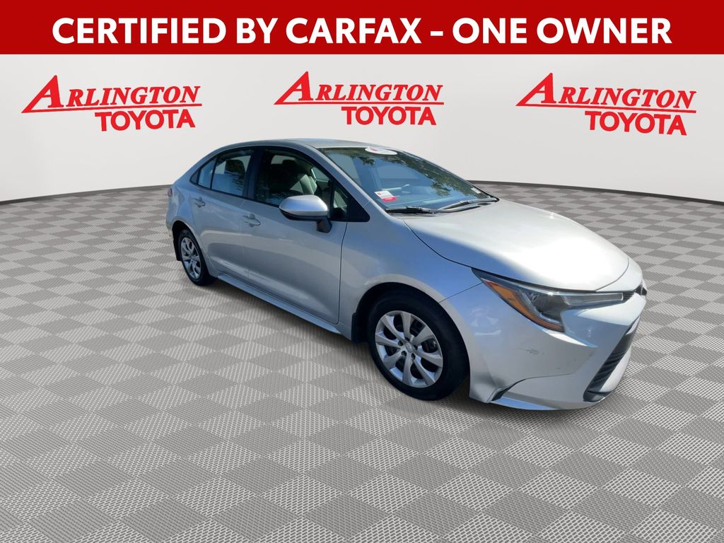CERTIFIED BY CARFAX - ONE OWNER, REMAINDER OF FACTORY WARRANTY STILL APPLIES, BACKUP CAMERA, BLUETOOTH HANDS FREE, ANDROID AUTO, APPLE CARPLAY, LOW MILES, LANE DEPARTURE, ADAPTIVE CRUISE CONTROL, NON SMOKER, Corolla LE, 4D Sedan, 2.0L I4 DOHC 16V, CVT, FWD, Classic Silver Metallic, Light Gray Cloth, ABS brakes, Electronic Stability Control, Fully automatic headlights, Low tire pressure warning, Steering wheel mounted audio controls, 4-Wheel Disc Brakes, 6 Speakers, Air Conditioning, AM/FM radio: SiriusXM, Apple CarPlay/Android Auto, Auto High-beam Headlights, Automatic temperature control, Brake assist, Bumpers: body-color, Delay-off headlights, Driver door bin, Driver vanity mirror, Dual front impact airbags, Dual front side impact airbags, Exterior Parking Camera Rear, Fabric Seat Trim, Front anti-roll bar, Front Bucket Seats, Front Center Armrest, Front reading lights, Front wheel independent suspension, Illuminated entry, Knee airbag, Occupant sensing airbag, Outside temperature display, Overhead airbag, Panic alarm, Passenger door bin, Passenger vanity mirror, Power door mirrors, Power steering, Power windows, Radio data system, Radio: 8" Toyota Audio Multimedia, Rear anti-roll bar, Rear seat center armrest, Rear side impact airbag, Rear window defroster, Remote keyless entry, Speed control, Split folding rear seat, Tachometer, Telescoping steering wheel, Tilt steering wheel, Traction control, Trip computer, Corolla LE, 4D Sedan, 2.0L I4 DOHC 16V, CVT, FWD, Classic Silver Metallic, Light Gray Cloth, ABS brakes, Electronic Stability Control, Fully automatic headlights, Low tire pressure warning, Steering wheel mounted audio controls.