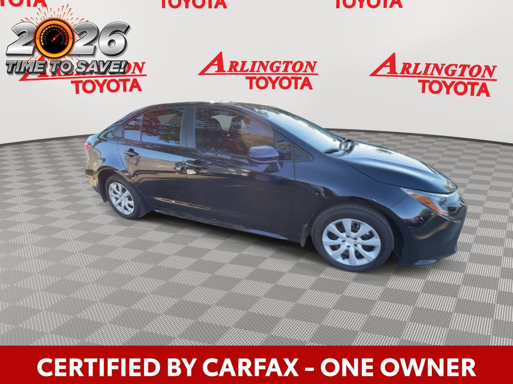 CERTIFIED BY CARFAX - ONE OWNER, REMAINDER OF FACTORY WARRANTY STILL APPLIES, BACKUP CAMERA, BLUETOOTH HANDS FREE, ANDROID AUTO, APPLE CARPLAY, LANE DEPARTURE, ADAPTIVE CRUISE CONTROL, NON SMOKER, Corolla LE, 4D Sedan, 2.0L I4 DOHC 16V, CVT, FWD, Midnight Black Metallic, Black Cloth, ABS brakes, Electronic Stability Control, Fully automatic headlights, Low tire pressure warning, Steering wheel mounted audio controls, 4-Wheel Disc Brakes, 6 Speakers, Air Conditioning, AM/FM radio: SiriusXM, Apple CarPlay/Android Auto, Auto High-beam Headlights, Automatic temperature control, Brake assist, Bumpers: body-color, Delay-off headlights, Driver door bin, Driver vanity mirror, Dual front impact airbags, Dual front side impact airbags, Exterior Parking Camera Rear, Fabric Seat Trim, Front anti-roll bar, Front Bucket Seats, Front Center Armrest, Front reading lights, Front wheel independent suspension, Illuminated entry, Knee airbag, Occupant sensing airbag, Outside temperature display, Overhead airbag, Panic alarm, Passenger door bin, Passenger vanity mirror, Power door mirrors, Power steering, Power windows, Radio data system, Radio: 8" Toyota Audio Multimedia, Rear anti-roll bar, Rear seat center armrest, Rear side impact airbag, Rear window defroster, Remote keyless entry, Speed control, Split folding rear seat, Tachometer, Telescoping steering wheel, Tilt steering wheel, Traction control, Trip computer, Corolla LE, 4D Sedan, 2.0L I4 DOHC 16V, CVT, FWD, Midnight Black Metallic, Black Cloth, ABS brakes, Electronic Stability Control, Fully automatic headlights, Low tire pressure warning, Steering wheel mounted audio controls.