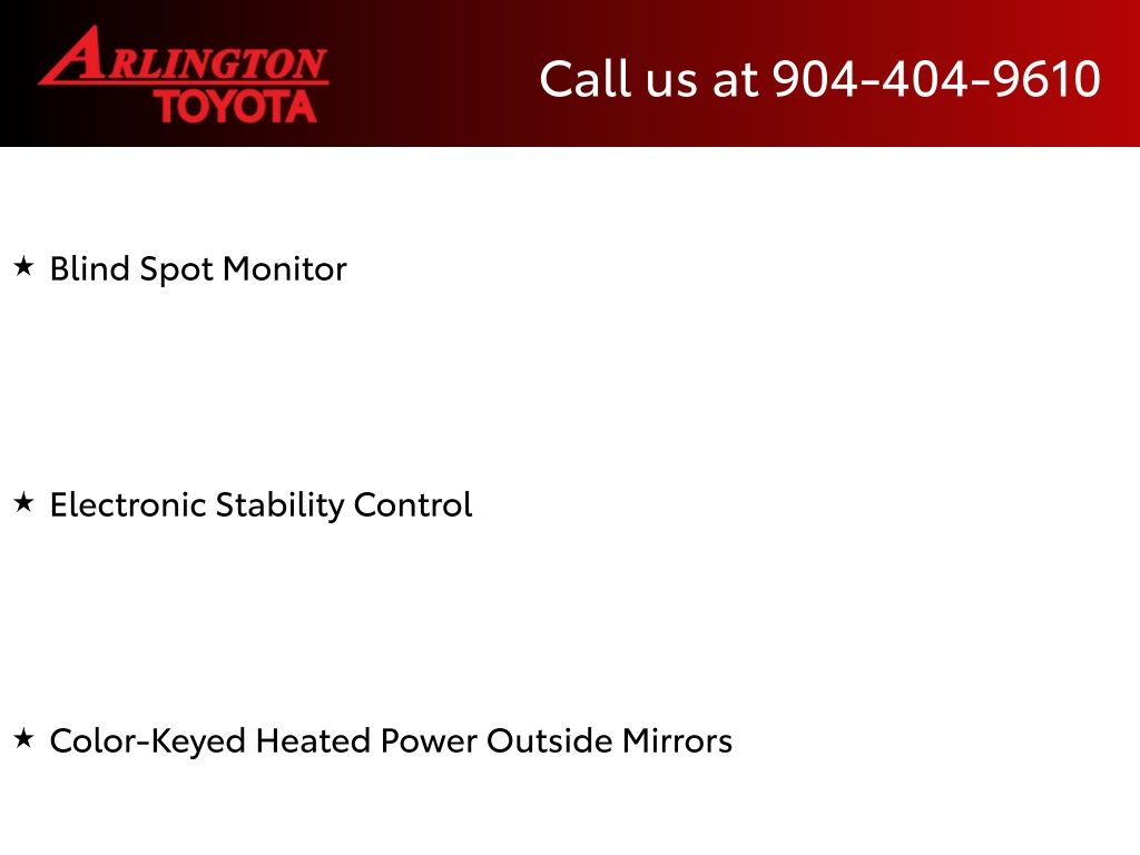 CALL FOR AVAILABILITY AND EXTRA OPTIONS ARLINGTON TOYOTA 904-721-3000.