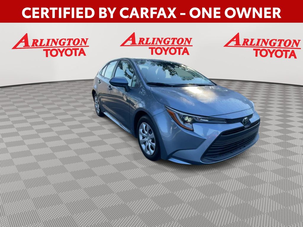 CERTIFIED BY CARFAX - ONE OWNER, REMAINDER OF FACTORY WARRANTY STILL APPLIES, BACKUP CAMERA, BLUETOOTH HANDS FREE, BLIND SPOT MONITORING, ANDROID AUTO, APPLE CARPLAY, LOW MILES, LANE DEPARTURE, ADAPTIVE CRUISE CONTROL, NON SMOKER, Corolla LE, 4D Sedan, 2.0L I4 DOHC 16V, CVT, FWD, Celestite, Black Cloth, ABS brakes, Blind Spot Monitor, Color-Keyed Heated Power Outside Mirrors, Convenience Package, Electronic Stability Control, Low tire pressure warning, Steering wheel mounted audio controls, 4-Wheel Disc Brakes, 6 Speakers, Air Conditioning, AM/FM radio: SiriusXM, Apple CarPlay/Android Auto, Auto High-beam Headlights, Automatic temperature control, Brake assist, Bumpers: body-color, Delay-off headlights, Driver door bin, Driver vanity mirror, Dual front impact airbags, Dual front side impact airbags, Exterior Parking Camera Rear, Fabric Seat Trim, Front anti-roll bar, Front Bucket Seats, Front Center Armrest, Front reading lights, Front wheel independent suspension, Fully automatic headlights, Illuminated entry, Knee airbag, Occupant sensing airbag, Outside temperature display, Overhead airbag, Panic alarm, Passenger door bin, Passenger vanity mirror, Power door mirrors, Power steering, Power windows, Radio data system, Radio: 8" Toyota Audio Multimedia, Rear anti-roll bar, Rear seat center armrest, Rear side impact airbag, Rear window defroster, Remote keyless entry, Speed control, Split folding rear seat, Tachometer, Telescoping steering wheel, Tilt steering wheel, Traction control, Trip computer, Corolla LE, 4D Sedan, 2.0L I4 DOHC 16V, CVT, FWD, Celestite, Black Cloth, ABS brakes, Blind Spot Monitor, Color-Keyed Heated Power Outside Mirrors, Convenience Package, Electronic Stability Control, Low tire pressure warning, Steering wheel mounted audio controls.