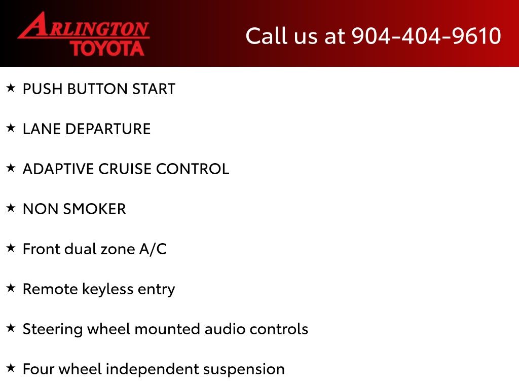 CALL FOR AVAILABILITY AND EXTRA OPTIONS ARLINGTON TOYOTA 904-721-3000.