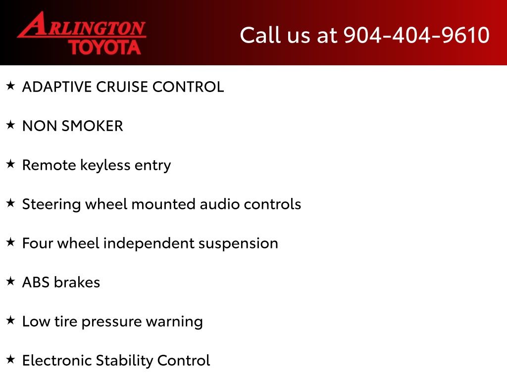 CALL FOR AVAILABILITY AND EXTRA OPTIONS ARLINGTON TOYOTA 904-721-3000.