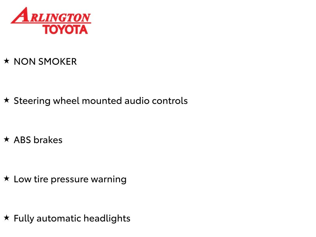 Prices do not include tax, tag, title, a pre-delivery service fee* of $894.00, an electronic registration filing fee* of $199.00 (*these charges represent costs and profits to the dealer for items such as inspecting, cleaning, and preparing documents related to the sale), and an Arlington Toyota Total Value Package of $1,889.00 (*these charges represent costs and profits to the dealer for items such as inspecting, cleaning, and preparing documents related to the sale). The final price is also subject to repair order reconditioning costs. Any price does not include dealer-installed accessories. All offers are mutually exclusive. All vehicles are subject to prior sale. See dealer for complete details.