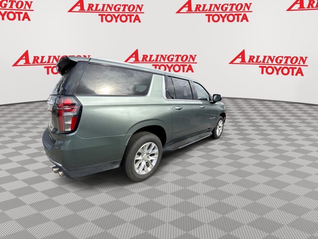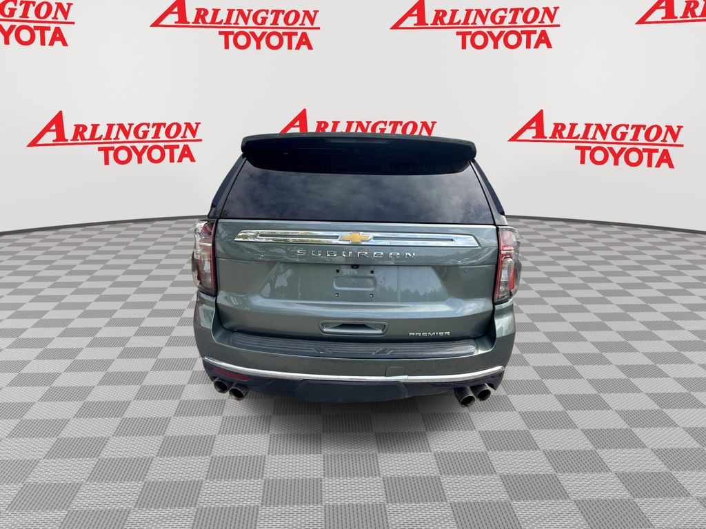CERTIFIED BY CARFAX - ONE OWNER, REMAINDER OF FACTORY WARRANTY STILL APPLIES, BACKUP CAMERA, BLUETOOTH HANDS FREE, ANDROID AUTO, APPLE CARPLAY, 4X4/FOUR WHEEL DRIVE, POWER SEATS, MEMORY SEATS, THIRD ROW SEATING, TOW PACKAGE, PUSH BUTTON START, CRUISE CONTROL, NON SMOKER, Suburban Premier 4X4, 4D Sport Utility, EcoTec3 5.3L V8, 10-Speed Automatic with Overdrive, 4WD, Silver Sage Metallic, Jet Black w/Leather-Appointed Seating, ABS brakes, Electronic Stability Control, Fully automatic headlights, Low tire pressure warning, Steering wheel memory, Steering wheel mounted audio controls, 10 Speakers, 1st & 2nd Row Color-Keyed Carpeted Floor Mats, 2-Speed Active Electronic AutoTrac Transfer Case, 20" x 9" Polished Aluminum Wheels, 3.23 Rear Axle Ratio, 3rd Row 60/40 Power-Folding Split-Bench, 3rd row seats: split-bench, 4-Wheel Disc Brakes, Adaptive suspension, Air Conditioning, Alloy wheels, AM/FM radio: SiriusXM with 360L, Apple CarPlay/Android Auto, Auto High-beam Headlights, Auto-dimming door mirrors, Auto-Dimming Inside Rear-View Mirror, Auto-dimming Rear-View mirror, Auto-leveling suspension, Automatic temperature control, Bose 10-Speaker Surround w/CenterPoint, Brake assist, Bright Front & Rear Door Sill Plates, Bumpers: body-color, Chrome Door Handles w/Body-Color Strip, Chrome Mirror Caps, Color-Keyed Carpeting Floor Covering, Compass, Delay-off headlights, Deleted 3 Years of Remote Access, Driver & Front Outboard Passenger Airbags, Driver door bin, Driver vanity mirror, Dual Exhaust System, Dual front impact airbags, Dual front side impact airbags, Emergency communication system: OnStar and Chevrolet connected services capable, Enhanced Driver Information Center, Floor Console, Four wheel independent suspension, Front anti-roll bar, Front Bucket Seats, Front Center Armrest, Front dual zone A/C, Front reading lights, Garage door transmitter, Hands-Free Rear Power Programmable Liftgate, Heated & Ventilated Driver & Front Passenger Seats, Heated 2nd Row Outboard Seats, Heated door mirrors, Heated Driver & Front Passenger Seats, Heated front seats, Heated rear seats, Heated Steering Wheel, Heated steering wheel, Hill Descent Control, Illuminated entry, Infotainment Display, Lane Change Alert w/Side Blind Zone Alert, LED Daytime Running Lamps, License Plate Front Mounting Package, Magnetic Ride Control Suspension, Memory seat, Memory Settings, Navigation System, Occupant sensing airbag, Outside Heated Power-Adjustable Mirrors, Outside temperature display, Overhead airbag, Overhead console, Panic alarm, Passenger door bin, Passenger vanity mirror, Perforated Leather Seating Surfaces, Power door mirrors, Power driver seat, Power Liftgate, Power passenger seat, Power Release 2nd Row Bucket Seats, Power steering, Power Tilt & Telescopic Steering Column, Power windows, Preferred Equipment Group 1LZ, Premium audio system: Chevrolet Infotainment 3 Premium, Radio: Chevrolet Infotainment 3 Premium System, Rain sensing wipers, Rear air conditioning, Rear anti-roll bar, Rear Cross Traffic Alert, Rear reading lights, Rear window defroster, Rear window wiper, Remote keyless entry, Remote Start, Roof rack: rails only, Safety Alert Seat, Security system, SiriusXM Radio w/360L, Speed control, Speed-sensing steering, Split folding rear seat, Spoiler, Tachometer, Telescoping steering wheel, Tilt steering wheel, Traction control, Trip computer, Turn signal indicator mirrors, Universal Home Remote, Variably intermittent wipers, Ventilated front seats, Voltmeter, Wireless Charging, Wrapped Steering Wheel, Suburban Premier 4X4, 4D Sport Utility, EcoTec3 5.3L V8, 10-Speed Automatic with Overdrive, 4WD, Silver Sage Metallic, Jet Black w/Leather-Appointed Seating, ABS brakes, Electronic Stability Control, Fully automatic headlights, Low tire pressure warning, Steering wheel memory, Steering wheel mounted audio controls.