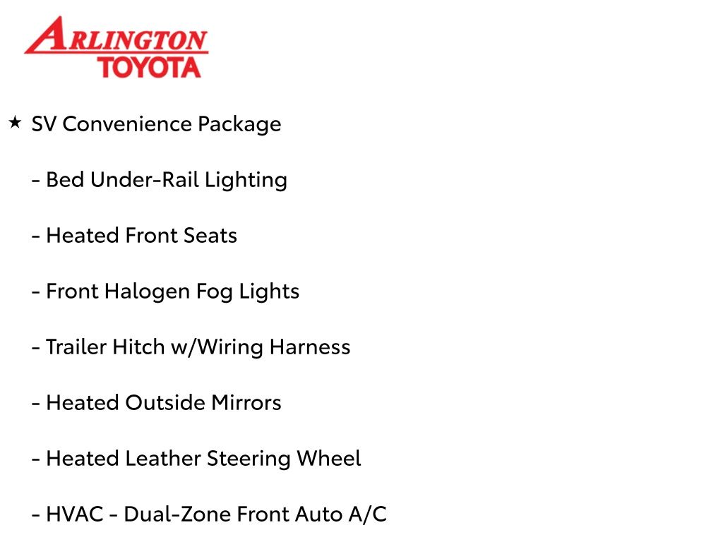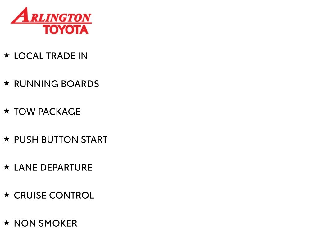 Prices do not include tax, tag, title, a pre-delivery service fee* of $894.00, an electronic registration filing fee* of $199.00 (*these charges represent costs and profits to the dealer for items such as inspecting, cleaning, and preparing documents related to the sale), and an Arlington Toyota Total Value Package of $1,889.00 (*these charges represent costs and profits to the dealer for items such as inspecting, cleaning, and preparing documents related to the sale). The final price is also subject to repair order reconditioning costs. Any price does not include dealer-installed accessories. All offers are mutually exclusive. All vehicles are subject to prior sale. See dealer for complete details.
