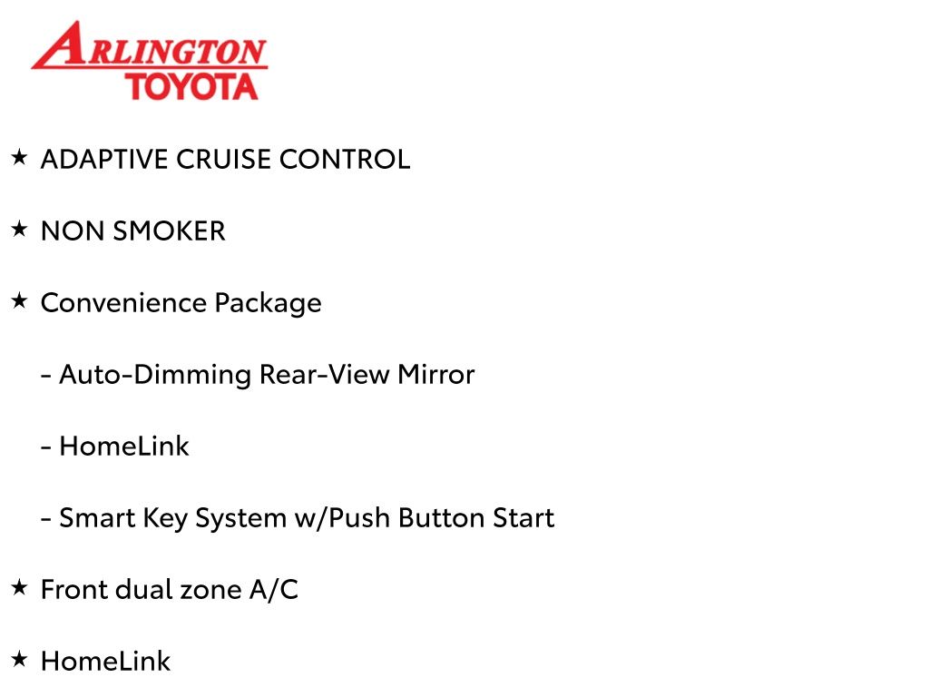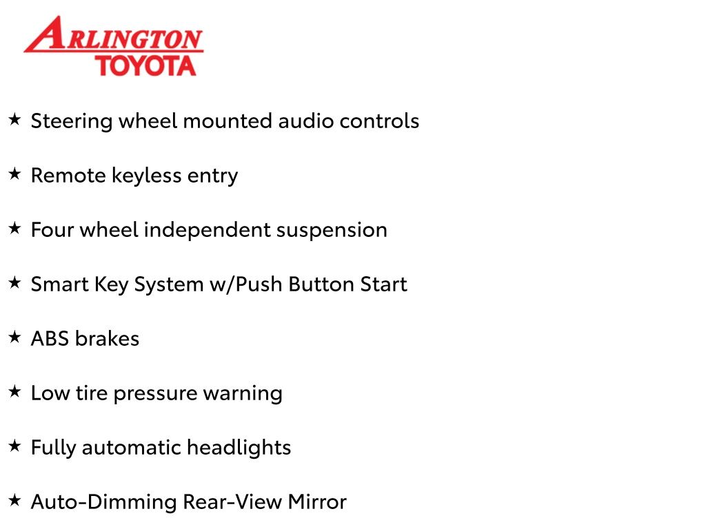 Prices do not include tax, tag, title, a pre-delivery service fee* of $894.00, an electronic registration filing fee* of $199.00 (*these charges represent costs and profits to the dealer for items such as inspecting, cleaning, and preparing documents related to the sale), and an Arlington Toyota Total Value Package of $1,889.00 (*these charges represent costs and profits to the dealer for items such as inspecting, cleaning, and preparing documents related to the sale). The final price is also subject to repair order reconditioning costs. Any price does not include dealer-installed accessories. All offers are mutually exclusive. All vehicles are subject to prior sale. See dealer for complete details.