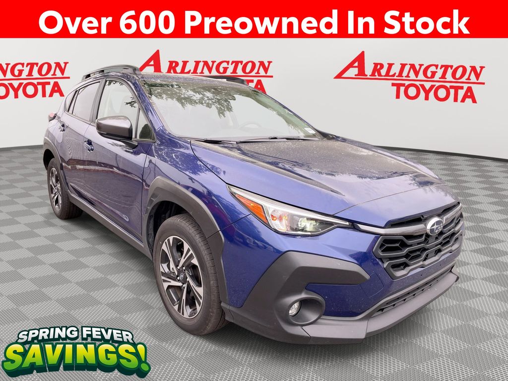 CERTIFIED BY CARFAX - ONE OWNER, REMAINDER OF FACTORY WARRANTY STILL APPLIES, BACKUP CAMERA, BLUETOOTH HANDS FREE, BLIND SPOT MONITORING, ANDROID AUTO, APPLE CARPLAY, AWD/ALLWHEEL DRIVE, POWER SEATS, SUNROOF/MOONROOF, PUSH BUTTON START, LANE DEPARTURE, ADAPTIVE CRUISE CONTROL, NON SMOKER, Crosstrek Premium AWD, 4D Sport Utility, 2.5L 4-Cylinder DOHC 16V, Lineartronic CVT, AWD, Sapphire Blue Pearl, Black Cloth, ABS brakes, Active Cruise Control, Alloy wheels, Electronic Stability Control, Emergency communication system, Front dual zone A/C, Illuminated entry, Low tire pressure warning, Remote keyless entry, Traction control, 10-Way Power Driver's Seat, 4-Wheel Disc Brakes, 6 Speakers, Air Conditioning, All-Weather Package, AM/FM radio: SiriusXM, Anti-whiplash front head restraints, Auto High-beam Headlights, Automatic temperature control, Blind Spot Detection (BSD), Brake assist, BSD/RCTA & All Wthr Pkg & Pwr Dr. Seat & Pwr Moonrf, Bumpers: body-color, Cloth Upholstery, Driver door bin, Driver vanity mirror, Dual front impact airbags, Dual front side impact airbags, Exterior Parking Camera Rear, Four wheel independent suspension, Front anti-roll bar, Front Bucket Seats, Front Center Armrest, Front fog lights, Front reading lights, Fully automatic headlights, Knee airbag, Occupant sensing airbag, Outside temperature display, Overhead airbag, Overhead console, Panic alarm, Passenger door bin, Passenger vanity mirror, Power door mirrors, Power Moonroof, Power steering, Power windows, Radio data system, Radio: Subaru 11.6" Multimedia Plus System, Rear anti-roll bar, Rear Cross-Traffic Alert (RCTA) System, Rear seat center armrest, Rear window defroster, Rear window wiper, Security system, Speed control, Speed-sensing steering, Split folding rear seat, Spoiler, Steering wheel mounted audio controls, Tachometer, Telescoping steering wheel, Tilt steering wheel, Trip computer, Turn signal indicator mirrors, Variably intermittent wipers, Wheels: 17" x 7.0" J Machine Finish Aluminum-Alloy, Crosstrek Premium AWD, 4D Sport Utility, 2.5L 4-Cylinder DOHC 16V, Lineartronic CVT, AWD, Sapphire Blue Pearl, Black Cloth, ABS brakes, Active Cruise Control, Alloy wheels, Electronic Stability Control, Emergency communication system, Front dual zone A/C, Illuminated entry, Low tire pressure warning, Remote keyless entry, Traction control.