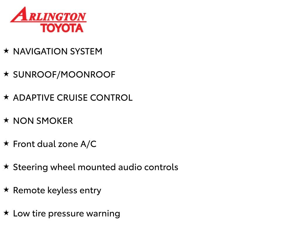 Prices do not include tax, tag, title, a pre-delivery service fee* of $894.00, an electronic registration filing fee* of $199.00 (*these charges represent costs and profits to the dealer for items such as inspecting, cleaning, and preparing documents related to the sale), and an Arlington Toyota Total Value Package of $1,889.00 (*these charges represent costs and profits to the dealer for items such as inspecting, cleaning, and preparing documents related to the sale). The final price is also subject to repair order reconditioning costs. Any price does not include dealer-installed accessories. All offers are mutually exclusive. All vehicles are subject to prior sale. See dealer for complete details.