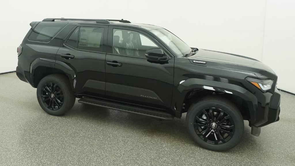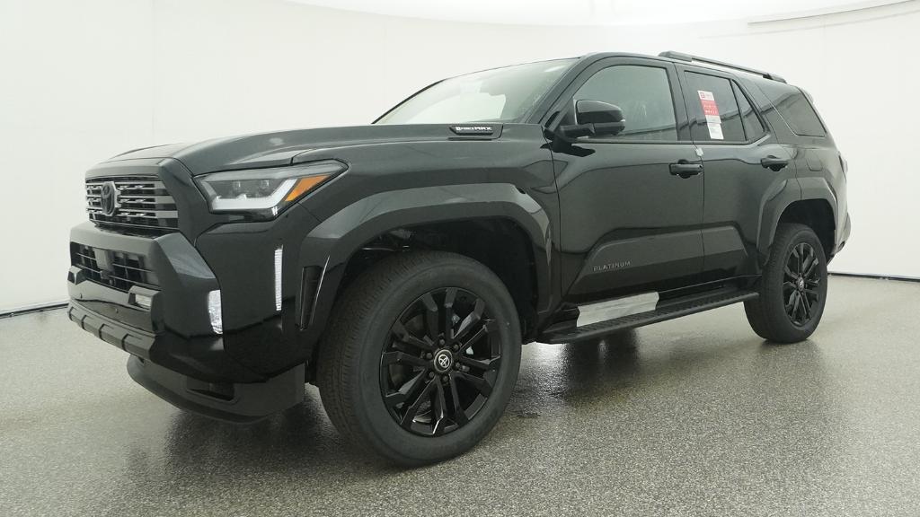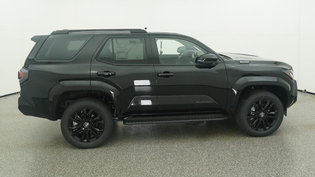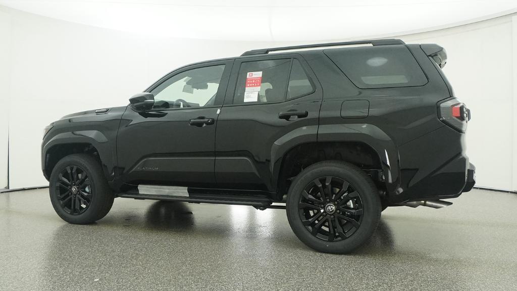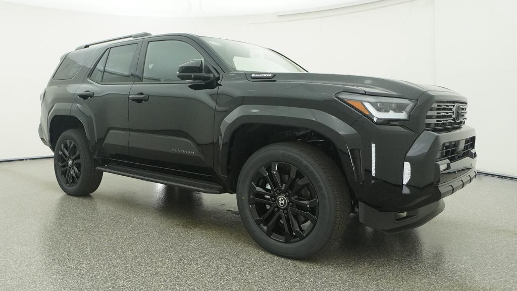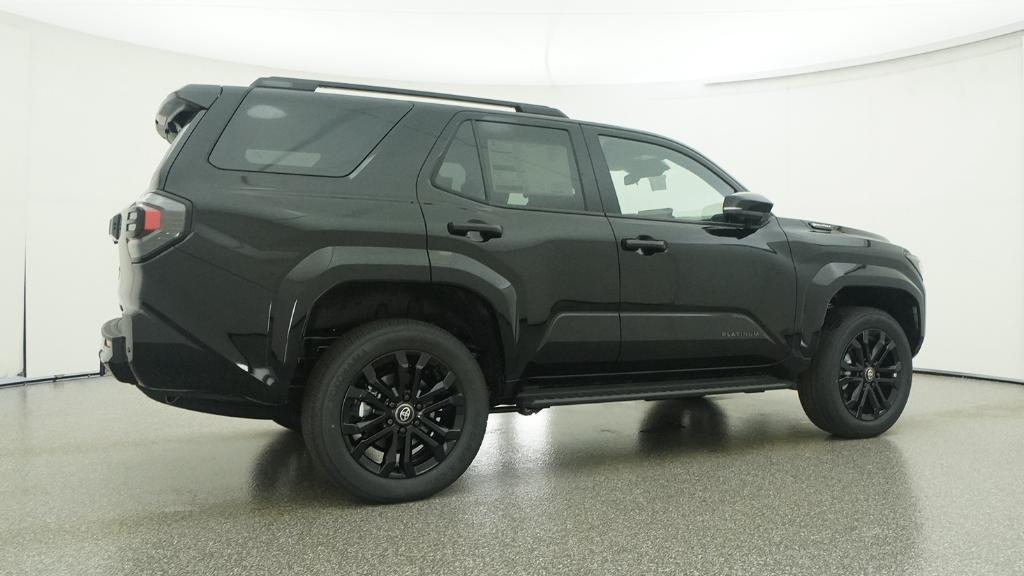 2026 Toyota 4Runner i-FORCE MAX Hybrid Platinum Black 4WD 8-Speed Automatic 2.4L 4-Cylinder15 Speakers, 4-Wheel Disc Brakes, ABS brakes, Air Conditioning, Alloy wheels, AM/FM radio: SiriusXM, Anti-whiplash front head restraints, Apple CarPlay/Android Auto, Auto High-beam Headlights, Auto-dimming Rear-View mirror, Automatic temperature control, Brake assist, Bumpers: body-color, Compass, Delay-off headlights, Driver door bin, Driver vanity mirror, Dual front impact airbags, Dual front side impact airbags, Electronic Stability Control, Emergency communication system: Safety Connect (1-year trial), Exterior Parking Camera Rear, Front anti-roll bar, Front Bucket Seats, Front Center Armrest, Front dual zone A/C, Front fog lights, Front reading lights, Front wheel independent suspension, Fully automatic headlights, Heads-Up Display, Heated and Ventilated Front Bucket Seats, Heated door mirrors, Heated front seats, Heated rear seats, Heated steering wheel, Illuminated entry, Knee airbag, Leather Shift Knob, Leather steering wheel, Low tire pressure warning, Memory seat, Navigation System, Occupant sensing airbag, Outside temperature display, Overhead airbag, Overhead console, Panic alarm, Passenger door bin, Passenger vanity mirror, Power door mirrors, Power driver seat, Power passenger seat, Power steering, Power windows, Radio: 14 Audio, Rain sensing wipers, Rear anti-roll bar, Rear seat center armrest, Rear side impact airbag, Rear window defroster, Rear window wiper, Remote keyless entry, Security system, Semi-Aniline Leather Seat Trim, Speed control, Speed-sensing steering, Split folding rear seat, Spoiler, Steering wheel mounted audio controls, Tachometer, Telescoping steering wheel, Tilt steering wheel, Traction control, Trip computer, Turn signal indicator mirrors, Variably intermittent wipers, Ventilated front seats, Wheels: 20 Gloss-Black Painted Alloy.