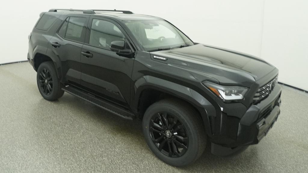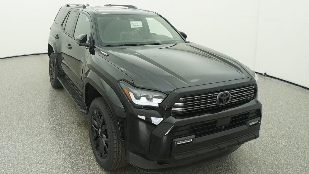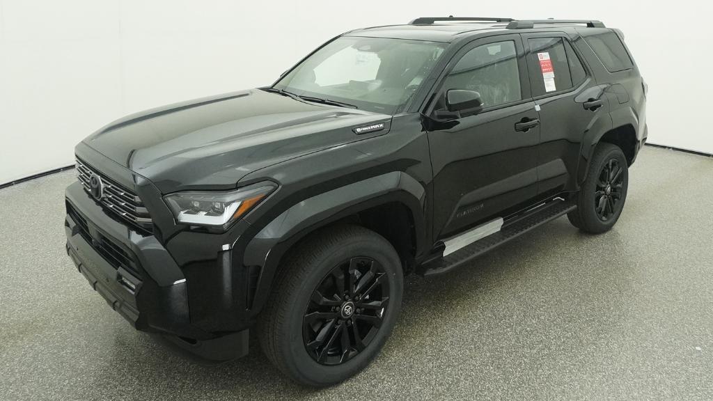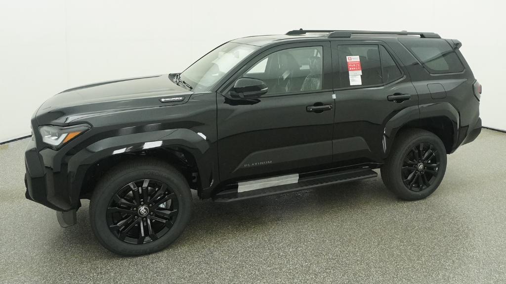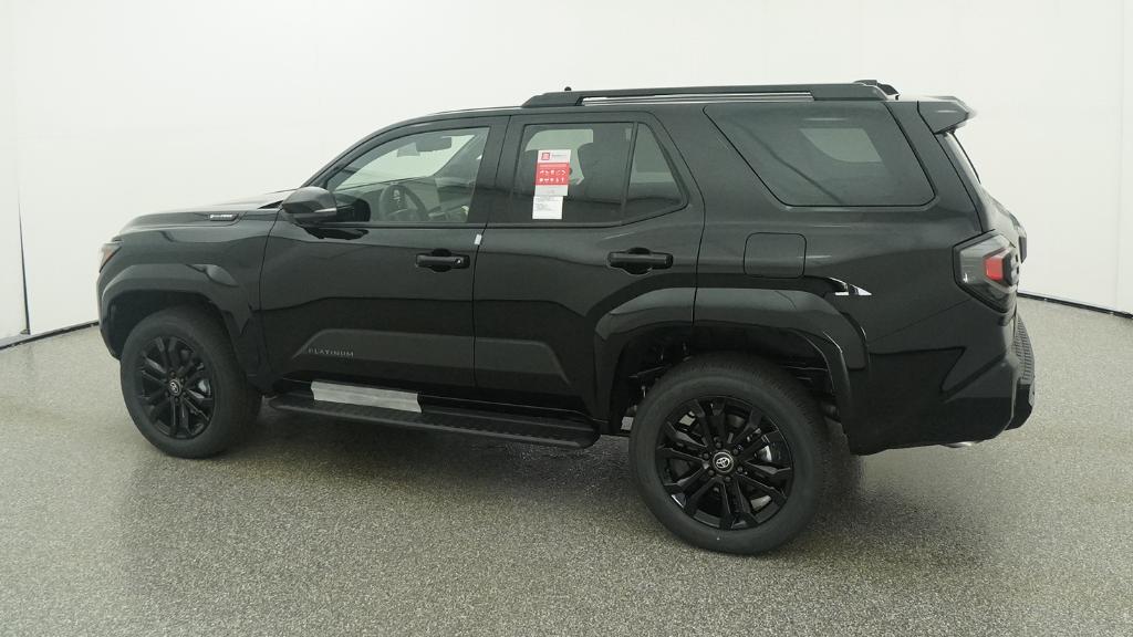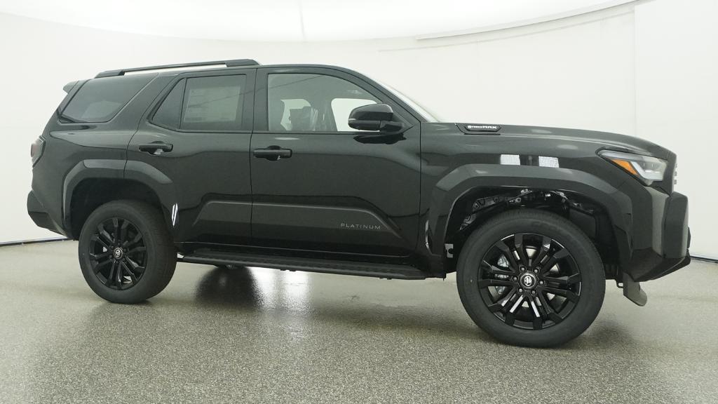 2026 Toyota 4Runner i-FORCE MAX Hybrid Platinum Black 4WD 8-Speed Automatic 2.4L 4-Cylinder15 Speakers, 4-Wheel Disc Brakes, ABS brakes, Air Conditioning, Alloy wheels, AM/FM radio: SiriusXM, Anti-whiplash front head restraints, Apple CarPlay/Android Auto, Auto High-beam Headlights, Auto-dimming Rear-View mirror, Automatic temperature control, Brake assist, Bumpers: body-color, Compass, Delay-off headlights, Driver door bin, Driver vanity mirror, Dual front impact airbags, Dual front side impact airbags, Electronic Stability Control, Emergency communication system: Safety Connect (1-year trial), Exterior Parking Camera Rear, Front anti-roll bar, Front Bucket Seats, Front Center Armrest, Front dual zone A/C, Front fog lights, Front reading lights, Front wheel independent suspension, Fully automatic headlights, Heads-Up Display, Heated and Ventilated Front Bucket Seats, Heated door mirrors, Heated front seats, Heated rear seats, Heated steering wheel, Illuminated entry, Knee airbag, Leather Shift Knob, Leather steering wheel, Low tire pressure warning, Memory seat, Navigation System, Occupant sensing airbag, Outside temperature display, Overhead airbag, Overhead console, Panic alarm, Passenger door bin, Passenger vanity mirror, Power door mirrors, Power driver seat, Power passenger seat, Power steering, Power windows, Radio: 14 Audio, Rain sensing wipers, Rear anti-roll bar, Rear seat center armrest, Rear side impact airbag, Rear window defroster, Rear window wiper, Remote keyless entry, Security system, Semi-Aniline Leather Seat Trim, Speed control, Speed-sensing steering, Split folding rear seat, Spoiler, Steering wheel mounted audio controls, Tachometer, Telescoping steering wheel, Tilt steering wheel, Traction control, Trip computer, Turn signal indicator mirrors, Variably intermittent wipers, Ventilated front seats, Wheels: 20 Gloss-Black Painted Alloy.