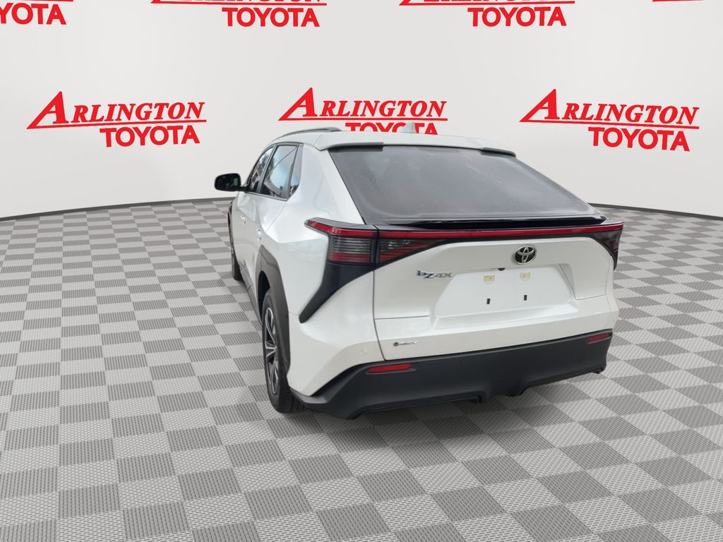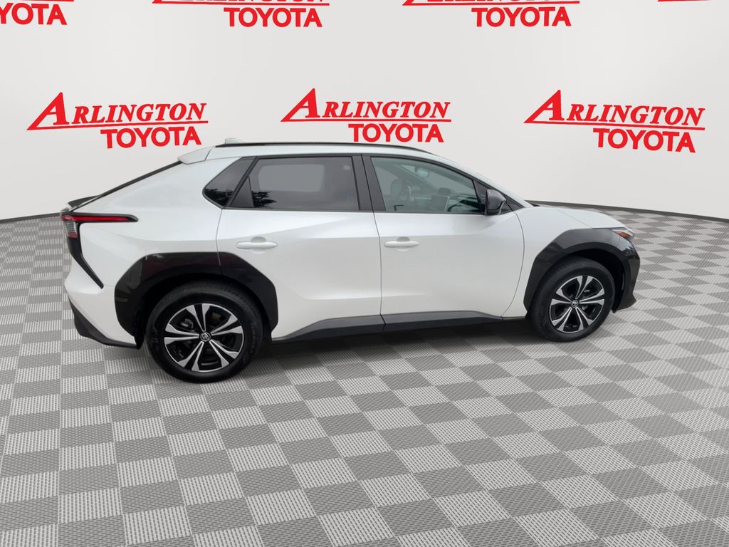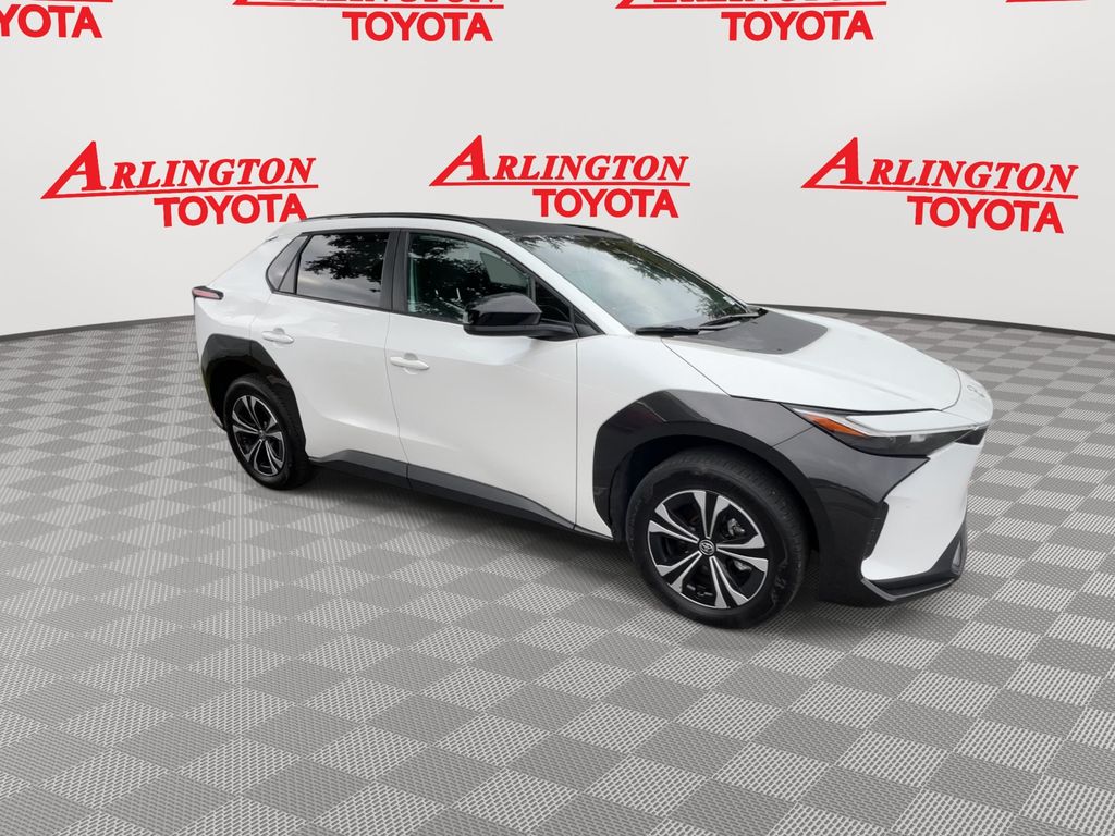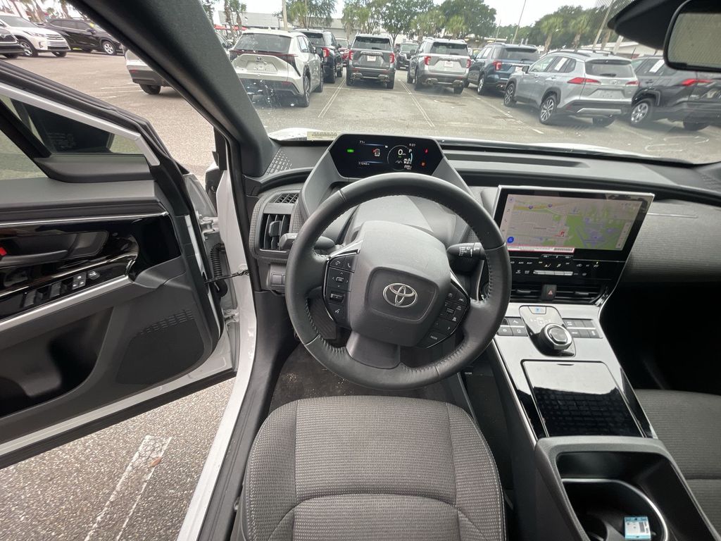 BACKUP CAMERA, BLUETOOTH HANDS FREE, POWER SEATS, POWER LIFTGATE, SUNROOF/MOONROOF, PUSH BUTTON START, LANE DEPARTURE, ADAPTIVE CRUISE CONTROL, NON SMOKER, bZ4X XLE, 4D Sport Utility, Electric Motor, Single-Speed Automatic, FWD, Wind Chill Pearl, Black w/Fabric & SofTex Seat Trim, ABS brakes, Electronic Stability Control, Four wheel independent suspension, Front dual zone A/C, Low tire pressure warning, Remote keyless entry, Steering wheel mounted audio controls, 4-Wheel Disc Brakes, 6 Speakers, Air Conditioning, Alloy wheels, AM/FM radio: SiriusXM, Apple CarPlay/Android Auto, Auto High-beam Headlights, Auto-dimming Rear-View mirror, Automatic temperature control, Axle Ratio TBD, Brake assist, Bumpers: body-color, Delay-off headlights, Driver door bin, Driver vanity mirror, Dual front impact airbags, Dual front side impact airbags, Exterior Parking Camera Rear, Fabric & SofTex Seat Trim, Front anti-roll bar, Front Bucket Seats, Front Center Armrest, Front reading lights, Front Seats, Fully automatic headlights, Heated door mirrors, Illuminated entry, Knee airbag, Leather steering wheel, Navigation system: Drive Connect (3 year trial) includes Cloud Navigation with real time traffic and Google POI, Occupant sensing airbag, Outside temperature display, Overhead airbag, Overhead console, Panic alarm, Passenger door bin, Passenger vanity mirror, Power door mirrors, Power driver seat, Power Liftgate, Power steering, Power windows, Radio data system, Radio: 12.3" Toyota Audio Multimedia w/6 Speakers, Rain sensing wipers, Rear anti-roll bar, Rear seat center armrest, Rear window defroster, Security system, Speed control, Speed-sensing steering, Split folding rear seat, Spoiler, Telescoping steering wheel, Tilt steering wheel, Traction control, Trip computer, Turn signal indicator mirrors, Variably intermittent wipers, Wheels: 18" Alloy w/Two-Tone Covers, bZ4X XLE, 4D Sport Utility, Electric Motor, Single-Speed Automatic, FWD, Wind Chill Pearl, Black w/Fabric & SofTex Seat Trim, ABS brakes, Electronic Stability Control, Four wheel independent suspension, Front dual zone A/C, Low tire pressure warning, Remote keyless entry, Steering wheel mounted audio controls.