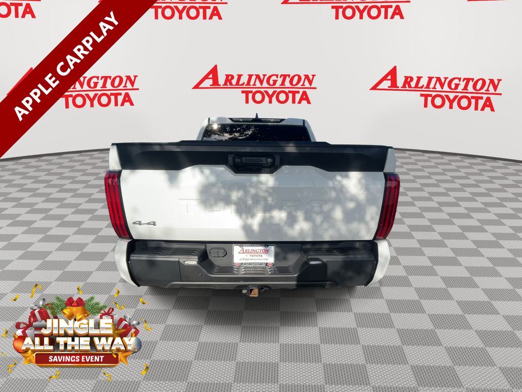 REMAINDER OF FACTORY WARRANTY STILL APPLIES, BACKUP CAMERA, BLUETOOTH HANDS FREE, BLIND SPOT MONITORING, ANDROID AUTO, APPLE CARPLAY, 4X4/FOUR WHEEL DRIVE, BED LINER, LOCAL TRADE IN, TOW PACKAGE, LANE DEPARTURE, ADAPTIVE CRUISE CONTROL, NON SMOKER, Tundra SR5 4X4, 4D CrewMax, 3.4L V6, 10-Speed Automatic, 4WD, Ice Cap, Black Cloth, ABS brakes, Electronic Stability Control, Fully automatic headlights, Low tire pressure warning, Steering wheel mounted audio controls, 18" Alloy Wheels, 3.31 Axle Ratio, 32 Gallon Fuel Tank, 4-Way Adjustable Front Bucket Seats, 4-Wheel Disc Brakes, 9 Speakers, Air Conditioning, Alloy wheels, AM/FM radio: SiriusXM, Apple CarPlay/Android Auto, Auto High-beam Headlights, Automatic temperature control, Blind Spot Monitor, Blind Spot Monitor w/Lane Change Assist, Brake assist, Bumpers: body-color, Delay-off headlights, Driver door bin, Driver vanity mirror, Dual front impact airbags, Dual front side impact airbags, Exterior Parking Camera Rear, Fabric Seat Trim (FB), Front anti-roll bar, Front Bucket Seats, Front Center Armrest, Front fog lights, Front reading lights, Front wheel independent suspension, Heated door mirrors, Heated Power Black Outside Mirrors, Illuminated entry, Knee airbag, Occupant sensing airbag, Outside temperature display, Overhead airbag, Overhead console, Panic alarm, Parking Support Alert/Brake, Passenger door bin, Passenger vanity mirror, Power door mirrors, Power steering, Power windows, Radio data system, Radio: Audio Multimedia System, Rear reading lights, Rear step bumper, Rear window defroster, Remote keyless entry, Safety Connect, Security system, Speed control, Speed-sensing steering, Split folding rear seat, SR5 Convenience Package, Tachometer, Telescoping steering wheel, Tilt steering wheel, Traction control, Trip computer, Variably intermittent wipers, Voltmeter, Tundra SR5 4X4, 4D CrewMax, 3.4L V6, 10-Speed Automatic, 4WD, Ice Cap, Black Cloth, ABS brakes, Electronic Stability Control, Fully automatic headlights, Low tire pressure warning, Steering wheel mounted audio controls.