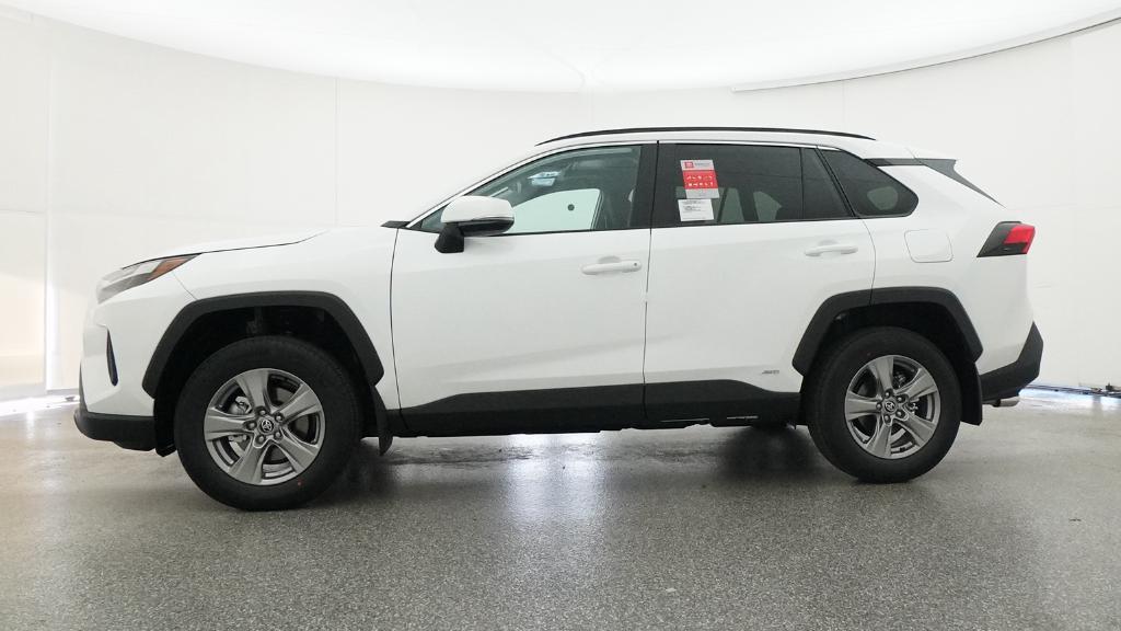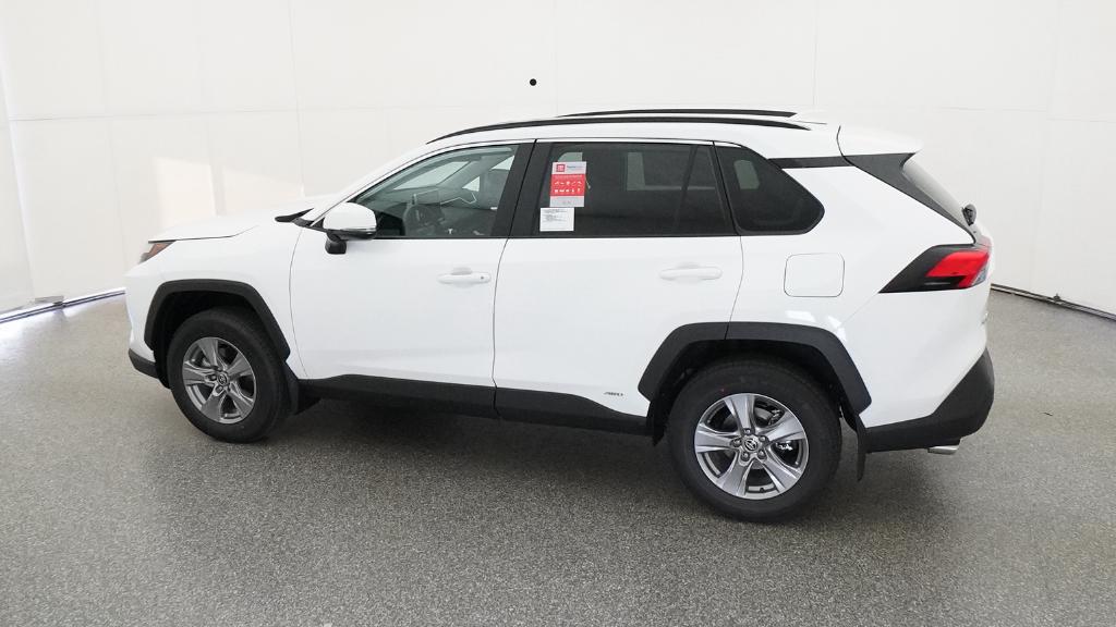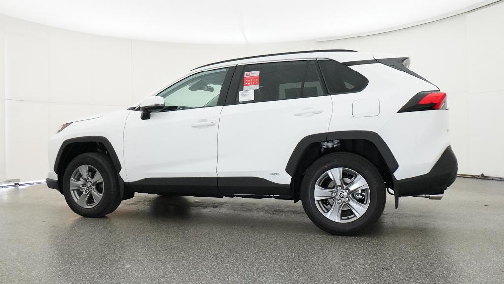 2025 Toyota RAV4 Hybrid XLE Ice Cap AWD eCVT 2.5L 4-Cylinder4-Wheel Disc Brakes, 6 Speakers, ABS brakes, Air Conditioning, Alloy wheels, AM/FM radio: SiriusXM, Auto High-beam Headlights, Automatic temperature control, Brake assist, Bumpers: body-color, Delay-off headlights, Driver door bin, Driver vanity mirror, Dual front impact airbags, Dual front side impact airbags, Electronic Stability Control, Emergency communication system: Safety Connect (1-year trial), Exterior Parking Camera Rear, Fabric Seat Trim, Four wheel independent suspension, Front anti-roll bar, Front Bucket Seats, Front Center Armrest, Front dual zone A/C, Front reading lights, Fully automatic headlights, Heated door mirrors, Illuminated entry, Knee airbag, Low tire pressure warning, Occupant sensing airbag, Outside temperature display, Overhead airbag, Overhead console, Panic alarm, Passenger door bin, Passenger vanity mirror, Power door mirrors, Power driver seat, Power steering, Power windows, Radio data system, Radio: AM/FM/XM Audio System, Rear anti-roll bar, Rear seat center armrest, Rear window defroster, Rear window wiper, Remote keyless entry, Speed control, Speed-sensing steering, Split folding rear seat, Spoiler, Steering wheel mounted audio controls, Telescoping steering wheel, Tilt steering wheel, Traction control, Trip computer, Turn signal indicator mirrors, Variably intermittent wipers, Wheels: 17 x 7.0J Silver Aluminum Alloy.