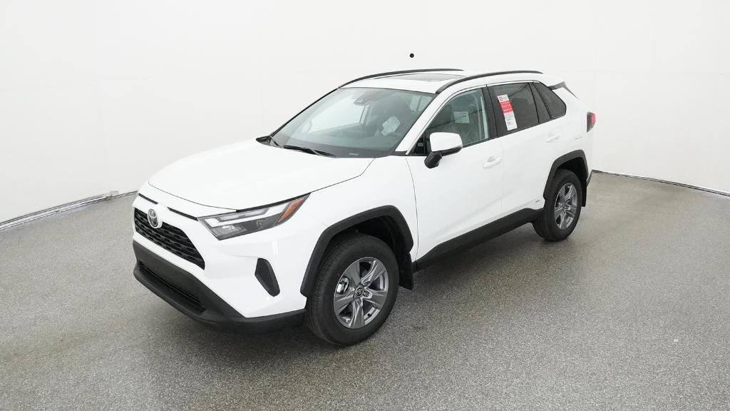 2025 Toyota RAV4 Hybrid XLE Ice Cap AWD eCVT 2.5L 4-Cylinder4-Wheel Disc Brakes, 6 Speakers, ABS brakes, Air Conditioning, Alloy wheels, AM/FM radio: SiriusXM, Auto High-beam Headlights, Automatic temperature control, Brake assist, Bumpers: body-color, Delay-off headlights, Driver door bin, Driver vanity mirror, Dual front impact airbags, Dual front side impact airbags, Electronic Stability Control, Emergency communication system: Safety Connect (1-year trial), Exterior Parking Camera Rear, Fabric Seat Trim, Four wheel independent suspension, Front anti-roll bar, Front Bucket Seats, Front Center Armrest, Front dual zone A/C, Front reading lights, Fully automatic headlights, Heated door mirrors, Illuminated entry, Knee airbag, Low tire pressure warning, Occupant sensing airbag, Outside temperature display, Overhead airbag, Overhead console, Panic alarm, Passenger door bin, Passenger vanity mirror, Power door mirrors, Power driver seat, Power steering, Power windows, Radio data system, Radio: AM/FM/XM Audio System, Rear anti-roll bar, Rear seat center armrest, Rear window defroster, Rear window wiper, Remote keyless entry, Speed control, Speed-sensing steering, Split folding rear seat, Spoiler, Steering wheel mounted audio controls, Telescoping steering wheel, Tilt steering wheel, Traction control, Trip computer, Turn signal indicator mirrors, Variably intermittent wipers, Wheels: 17 x 7.0J Silver Aluminum Alloy.