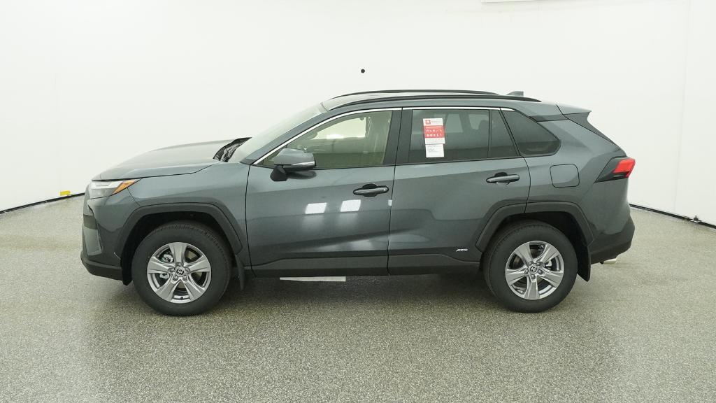 2025 Toyota RAV4 Hybrid XLE Magnetic Gray Metallic AWD eCVT 2.5L 4-Cylinder4-Wheel Disc Brakes, 6 Speakers, ABS brakes, Air Conditioning, Alloy wheels, AM/FM radio: SiriusXM, Auto High-beam Headlights, Automatic temperature control, Brake assist, Bumpers: body-color, Delay-off headlights, Driver door bin, Driver vanity mirror, Dual front impact airbags, Dual front side impact airbags, Electronic Stability Control, Emergency communication system: Safety Connect (1-year trial), Exterior Parking Camera Rear, Fabric Seat Trim, Four wheel independent suspension, Front anti-roll bar, Front Bucket Seats, Front Center Armrest, Front dual zone A/C, Front reading lights, Fully automatic headlights, Heated door mirrors, Illuminated entry, Knee airbag, Low tire pressure warning, Occupant sensing airbag, Outside temperature display, Overhead airbag, Overhead console, Panic alarm, Passenger door bin, Passenger vanity mirror, Power door mirrors, Power driver seat, Power steering, Power windows, Radio data system, Radio: AM/FM/XM Audio System, Rear anti-roll bar, Rear seat center armrest, Rear window defroster, Rear window wiper, Remote keyless entry, Speed control, Speed-sensing steering, Split folding rear seat, Spoiler, Steering wheel mounted audio controls, Telescoping steering wheel, Tilt steering wheel, Traction control, Trip computer, Turn signal indicator mirrors, Variably intermittent wipers, Wheels: 17 x 7.0J Silver Aluminum Alloy.