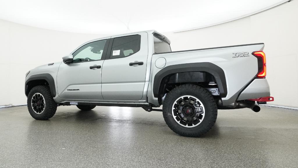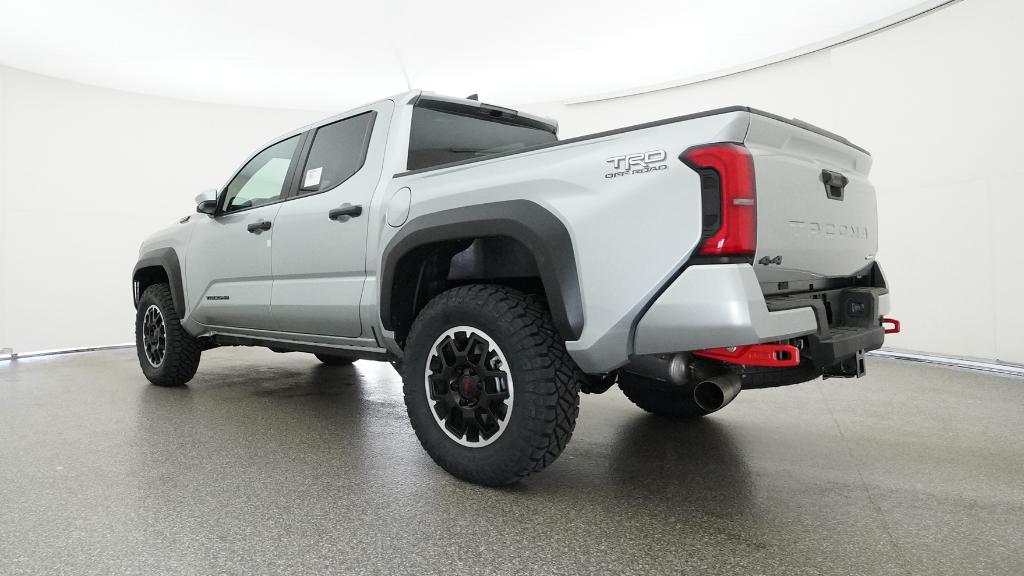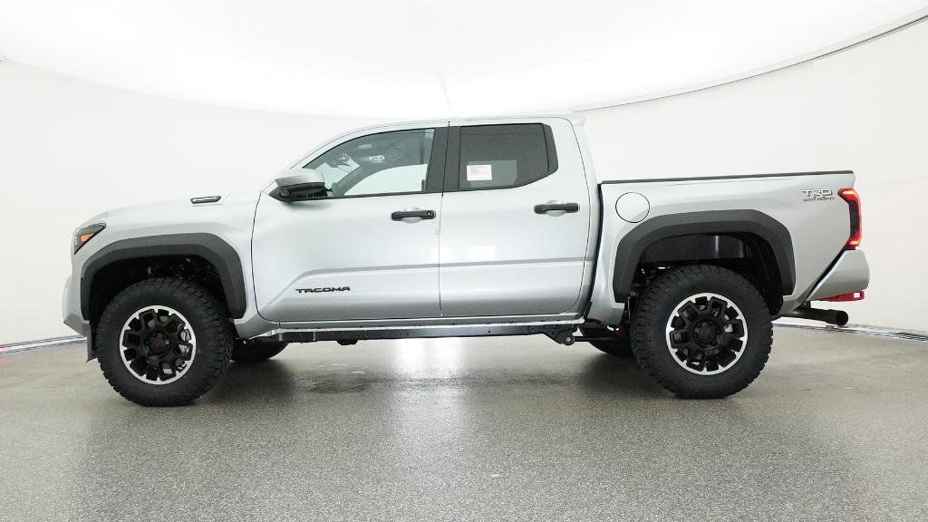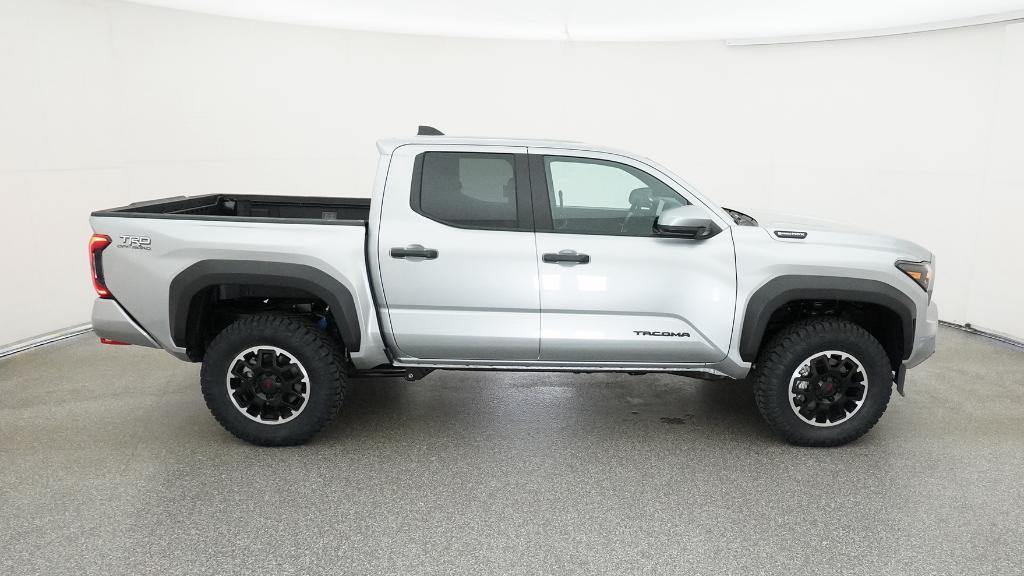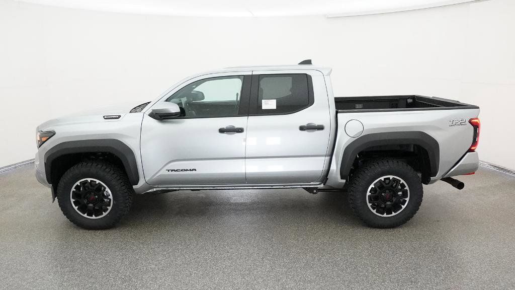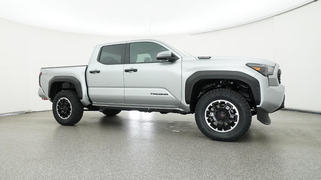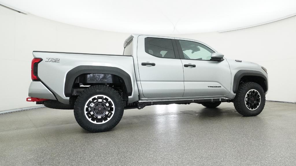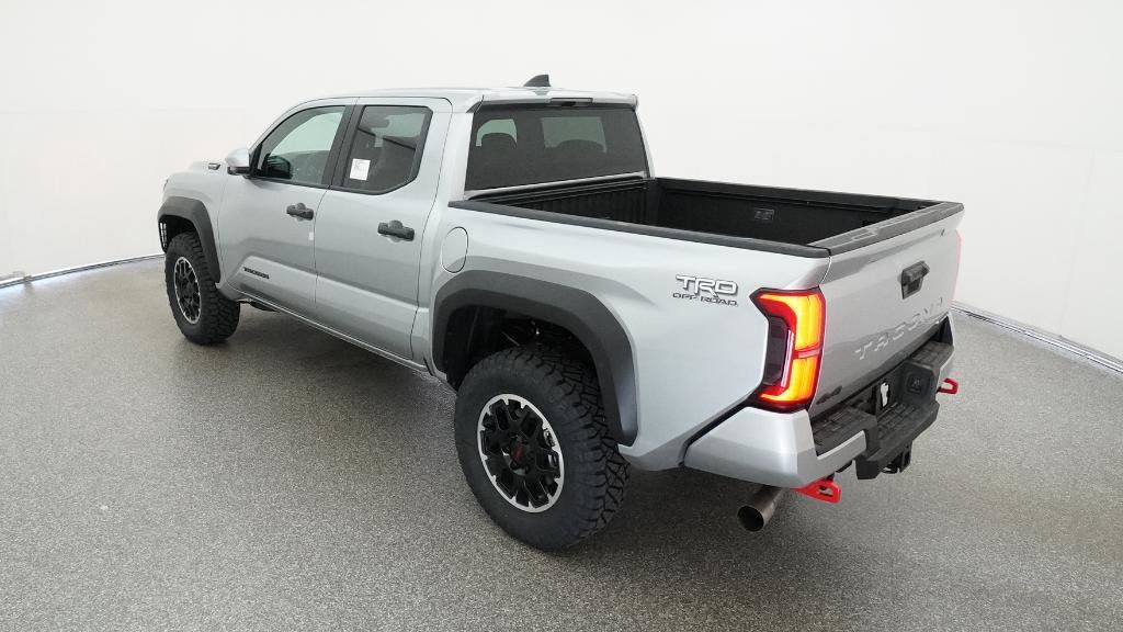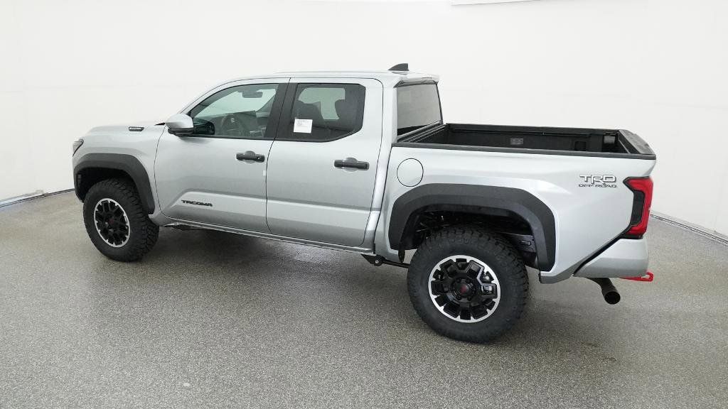 2025 Toyota Tacoma Hybrid TRD Off Road Celestial Silver Metallic 4WD 8-Speed Automatic 2.4L I4 PDI Hybrid Turbocharged DOHC 16V18 Alloy Wheels, 3.583 Axle Ratio, 4-Wheel Disc Brakes, 6 Speakers, ABS brakes, Air Conditioning, Alloy wheels, AM/FM radio: SiriusXM, Anti-whiplash front head restraints, Apple CarPlay/Android Auto, Auto High-beam Headlights, Auto-dimming Rear-View mirror, Automatic temperature control, Brake assist, Bumpers: body-color, Driver door bin, Driver vanity mirror, Dual front impact airbags, Dual front side impact airbags, Electronic Stability Control, Emergency communication system: Safety Connect (1-year trial), Exterior Parking Camera Rear, Fabric Seat Trim, Four wheel independent suspension, Front anti-roll bar, Front Bucket Seats, Front Center Armrest, Front fog lights, Front reading lights, Fully automatic headlights, Heated door mirrors, Illuminated entry, JBL Premium Audio, Knee airbag, Leather Shift Knob, Leather steering wheel, Low tire pressure warning, Navigation system: Drive Connect (1 year trial) includes Cloud Navigation with real time traffic and Google POI, Occupant sensing airbag, Outside temperature display, Overhead airbag, Overhead console, Panic alarm, Passenger door bin, Passenger vanity mirror, Power door mirrors, Power steering, Power windows, Radio: 14 Toyota Audio Multimedia, Radio: 8 Toyota Audio Multimedia, Rear step bumper, Rear window defroster, Remote keyless entry, Security system, SofTex Seat Trim, Speed control, Speed-sensing steering, Split folding rear seat, Steering wheel mounted audio controls, Tachometer, Telescoping steering wheel, Tilt steering wheel, Traction control, Trip computer, Turn signal indicator mirrors, Variably intermittent wipers.