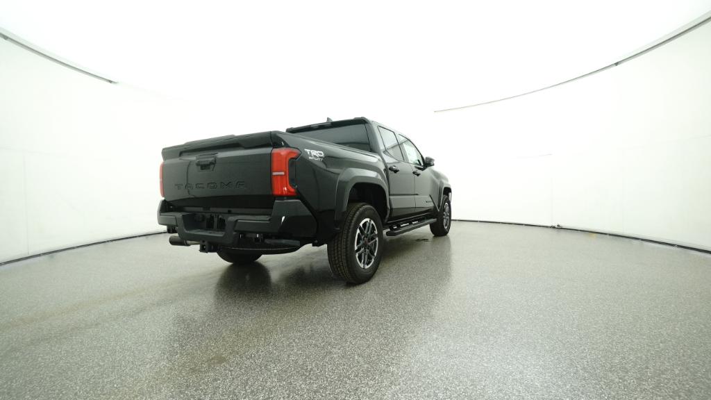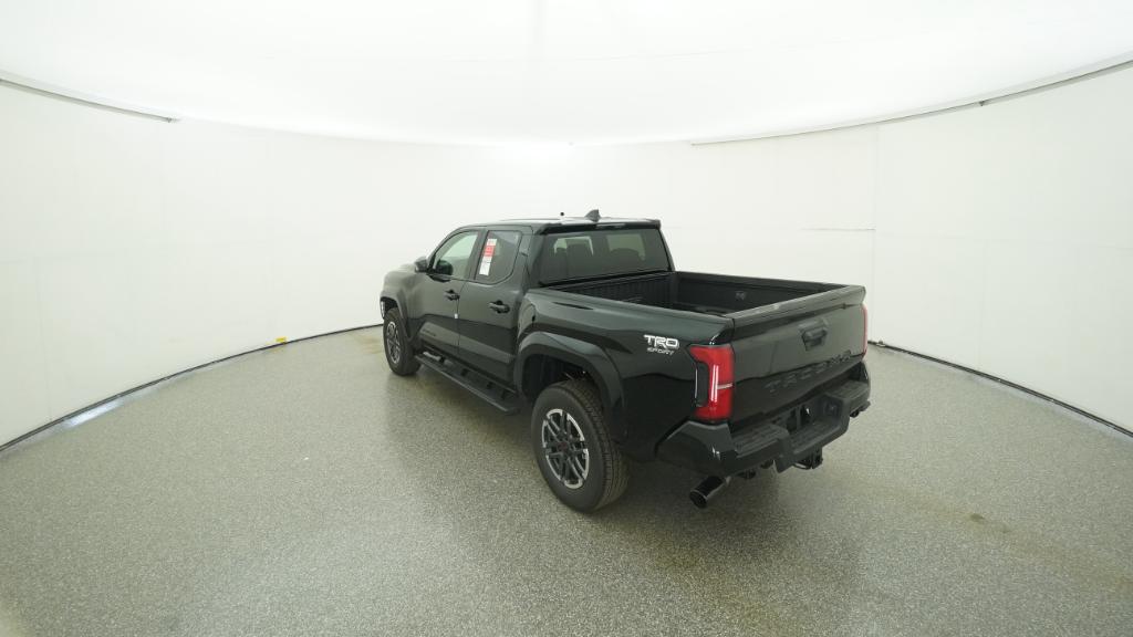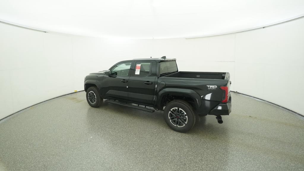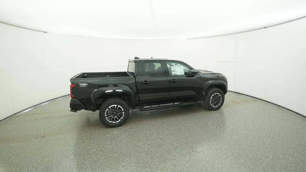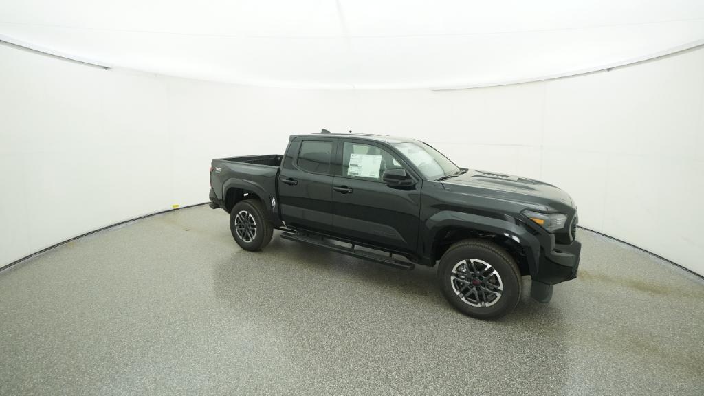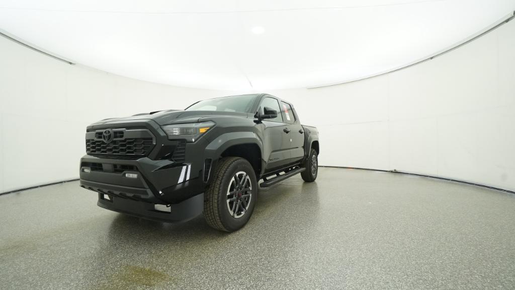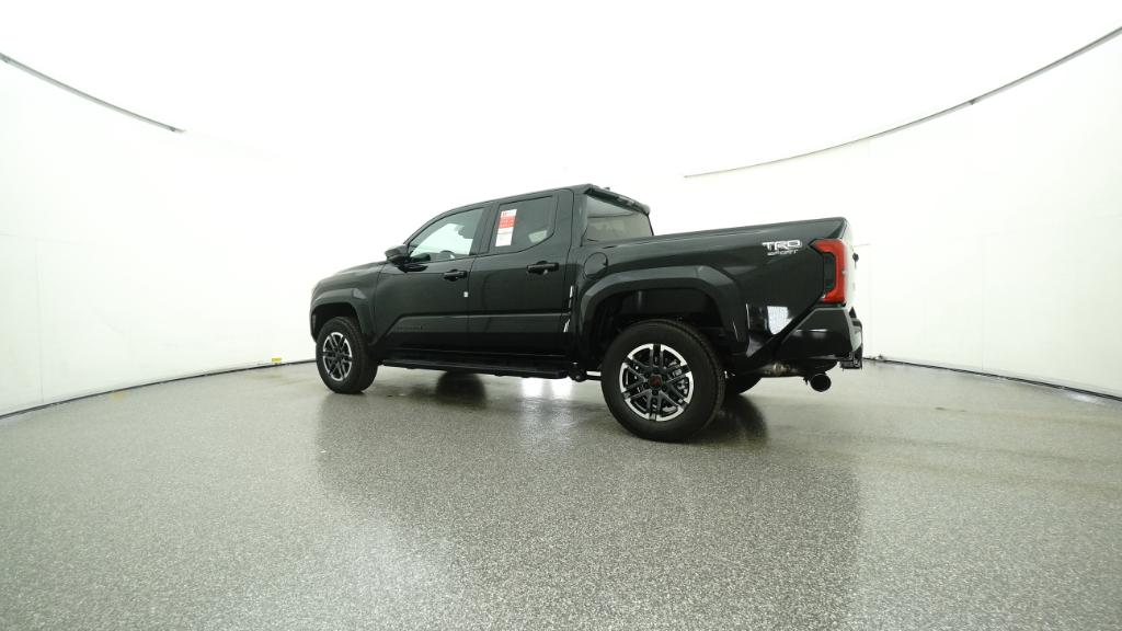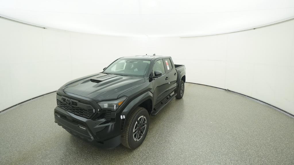 2025 Toyota Tacoma TRD Sport Black RWD 8-Speed Automatic 2.4L 4-Cylinder3.583 Axle Ratio, 4-Wheel Disc Brakes, 6 Speakers, ABS brakes, Air Conditioning, Alloy wheels, AM/FM radio: SiriusXM, Anti-whiplash front head restraints, Apple CarPlay/Android Auto, Auto High-beam Headlights, Auto-dimming Rear-View mirror, Automatic temperature control, Brake assist, Bumpers: body-color, Driver door bin, Driver vanity mirror, Dual front impact airbags, Dual front side impact airbags, Electronic Stability Control, Emergency communication system: Safety Connect (1-year trial), Exterior Parking Camera Rear, Fabric Seat Trim, Four wheel independent suspension, Front anti-roll bar, Front Bucket Seats, Front Center Armrest, Front fog lights, Front reading lights, Fully automatic headlights, Heated door mirrors, Illuminated entry, Knee airbag, Leather Shift Knob, Leather steering wheel, Low tire pressure warning, Occupant sensing airbag, Outside temperature display, Overhead airbag, Overhead console, Panic alarm, Passenger door bin, Passenger vanity mirror, Power door mirrors, Power steering, Power windows, Radio: 8 Toyota Audio Multimedia, Rear step bumper, Rear window defroster, Remote keyless entry, Security system, Speed control, Speed-sensing steering, Split folding rear seat, Steering wheel mounted audio controls, Tachometer, Telescoping steering wheel, Tilt steering wheel, Traction control, Trip computer, Turn signal indicator mirrors, Variably intermittent wipers, Wheels: 18 TRD Sport Alloy.