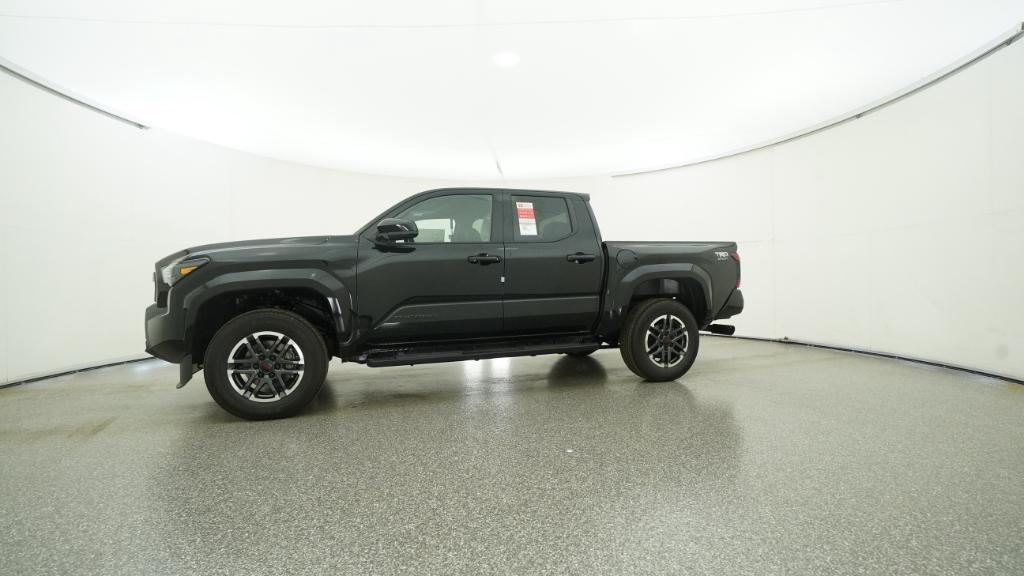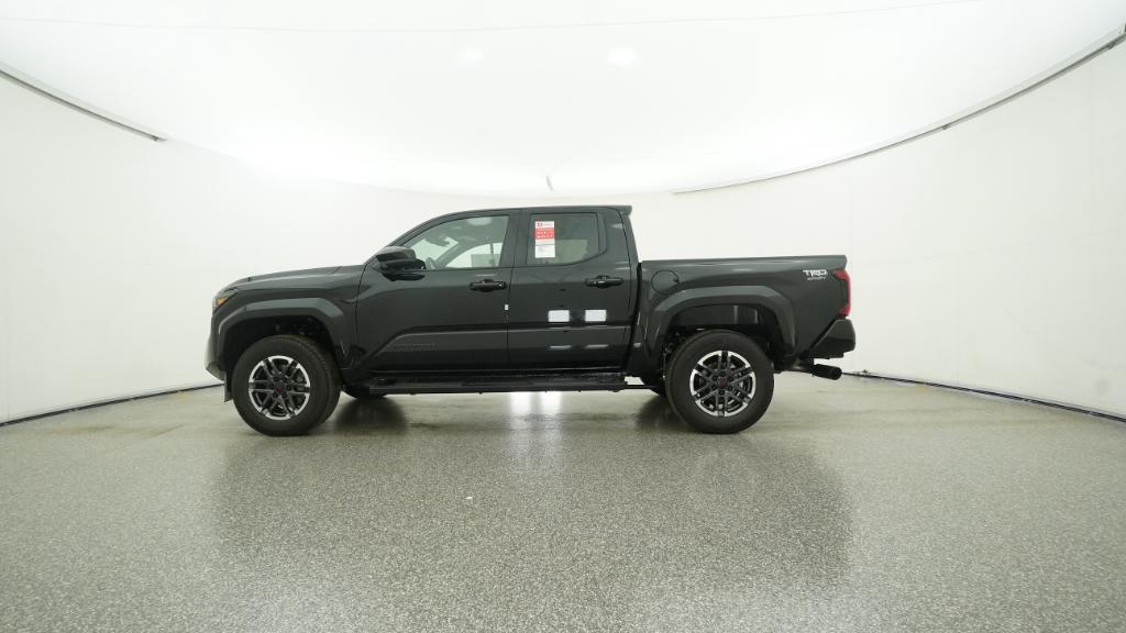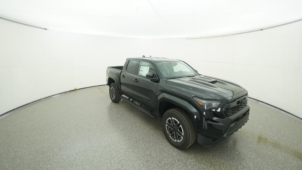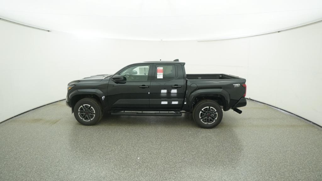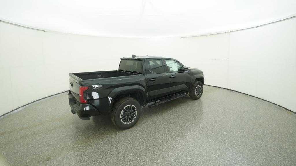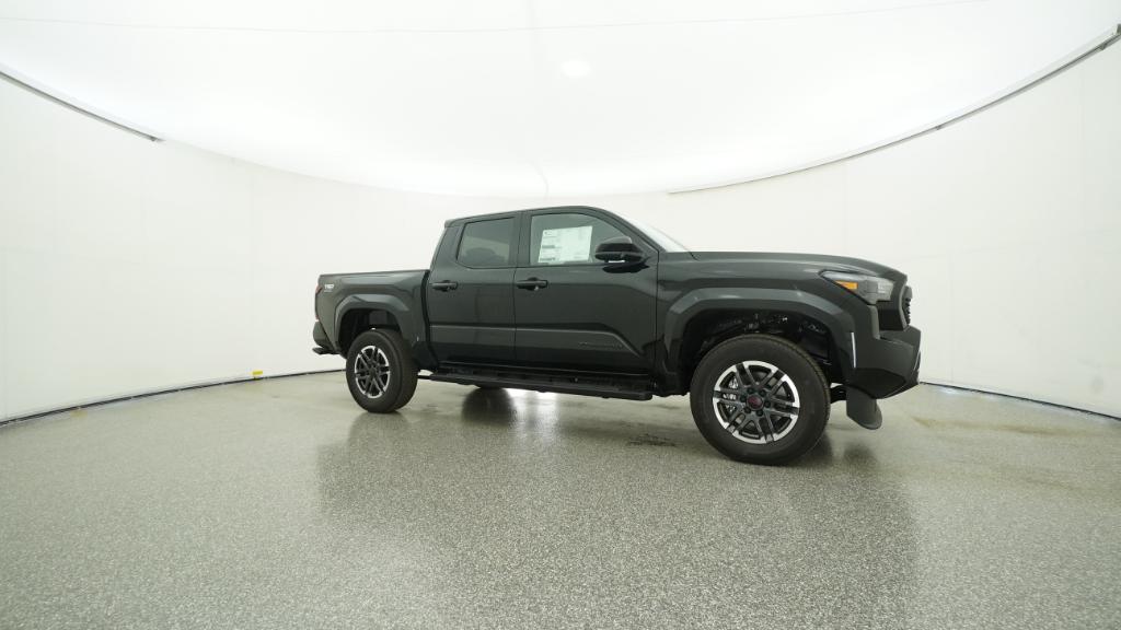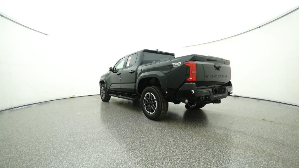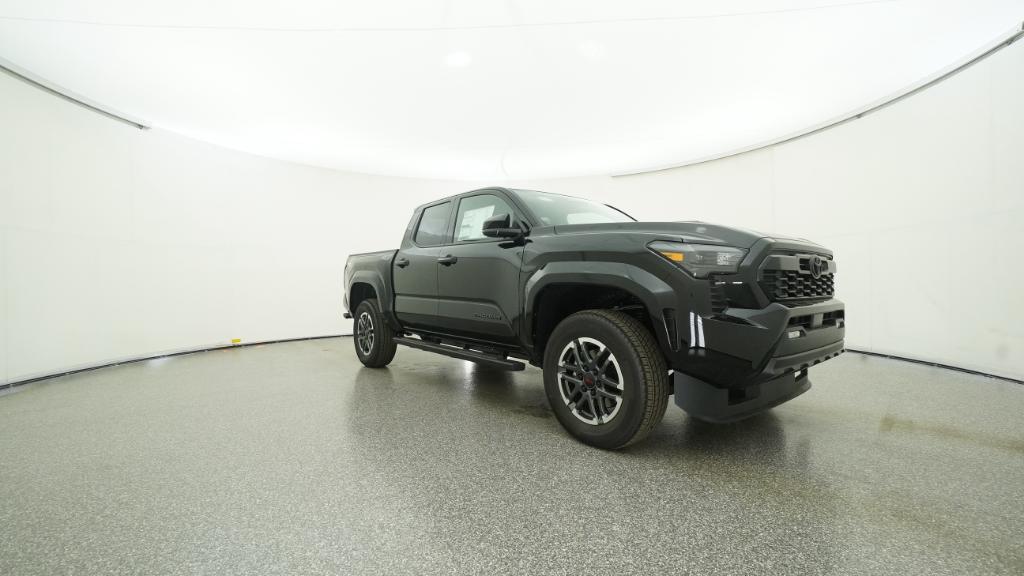 2025 Toyota Tacoma TRD Sport Black RWD 8-Speed Automatic 2.4L 4-Cylinder3.583 Axle Ratio, 4-Wheel Disc Brakes, 6 Speakers, ABS brakes, Air Conditioning, Alloy wheels, AM/FM radio: SiriusXM, Anti-whiplash front head restraints, Apple CarPlay/Android Auto, Auto High-beam Headlights, Auto-dimming Rear-View mirror, Automatic temperature control, Brake assist, Bumpers: body-color, Driver door bin, Driver vanity mirror, Dual front impact airbags, Dual front side impact airbags, Electronic Stability Control, Emergency communication system: Safety Connect (1-year trial), Exterior Parking Camera Rear, Fabric Seat Trim, Four wheel independent suspension, Front anti-roll bar, Front Bucket Seats, Front Center Armrest, Front fog lights, Front reading lights, Fully automatic headlights, Heated door mirrors, Illuminated entry, Knee airbag, Leather Shift Knob, Leather steering wheel, Low tire pressure warning, Occupant sensing airbag, Outside temperature display, Overhead airbag, Overhead console, Panic alarm, Passenger door bin, Passenger vanity mirror, Power door mirrors, Power steering, Power windows, Radio: 8 Toyota Audio Multimedia, Rear step bumper, Rear window defroster, Remote keyless entry, Security system, Speed control, Speed-sensing steering, Split folding rear seat, Steering wheel mounted audio controls, Tachometer, Telescoping steering wheel, Tilt steering wheel, Traction control, Trip computer, Turn signal indicator mirrors, Variably intermittent wipers, Wheels: 18 TRD Sport Alloy.