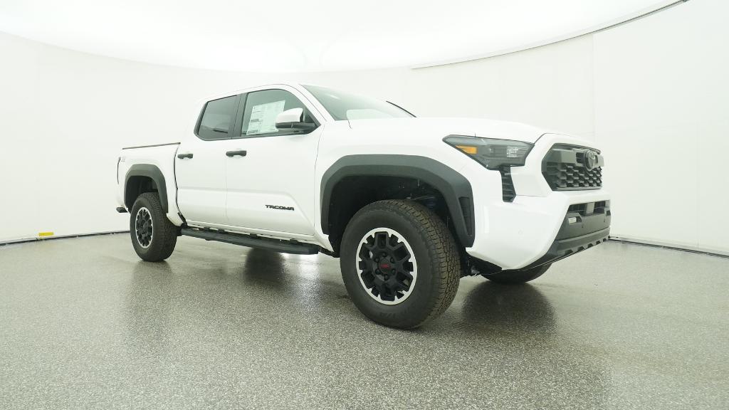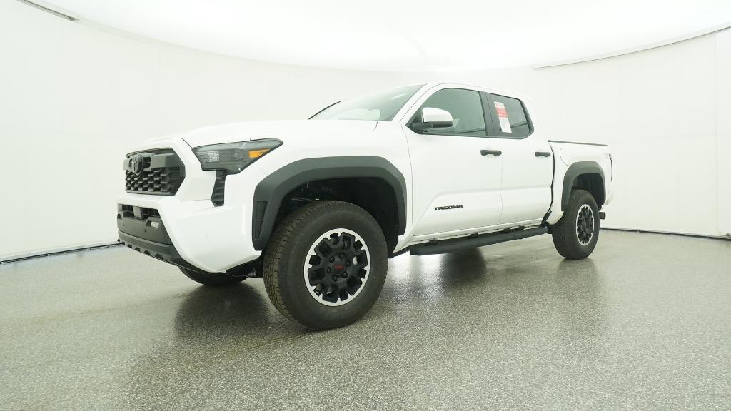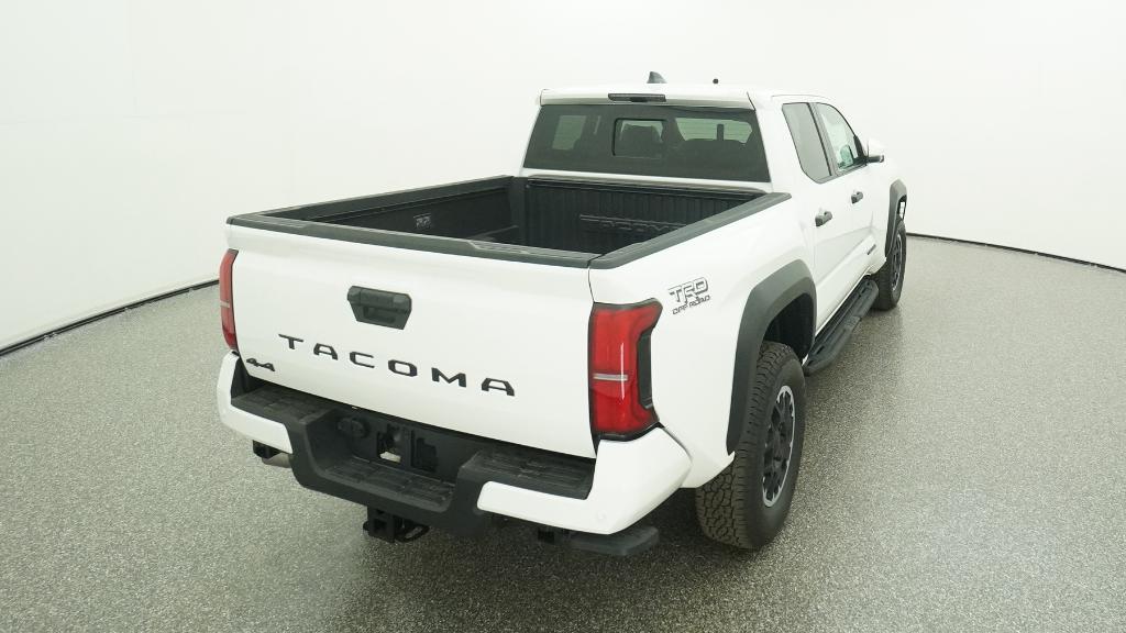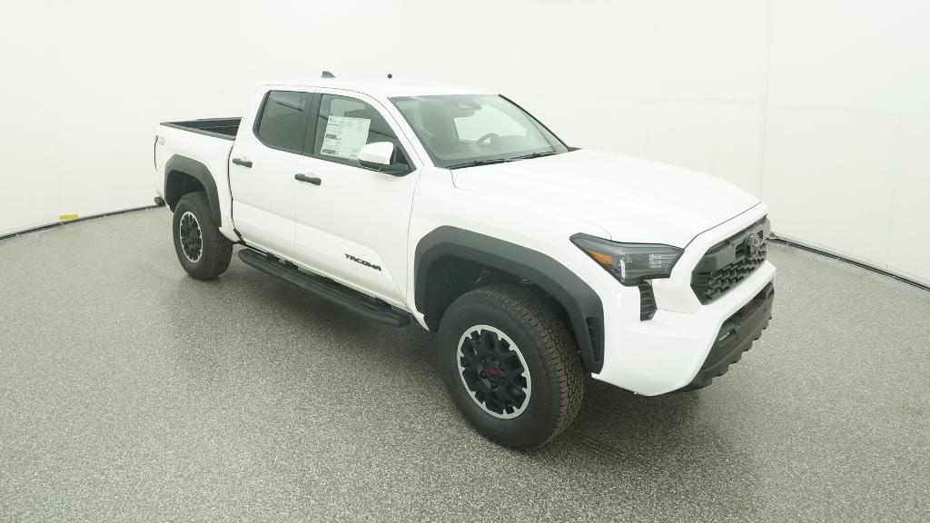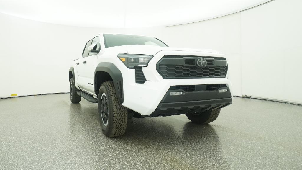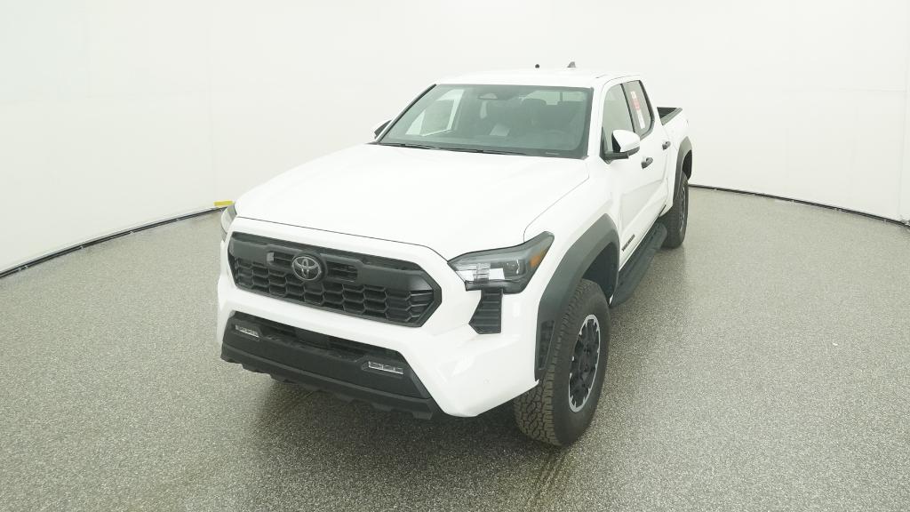 2025 Toyota Tacoma TRD Off-Road Ice Cap 4WD 8-Speed Automatic 2.4L 4-Cylinder3.583 Axle Ratio, 4-Wheel Disc Brakes, 6 Speakers, ABS brakes, Air Conditioning, Alloy wheels, AM/FM radio: SiriusXM, Anti-whiplash front head restraints, Apple CarPlay/Android Auto, Auto High-beam Headlights, Auto-dimming Rear-View mirror, Automatic temperature control, Brake assist, Bumpers: body-color, Driver door bin, Driver vanity mirror, Dual front impact airbags, Dual front side impact airbags, Electronic Stability Control, Emergency communication system: Safety Connect (1-year trial), Exterior Parking Camera Rear, Fabric Seat Trim, Four wheel independent suspension, Front anti-roll bar, Front Bucket Seats, Front Center Armrest, Front fog lights, Front reading lights, Fully automatic headlights, Heated door mirrors, Illuminated entry, JBL Premium Audio, Knee airbag, Leather Shift Knob, Leather steering wheel, Low tire pressure warning, Occupant sensing airbag, Outside temperature display, Overhead airbag, Overhead console, Panic alarm, Passenger door bin, Passenger vanity mirror, Power door mirrors, Power steering, Power windows, Radio: 8 Toyota Audio Multimedia, Rear step bumper, Rear window defroster, Remote keyless entry, Security system, SofTex Seat Trim, Speed control, Speed-sensing steering, Split folding rear seat, Steering wheel mounted audio controls, Tachometer, Telescoping steering wheel, Tilt steering wheel, Traction control, Trip computer, Turn signal indicator mirrors, Variably intermittent wipers, Wheels: 17 TRD Off-Road Alloy.
