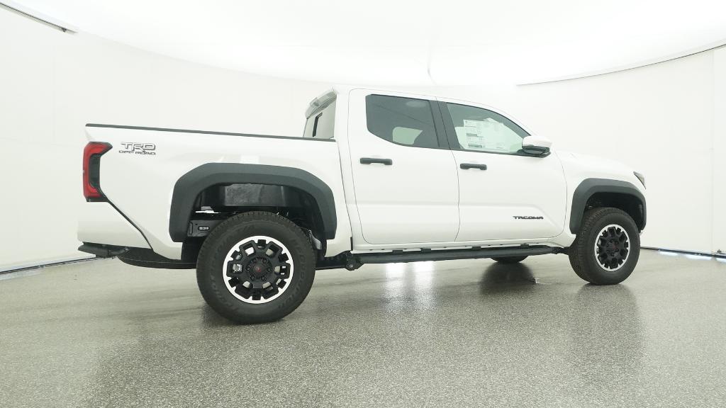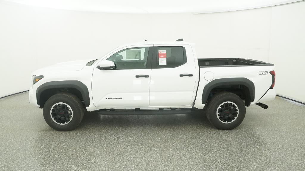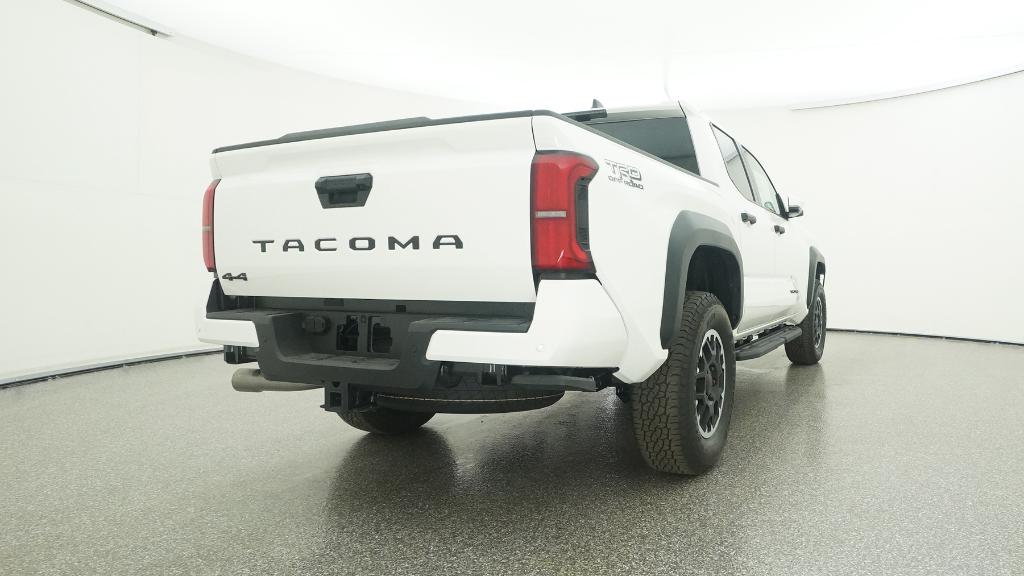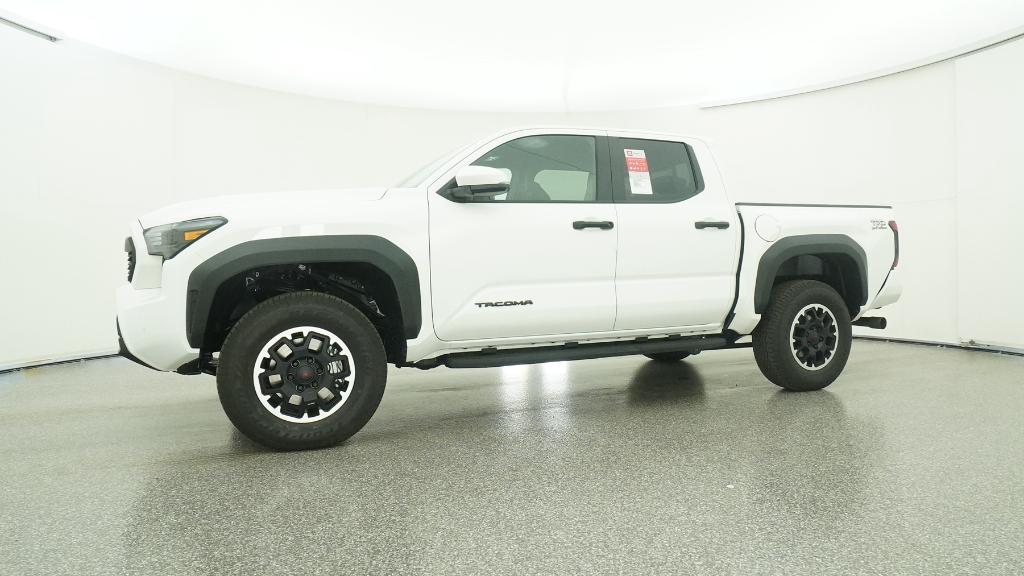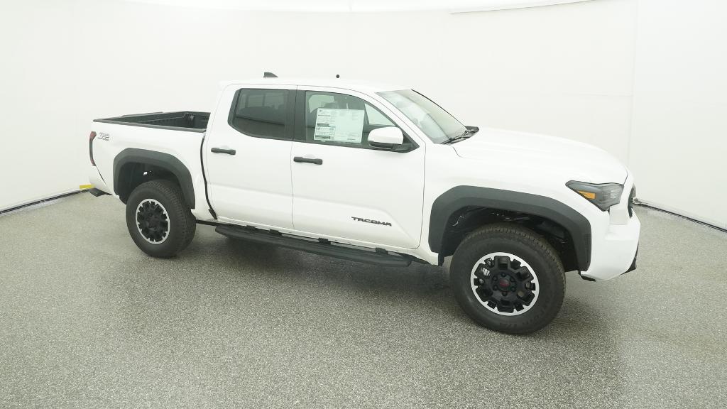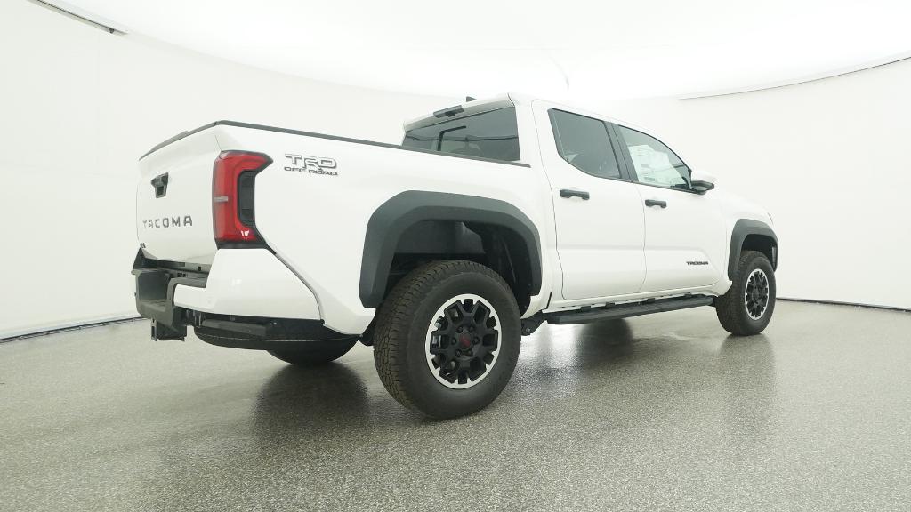 2025 Toyota Tacoma TRD Off-Road Ice Cap 4WD 8-Speed Automatic 2.4L 4-Cylinder3.583 Axle Ratio, 4-Wheel Disc Brakes, 6 Speakers, ABS brakes, Air Conditioning, Alloy wheels, AM/FM radio: SiriusXM, Anti-whiplash front head restraints, Apple CarPlay/Android Auto, Auto High-beam Headlights, Auto-dimming Rear-View mirror, Automatic temperature control, Brake assist, Bumpers: body-color, Driver door bin, Driver vanity mirror, Dual front impact airbags, Dual front side impact airbags, Electronic Stability Control, Emergency communication system: Safety Connect (1-year trial), Exterior Parking Camera Rear, Fabric Seat Trim, Four wheel independent suspension, Front anti-roll bar, Front Bucket Seats, Front Center Armrest, Front fog lights, Front reading lights, Fully automatic headlights, Heated door mirrors, Illuminated entry, JBL Premium Audio, Knee airbag, Leather Shift Knob, Leather steering wheel, Low tire pressure warning, Occupant sensing airbag, Outside temperature display, Overhead airbag, Overhead console, Panic alarm, Passenger door bin, Passenger vanity mirror, Power door mirrors, Power steering, Power windows, Radio: 8 Toyota Audio Multimedia, Rear step bumper, Rear window defroster, Remote keyless entry, Security system, SofTex Seat Trim, Speed control, Speed-sensing steering, Split folding rear seat, Steering wheel mounted audio controls, Tachometer, Telescoping steering wheel, Tilt steering wheel, Traction control, Trip computer, Turn signal indicator mirrors, Variably intermittent wipers, Wheels: 17 TRD Off-Road Alloy.