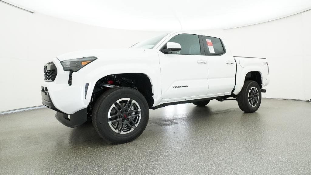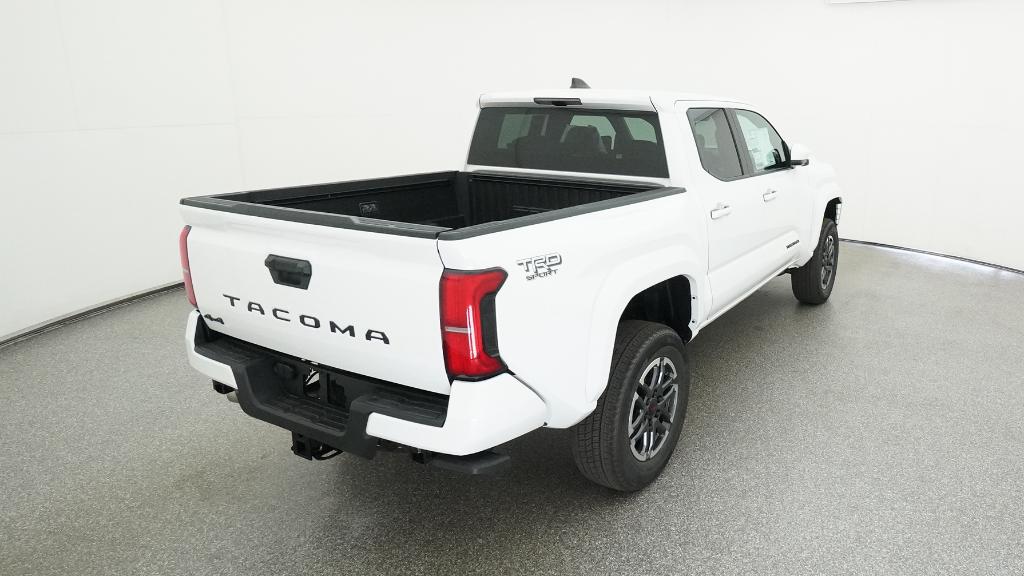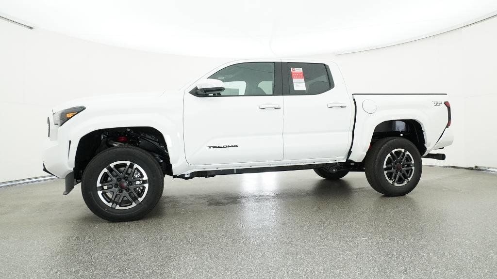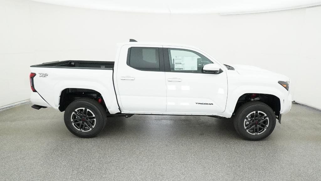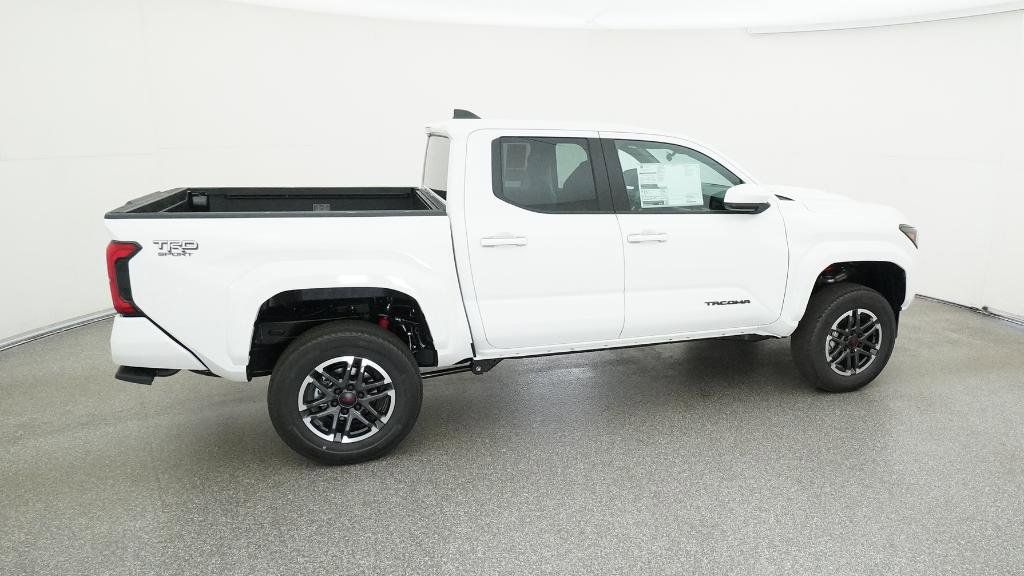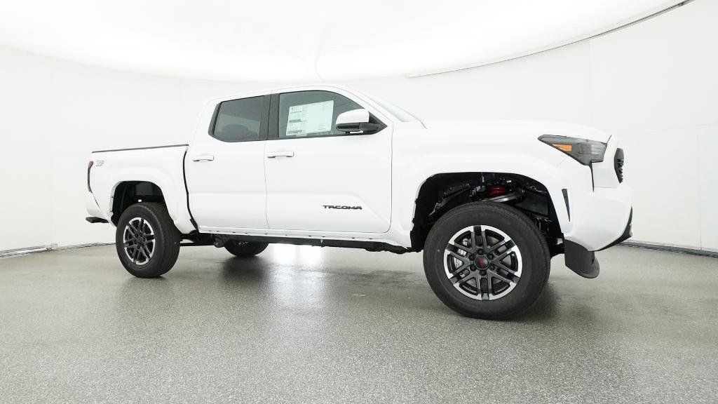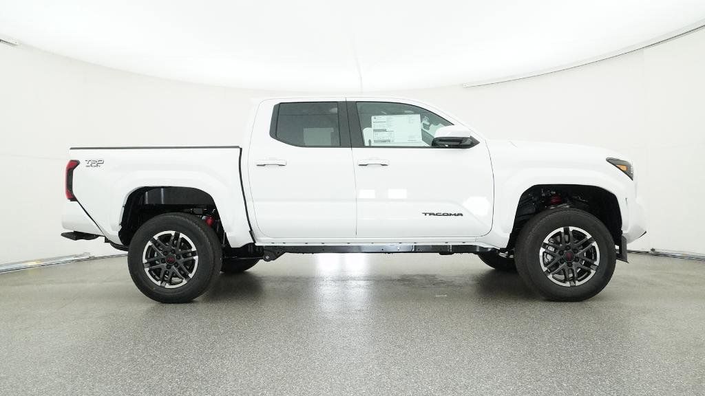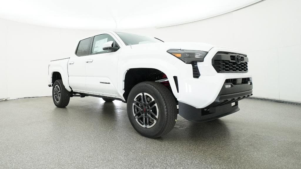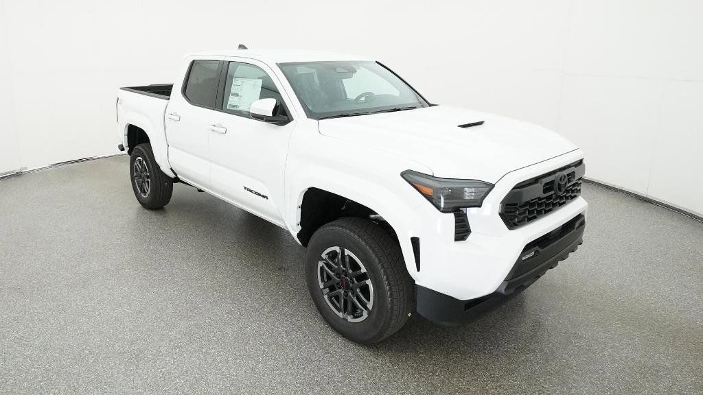2025 Toyota Tacoma TRD Sport Ice Cap 4WD 8-Speed Automatic 2.4L 4-Cylinder3.583 Axle Ratio, 4-Wheel Disc Brakes, 6 Speakers, ABS brakes, Air Conditioning, Alloy wheels, AM/FM radio: SiriusXM, Anti-whiplash front head restraints, Apple CarPlay/Android Auto, Auto High-beam Headlights, Auto-dimming Rear-View mirror, Automatic temperature control, Brake assist, Bumpers: body-color, Driver door bin, Driver vanity mirror, Dual front impact airbags, Dual front side impact airbags, Electronic Stability Control, Emergency communication system: Safety Connect (1-year trial), Exterior Parking Camera Rear, Fabric Seat Trim, Four wheel independent suspension, Front anti-roll bar, Front Bucket Seats, Front Center Armrest, Front fog lights, Front reading lights, Fully automatic headlights, Heated door mirrors, Illuminated entry, JBL Premium Audio, Knee airbag, Leather Shift Knob, Leather steering wheel, Low tire pressure warning, Occupant sensing airbag, Outside temperature display, Overhead airbag, Overhead console, Panic alarm, Passenger door bin, Passenger vanity mirror, Power door mirrors, Power steering, Power windows, Radio: 8 Toyota Audio Multimedia, Rear step bumper, Rear window defroster, Remote keyless entry, Security system, SofTex Seat Trim, Speed control, Speed-sensing steering, Split folding rear seat, Steering wheel mounted audio controls, Tachometer, Telescoping steering wheel, Tilt steering wheel, Traction control, Trip computer, Turn signal indicator mirrors, Variably intermittent wipers, Wheels: 18 TRD Sport Alloy.
