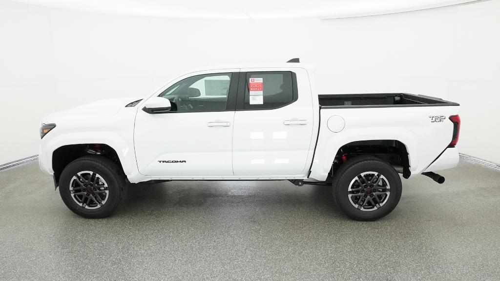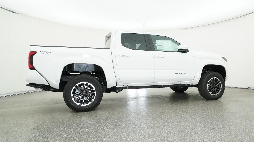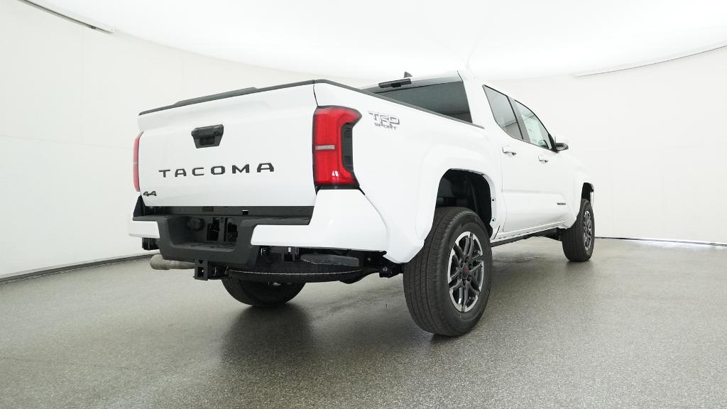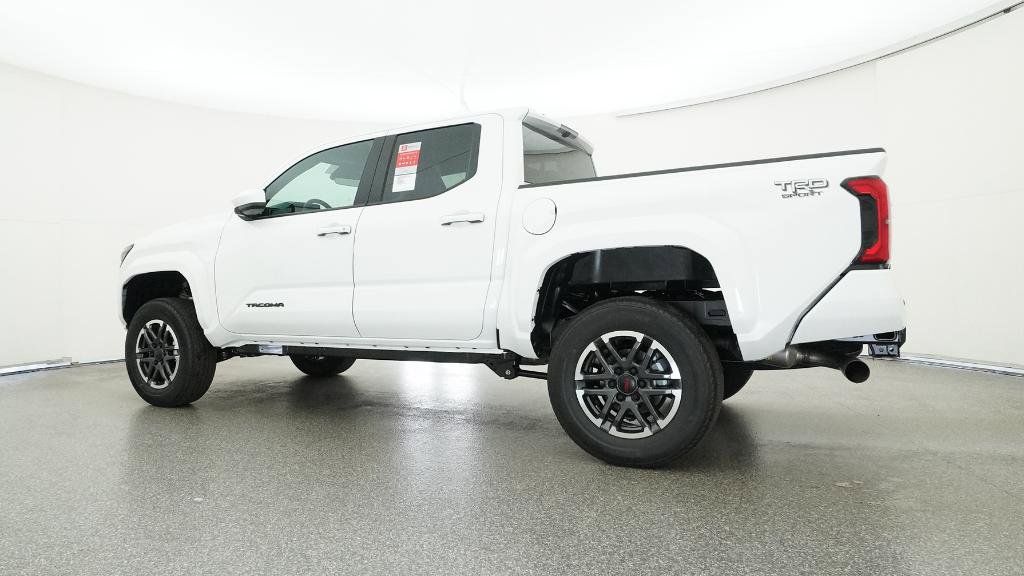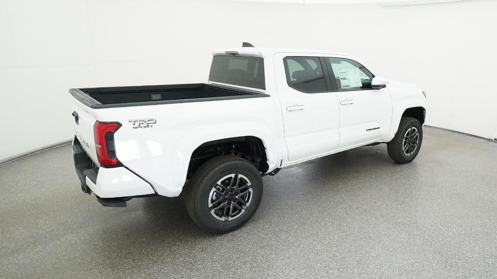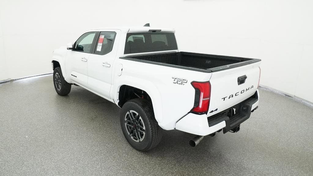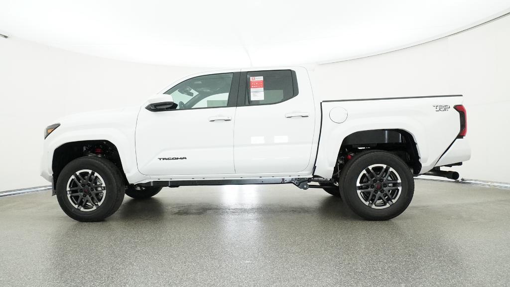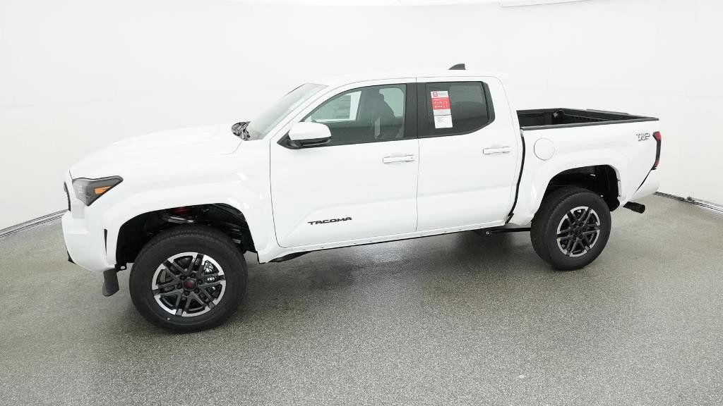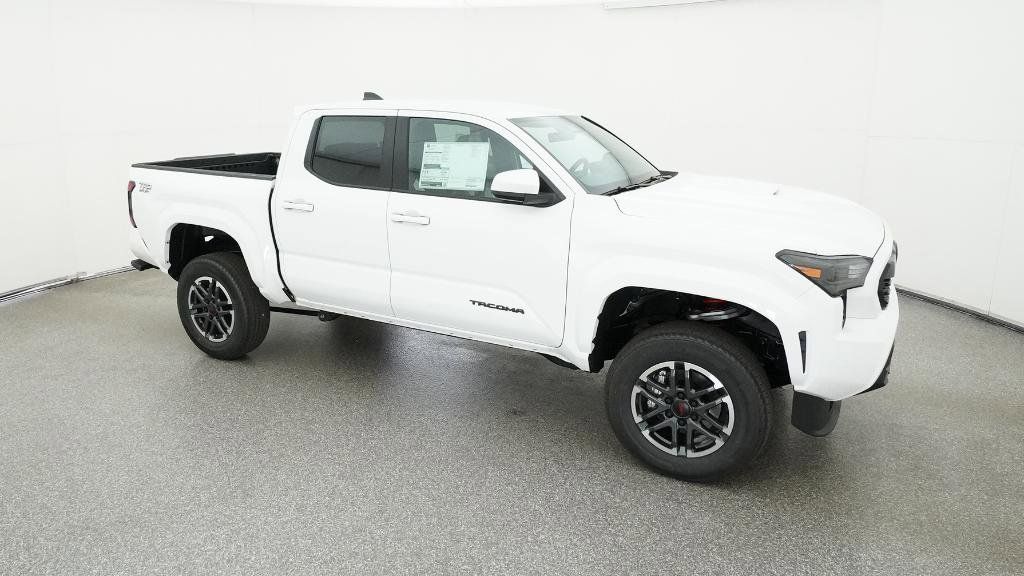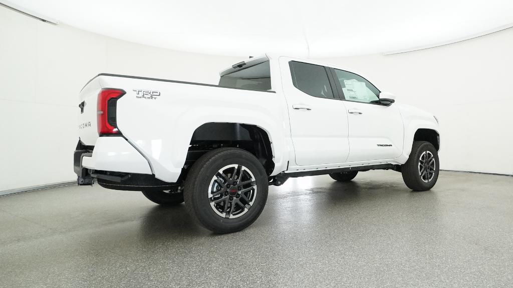 2025 Toyota Tacoma TRD Sport Ice Cap 4WD 8-Speed Automatic 2.4L 4-Cylinder3.583 Axle Ratio, 4-Wheel Disc Brakes, 6 Speakers, ABS brakes, Air Conditioning, Alloy wheels, AM/FM radio: SiriusXM, Anti-whiplash front head restraints, Apple CarPlay/Android Auto, Auto High-beam Headlights, Auto-dimming Rear-View mirror, Automatic temperature control, Brake assist, Bumpers: body-color, Driver door bin, Driver vanity mirror, Dual front impact airbags, Dual front side impact airbags, Electronic Stability Control, Emergency communication system: Safety Connect (1-year trial), Exterior Parking Camera Rear, Fabric Seat Trim, Four wheel independent suspension, Front anti-roll bar, Front Bucket Seats, Front Center Armrest, Front fog lights, Front reading lights, Fully automatic headlights, Heated door mirrors, Illuminated entry, JBL Premium Audio, Knee airbag, Leather Shift Knob, Leather steering wheel, Low tire pressure warning, Occupant sensing airbag, Outside temperature display, Overhead airbag, Overhead console, Panic alarm, Passenger door bin, Passenger vanity mirror, Power door mirrors, Power steering, Power windows, Radio: 8 Toyota Audio Multimedia, Rear step bumper, Rear window defroster, Remote keyless entry, Security system, SofTex Seat Trim, Speed control, Speed-sensing steering, Split folding rear seat, Steering wheel mounted audio controls, Tachometer, Telescoping steering wheel, Tilt steering wheel, Traction control, Trip computer, Turn signal indicator mirrors, Variably intermittent wipers, Wheels: 18 TRD Sport Alloy.