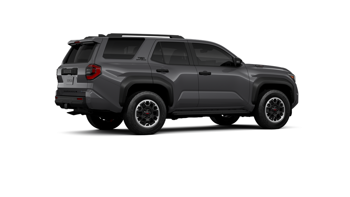 - Black honeycomb-style grille, mirror caps, door handles and overfenders; color-keyed rear spoiler; black "TRD OFF ROAD" and "4RUNNER" badges