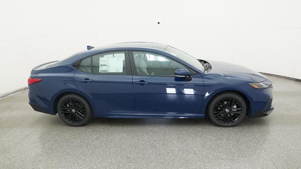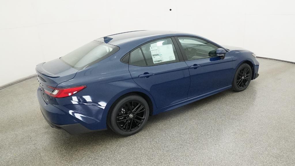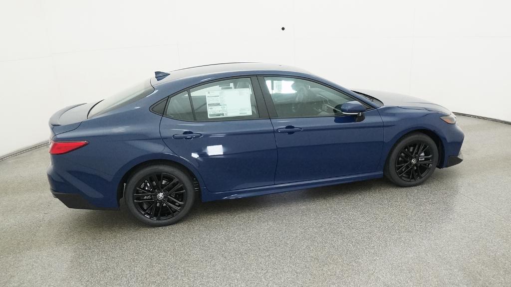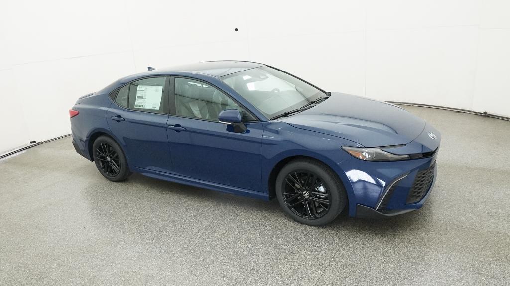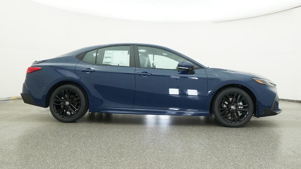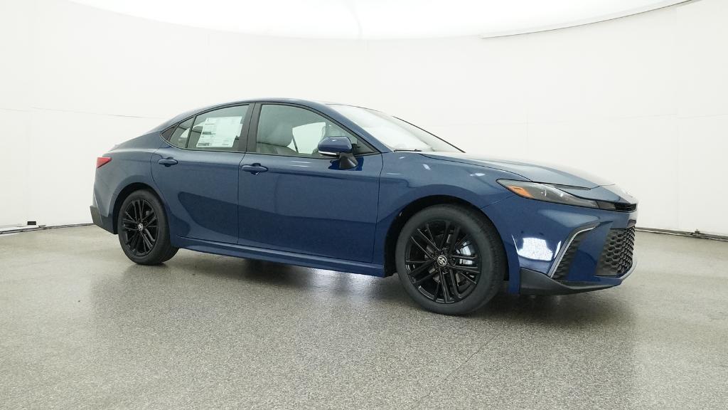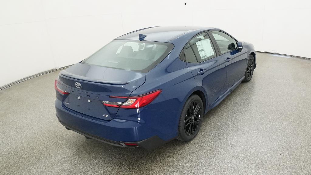 2026 Toyota Camry SE Blue FWD eCVT 2.5L 4-Cylinder 16V DOHC4-Wheel Disc Brakes, 6 Speakers, ABS brakes, Air Conditioning, Alloy wheels, AM/FM radio: SiriusXM, Apple CarPlay/Android Auto, Auto High-beam Headlights, Automatic temperature control, Brake assist, Bumpers: body-color, Delay-off headlights, Driver door bin, Driver vanity mirror, Dual front impact airbags, Dual front side impact airbags, Electronic Stability Control, Emergency communication system: Safety Connect (5-year trial), Exterior Parking Camera Rear, Four wheel independent suspension, Front anti-roll bar, Front Bucket Seats, Front Center Armrest, Front dual zone A/C, Front reading lights, Front Seats, Fully automatic headlights, Heated door mirrors, Heated Front Seats, Illuminated entry, Knee airbag, Leather Shift Knob, Leather steering wheel, Low tire pressure warning, Occupant sensing airbag, Outside temperature display, Overhead airbag, Overhead console, Panic alarm, Passenger door bin, Passenger vanity mirror, Power door mirrors, Power driver seat, Power steering, Power windows, Radio data system, Radio: 12.3 Toyota Multimedia Audio, Radio: 8 Toyota Audio Multimedia, Rear anti-roll bar, Rear reading lights, Rear seat center armrest, Rear window defroster, Remote keyless entry, Security system, SofTex and Fabric Seat Trim, Speed control, Speed-sensing steering, Split folding rear seat, Spoiler, Steering wheel mounted audio controls, Telescoping steering wheel, Tilt steering wheel, Traction control, Trip computer, Turn signal indicator mirrors, Variably intermittent wipers, Wheels: 18 Multi-Spoke Black-Finished Alloy.