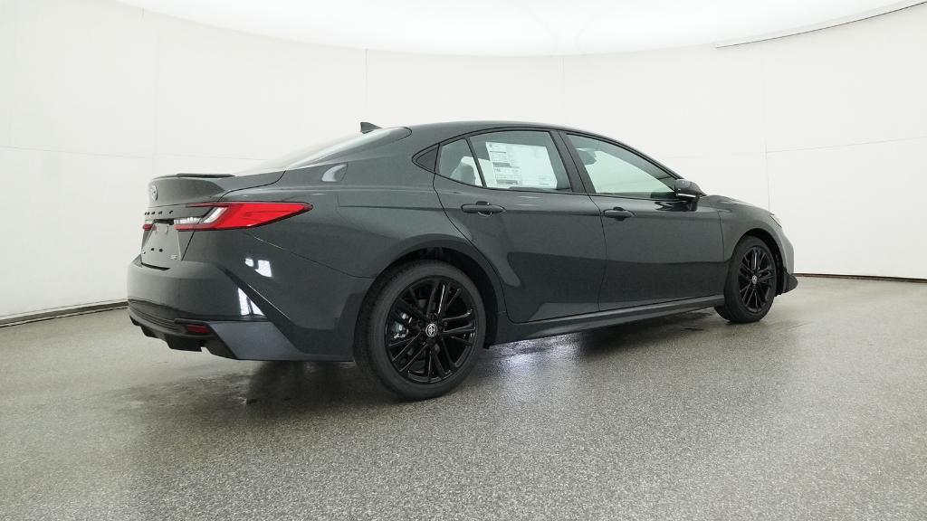 2026 Toyota Camry SE Underground FWD eCVT 2.5L 4-Cylinder 16V DOHC4-Wheel Disc Brakes, 6 Speakers, ABS brakes, Air Conditioning, Alloy wheels, AM/FM radio: SiriusXM, Apple CarPlay/Android Auto, Auto High-beam Headlights, Automatic temperature control, Brake assist, Bumpers: body-color, Delay-off headlights, Driver door bin, Driver vanity mirror, Dual front impact airbags, Dual front side impact airbags, Electronic Stability Control, Emergency communication system: Safety Connect (5-year trial), Exterior Parking Camera Rear, Four wheel independent suspension, Front anti-roll bar, Front Bucket Seats, Front Center Armrest, Front dual zone A/C, Front reading lights, Front Seats, Fully automatic headlights, Heated door mirrors, Heated Front Seats, Illuminated entry, Knee airbag, Leather Shift Knob, Leather steering wheel, Low tire pressure warning, Occupant sensing airbag, Outside temperature display, Overhead airbag, Overhead console, Panic alarm, Passenger door bin, Passenger vanity mirror, Power door mirrors, Power driver seat, Power steering, Power windows, Radio data system, Radio: 12.3 Toyota Multimedia Audio, Radio: 8 Toyota Audio Multimedia, Rear anti-roll bar, Rear reading lights, Rear seat center armrest, Rear window defroster, Remote keyless entry, Security system, SofTex and Fabric Seat Trim, Speed control, Speed-sensing steering, Split folding rear seat, Spoiler, Steering wheel mounted audio controls, Telescoping steering wheel, Tilt steering wheel, Traction control, Trip computer, Turn signal indicator mirrors, Variably intermittent wipers, Wheels: 18 Multi-Spoke Black-Finished Alloy.
