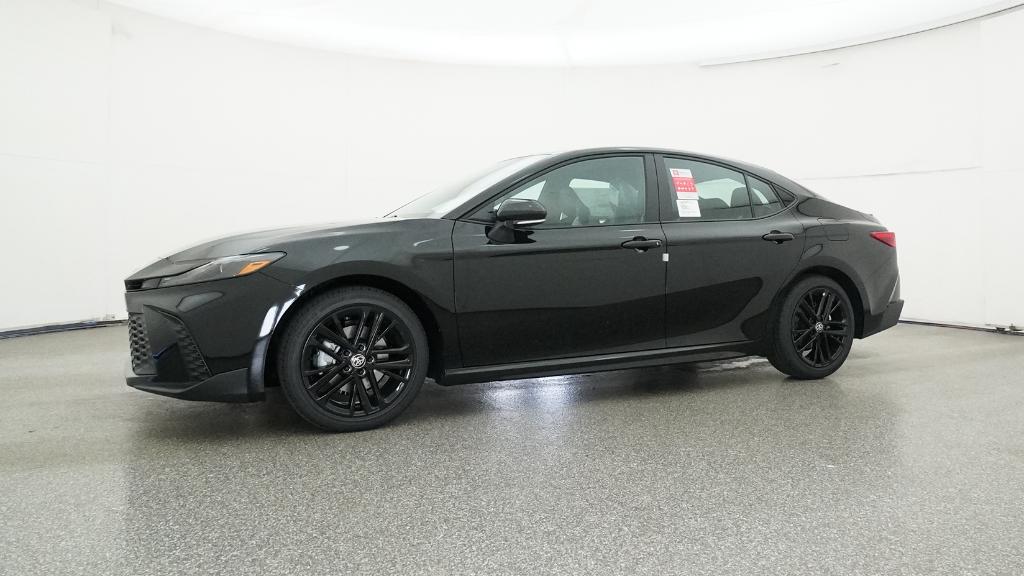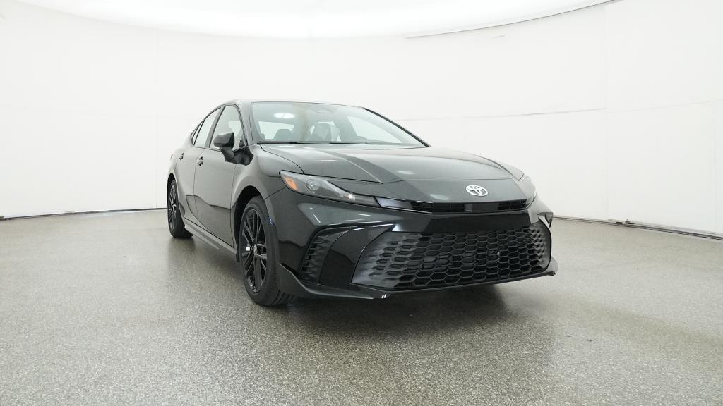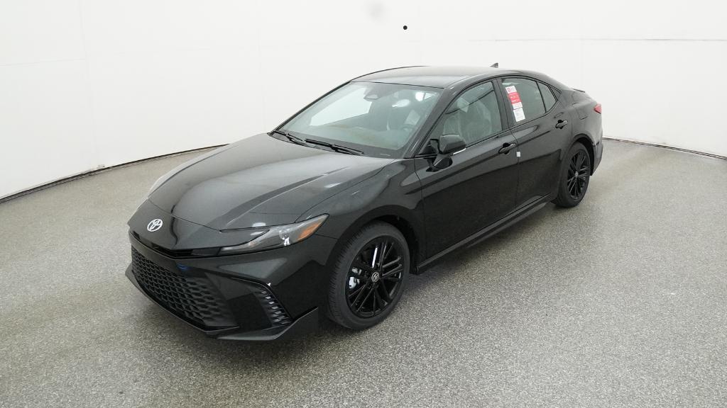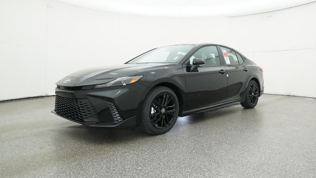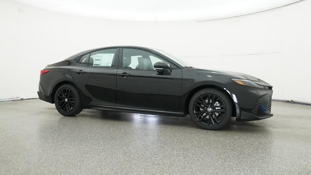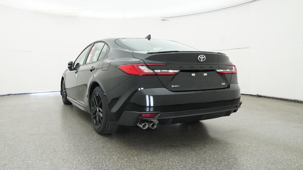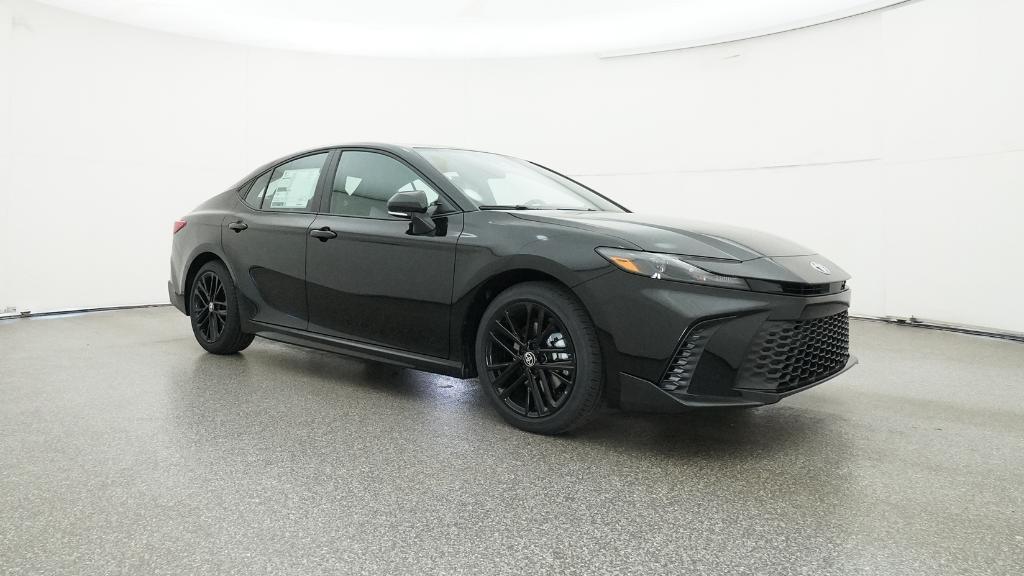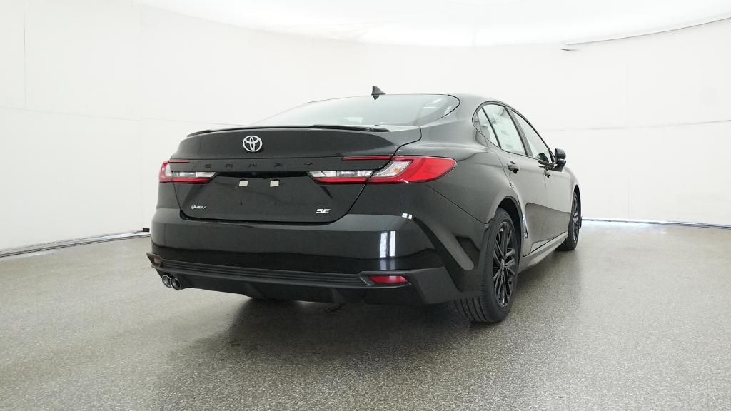 2026 Toyota Camry SE Midnight Black Metallic FWD eCVT 2.5L 4-Cylinder 16V DOHC4-Wheel Disc Brakes, 6 Speakers, ABS brakes, Air Conditioning, Alloy wheels, AM/FM radio: SiriusXM, Apple CarPlay/Android Auto, Auto High-beam Headlights, Automatic temperature control, Brake assist, Bumpers: body-color, Delay-off headlights, Driver door bin, Driver vanity mirror, Dual front impact airbags, Dual front side impact airbags, Electronic Stability Control, Emergency communication system: Safety Connect (5-year trial), Exterior Parking Camera Rear, Four wheel independent suspension, Front anti-roll bar, Front Bucket Seats, Front Center Armrest, Front dual zone A/C, Front reading lights, Front Seats, Fully automatic headlights, Heated door mirrors, Heated Front Seats, Illuminated entry, Knee airbag, Leather Shift Knob, Leather steering wheel, Low tire pressure warning, Occupant sensing airbag, Outside temperature display, Overhead airbag, Overhead console, Panic alarm, Passenger door bin, Passenger vanity mirror, Power door mirrors, Power driver seat, Power steering, Power windows, Radio data system, Radio: 12.3 Toyota Multimedia Audio, Radio: 8 Toyota Audio Multimedia, Rear anti-roll bar, Rear reading lights, Rear seat center armrest, Rear window defroster, Remote keyless entry, Security system, SofTex and Fabric Seat Trim, Speed control, Speed-sensing steering, Split folding rear seat, Spoiler, Steering wheel mounted audio controls, Telescoping steering wheel, Tilt steering wheel, Traction control, Trip computer, Turn signal indicator mirrors, Variably intermittent wipers, Wheels: 18 Multi-Spoke Black-Finished Alloy.
