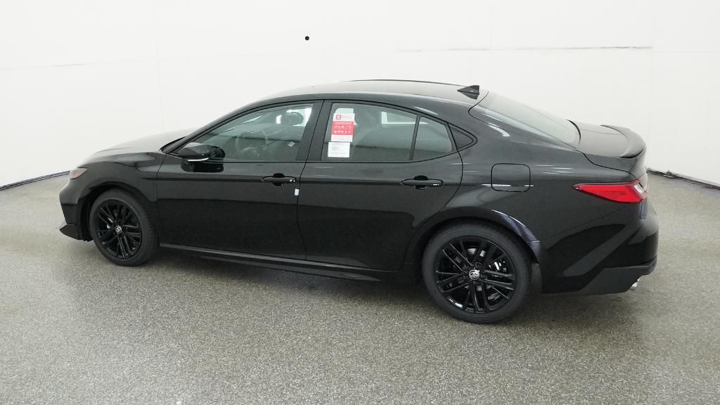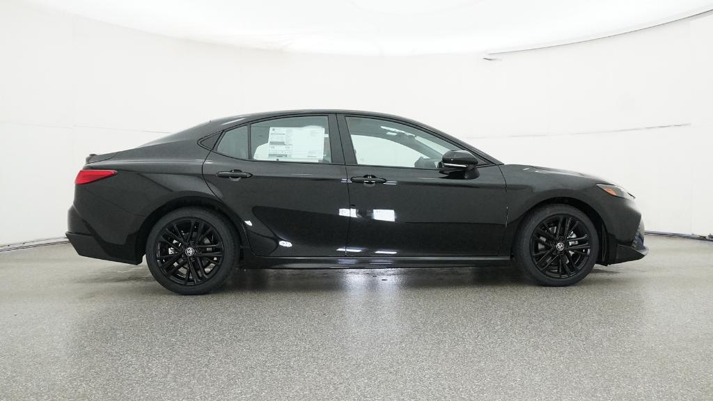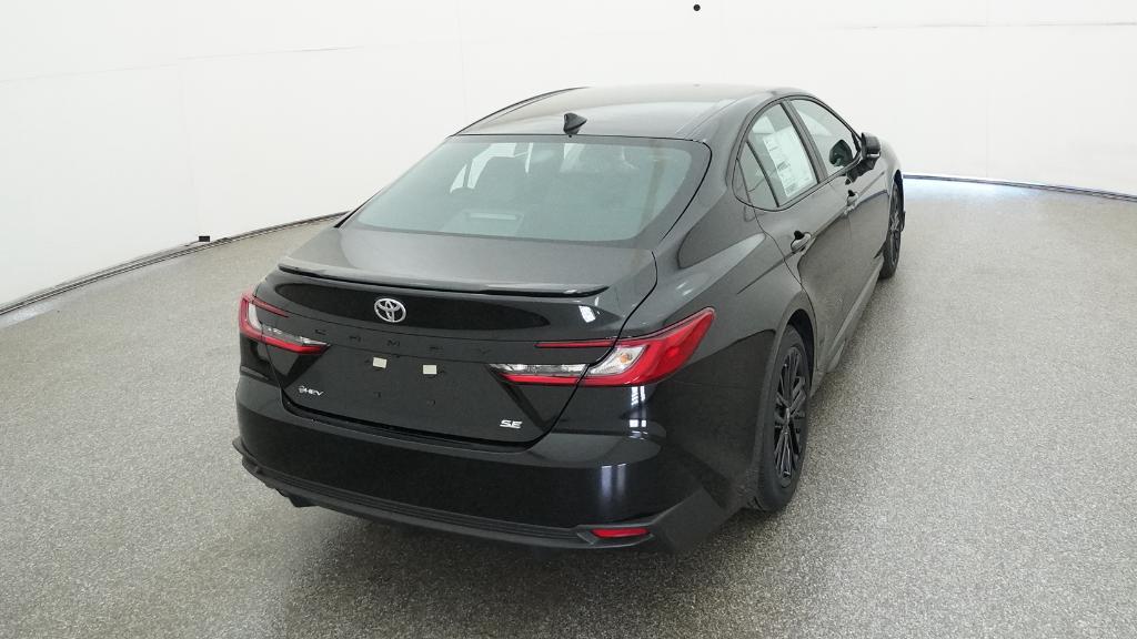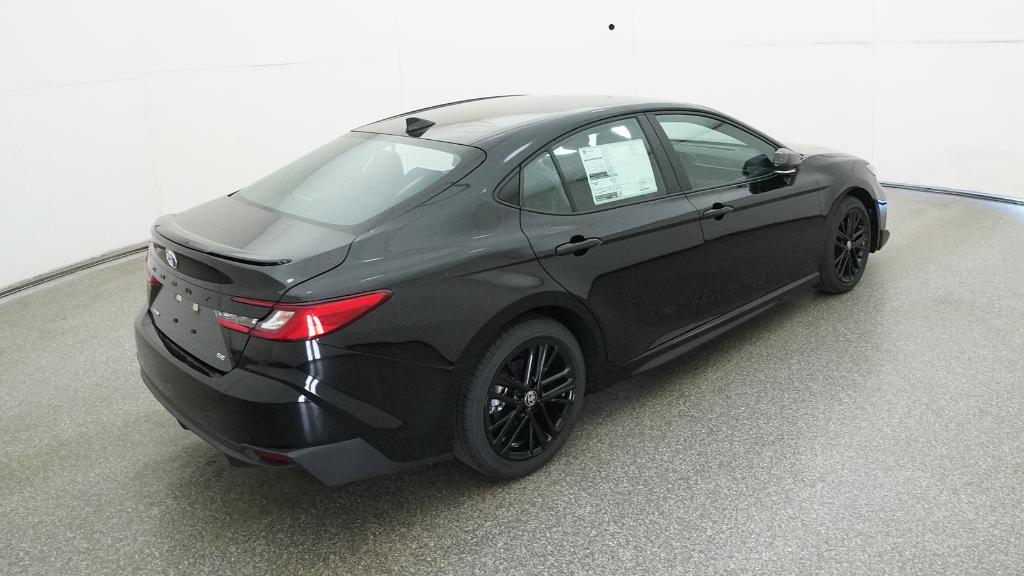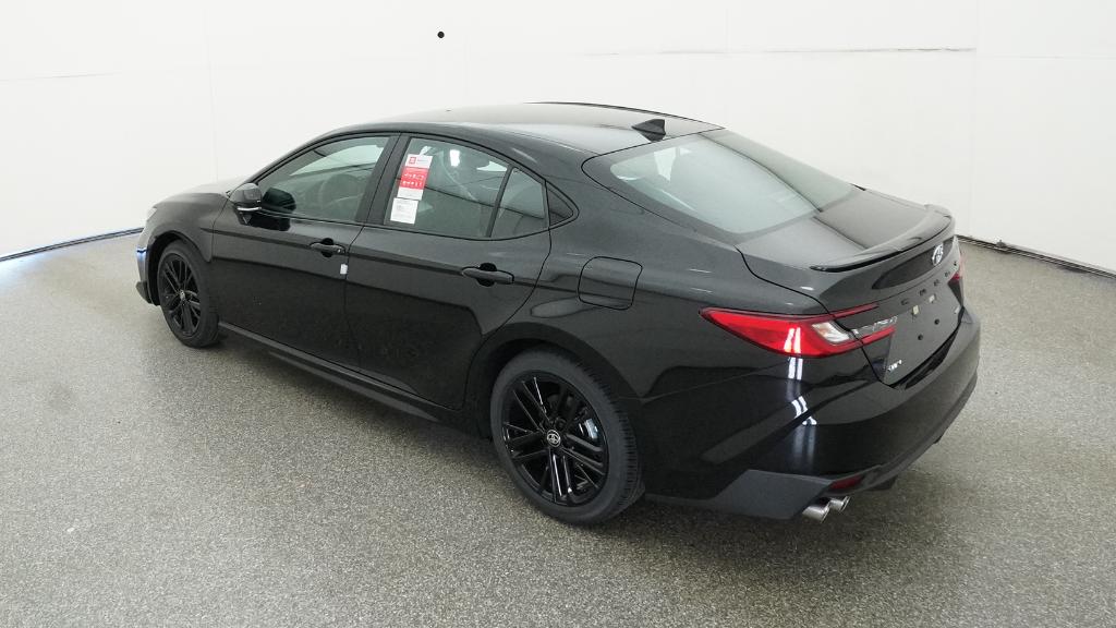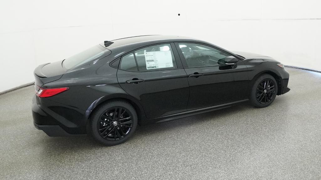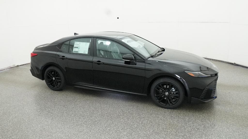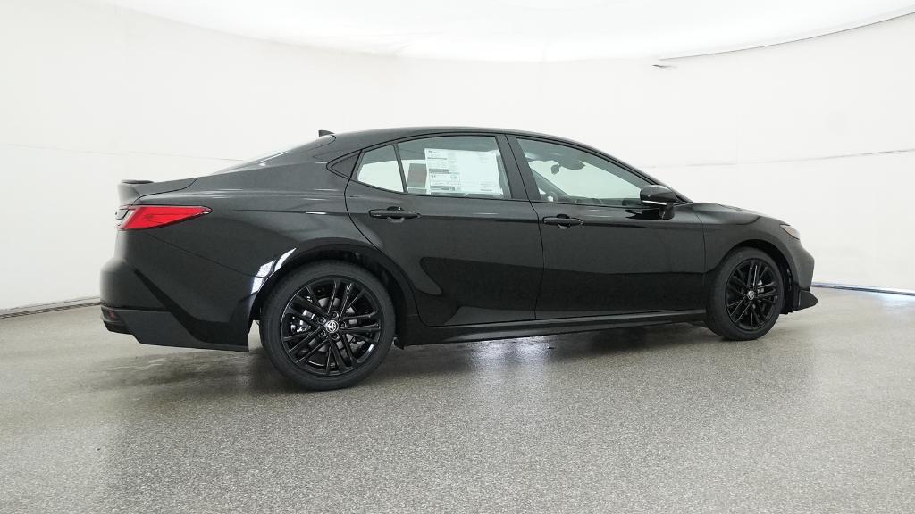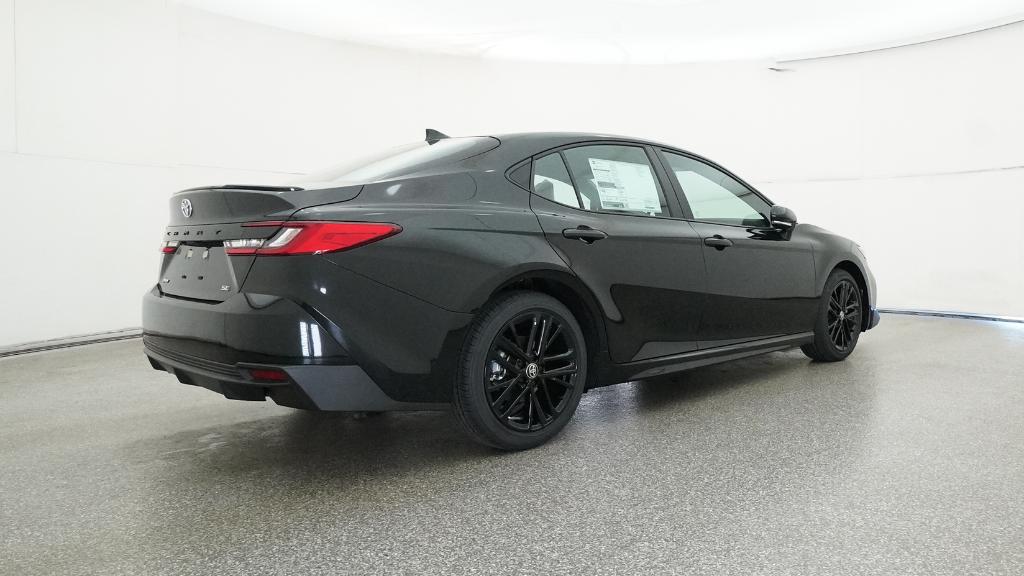2026 Toyota Camry SE Midnight Black Metallic FWD eCVT 2.5L 4-Cylinder 16V DOHC4-Wheel Disc Brakes, 6 Speakers, ABS brakes, Air Conditioning, Alloy wheels, AM/FM radio: SiriusXM, Apple CarPlay/Android Auto, Auto High-beam Headlights, Automatic temperature control, Brake assist, Bumpers: body-color, Delay-off headlights, Driver door bin, Driver vanity mirror, Dual front impact airbags, Dual front side impact airbags, Electronic Stability Control, Emergency communication system: Safety Connect (5-year trial), Exterior Parking Camera Rear, Four wheel independent suspension, Front anti-roll bar, Front Bucket Seats, Front Center Armrest, Front dual zone A/C, Front reading lights, Front Seats, Fully automatic headlights, Heated door mirrors, Heated Front Seats, Illuminated entry, Knee airbag, Leather Shift Knob, Leather steering wheel, Low tire pressure warning, Occupant sensing airbag, Outside temperature display, Overhead airbag, Overhead console, Panic alarm, Passenger door bin, Passenger vanity mirror, Power door mirrors, Power driver seat, Power steering, Power windows, Radio data system, Radio: 12.3 Toyota Multimedia Audio, Radio: 8 Toyota Audio Multimedia, Rear anti-roll bar, Rear reading lights, Rear seat center armrest, Rear window defroster, Remote keyless entry, Security system, SofTex and Fabric Seat Trim, Speed control, Speed-sensing steering, Split folding rear seat, Spoiler, Steering wheel mounted audio controls, Telescoping steering wheel, Tilt steering wheel, Traction control, Trip computer, Turn signal indicator mirrors, Variably intermittent wipers, Wheels: 18 Multi-Spoke Black-Finished Alloy.