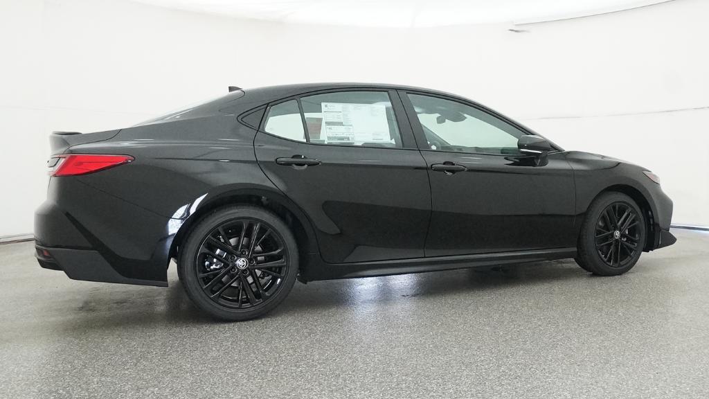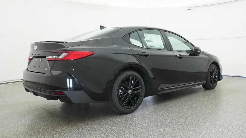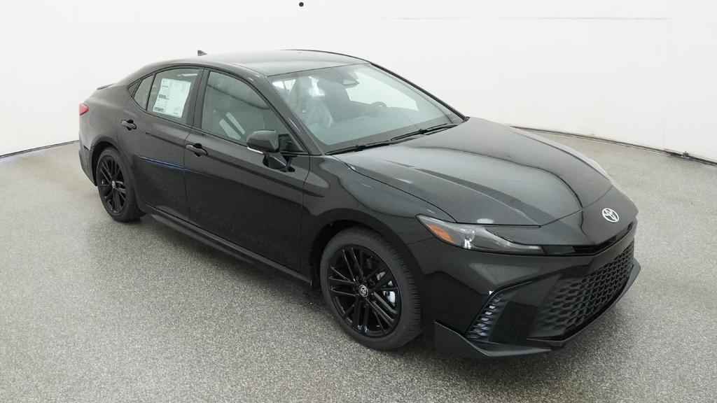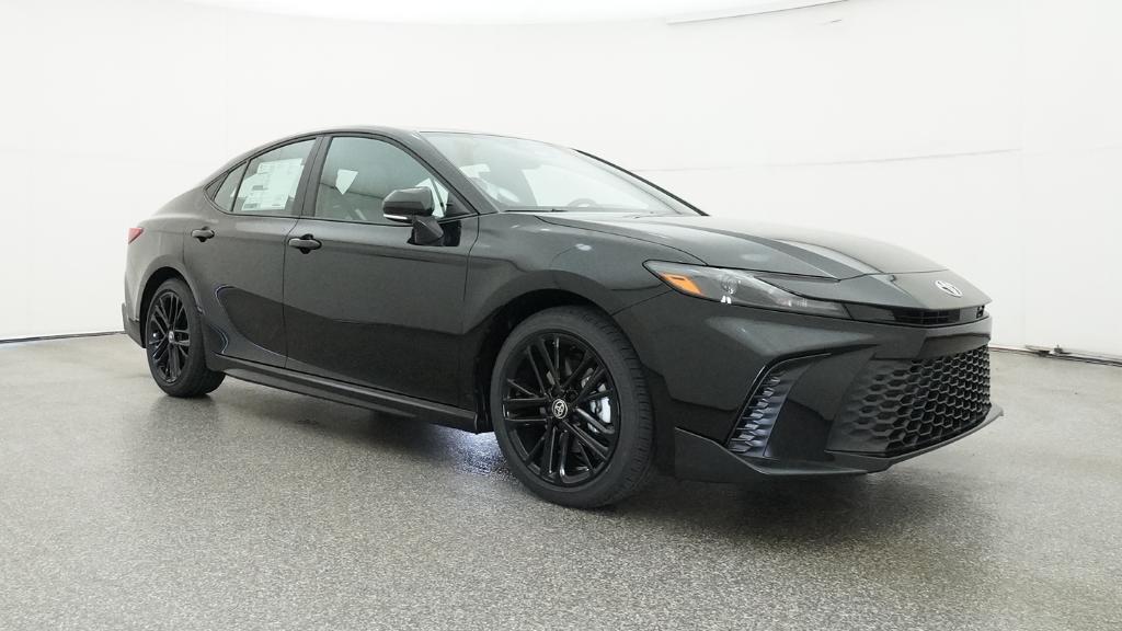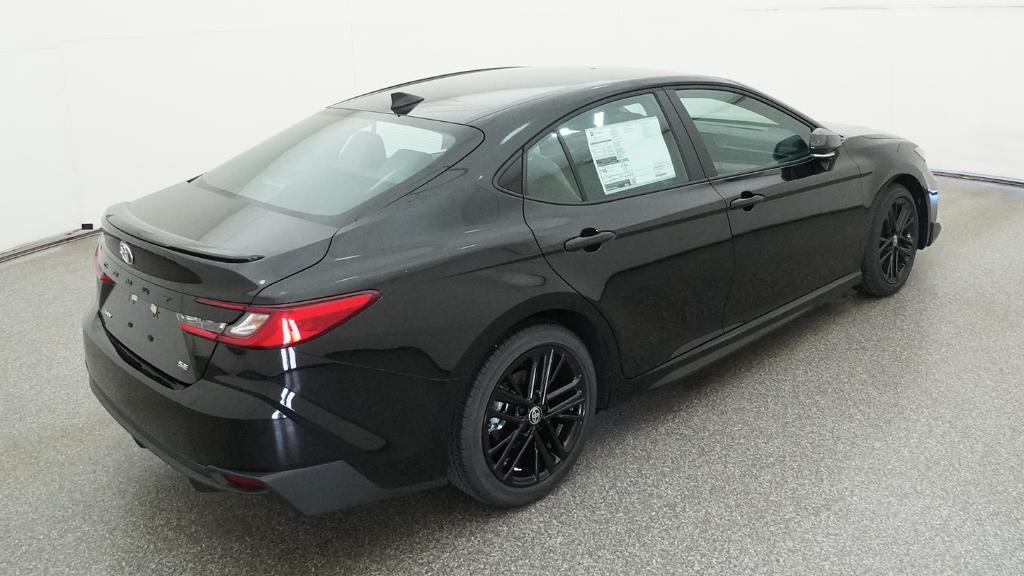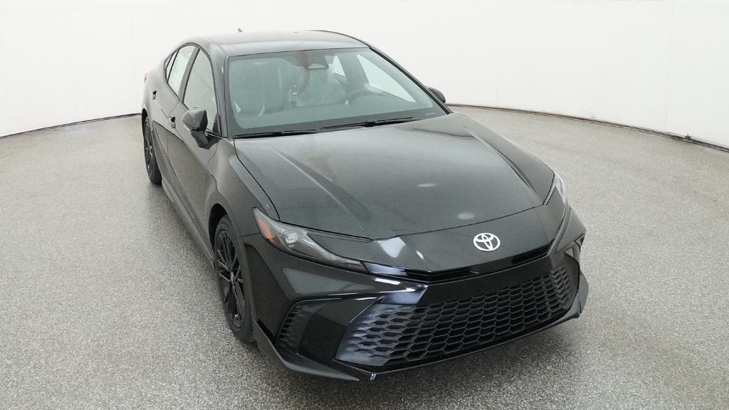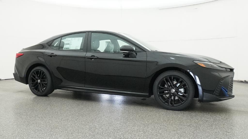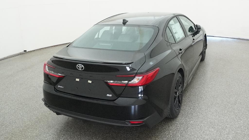 2026 Toyota Camry SE Midnight Black Metallic FWD eCVT 2.5L 4-Cylinder 16V DOHC4-Wheel Disc Brakes, 6 Speakers, ABS brakes, Air Conditioning, Alloy wheels, AM/FM radio: SiriusXM, Apple CarPlay/Android Auto, Auto High-beam Headlights, Automatic temperature control, Brake assist, Bumpers: body-color, Delay-off headlights, Driver door bin, Driver vanity mirror, Dual front impact airbags, Dual front side impact airbags, Electronic Stability Control, Emergency communication system: Safety Connect (5-year trial), Exterior Parking Camera Rear, Four wheel independent suspension, Front anti-roll bar, Front Bucket Seats, Front Center Armrest, Front dual zone A/C, Front reading lights, Front Seats, Fully automatic headlights, Heated door mirrors, Heated Front Seats, Illuminated entry, Knee airbag, Leather Shift Knob, Leather steering wheel, Low tire pressure warning, Occupant sensing airbag, Outside temperature display, Overhead airbag, Overhead console, Panic alarm, Passenger door bin, Passenger vanity mirror, Power door mirrors, Power driver seat, Power steering, Power windows, Radio data system, Radio: 12.3 Toyota Multimedia Audio, Radio: 8 Toyota Audio Multimedia, Rear anti-roll bar, Rear reading lights, Rear seat center armrest, Rear window defroster, Remote keyless entry, Security system, SofTex and Fabric Seat Trim, Speed control, Speed-sensing steering, Split folding rear seat, Spoiler, Steering wheel mounted audio controls, Telescoping steering wheel, Tilt steering wheel, Traction control, Trip computer, Turn signal indicator mirrors, Variably intermittent wipers, Wheels: 18 Multi-Spoke Black-Finished Alloy.