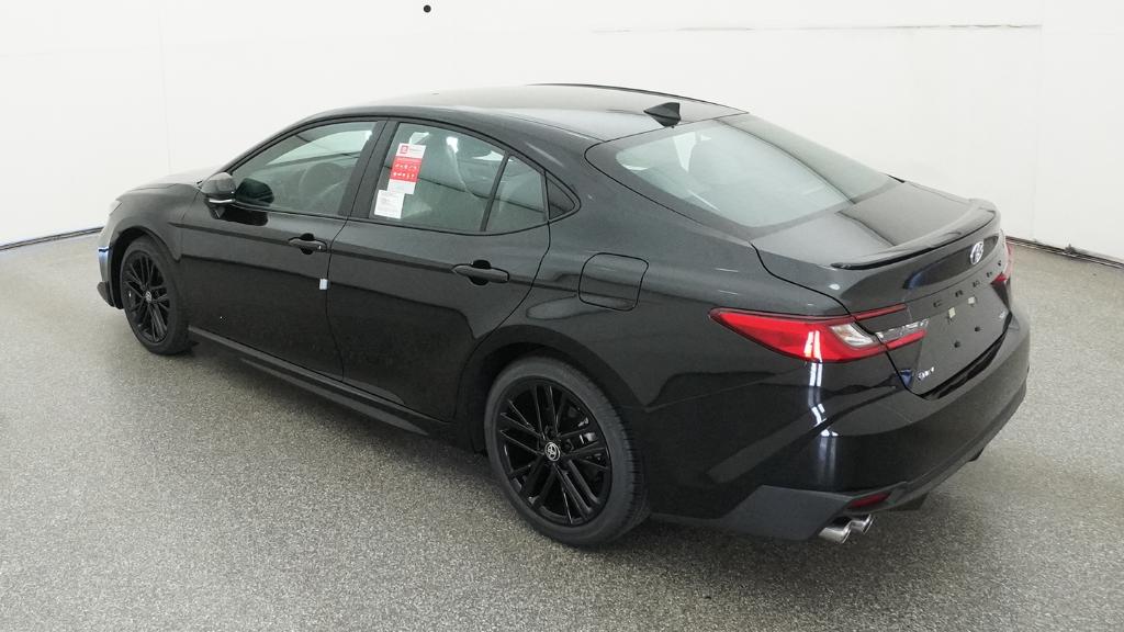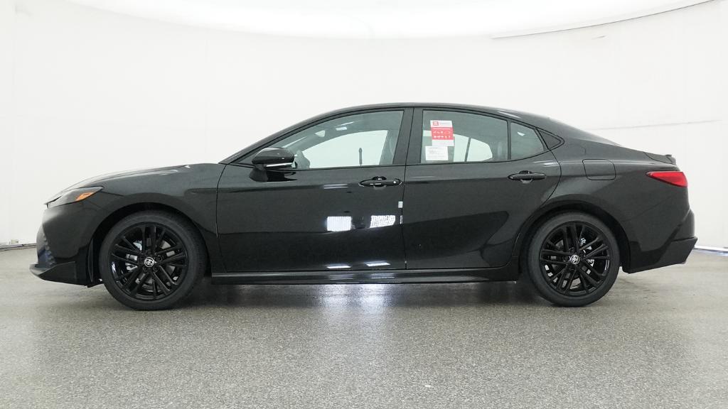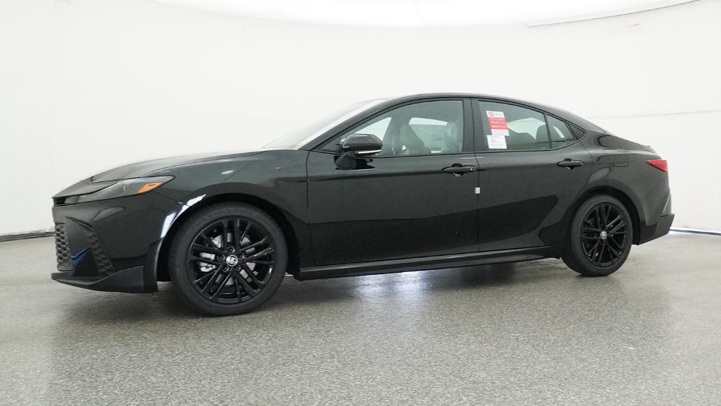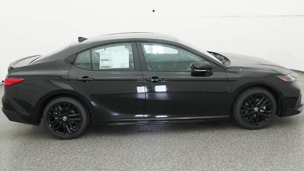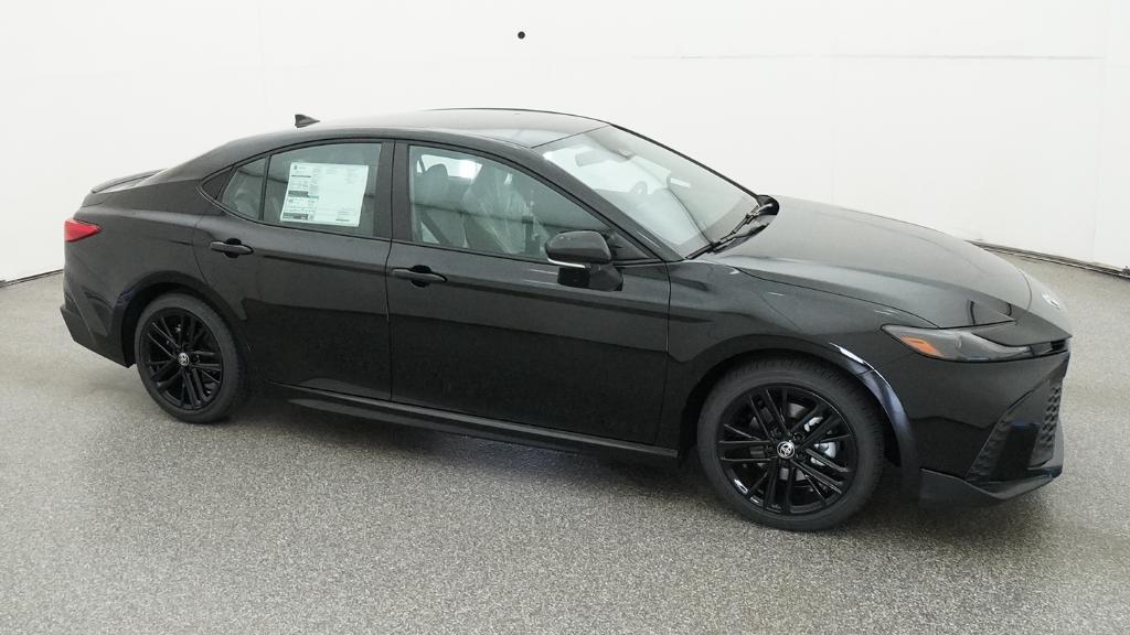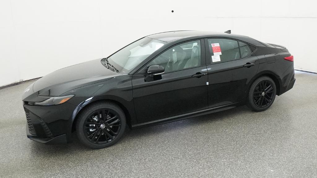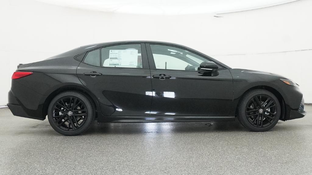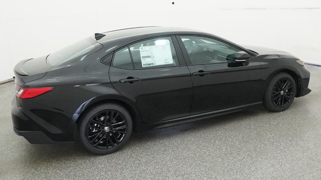 2026 Toyota Camry SE Midnight Black Metallic FWD eCVT 2.5L 4-Cylinder 16V DOHC4-Wheel Disc Brakes, 6 Speakers, ABS brakes, Air Conditioning, Alloy wheels, AM/FM radio: SiriusXM, Apple CarPlay/Android Auto, Auto High-beam Headlights, Automatic temperature control, Brake assist, Bumpers: body-color, Delay-off headlights, Driver door bin, Driver vanity mirror, Dual front impact airbags, Dual front side impact airbags, Electronic Stability Control, Emergency communication system: Safety Connect (5-year trial), Exterior Parking Camera Rear, Four wheel independent suspension, Front anti-roll bar, Front Bucket Seats, Front Center Armrest, Front dual zone A/C, Front reading lights, Front Seats, Fully automatic headlights, Heated door mirrors, Heated Front Seats, Illuminated entry, Knee airbag, Leather Shift Knob, Leather steering wheel, Low tire pressure warning, Occupant sensing airbag, Outside temperature display, Overhead airbag, Overhead console, Panic alarm, Passenger door bin, Passenger vanity mirror, Power door mirrors, Power driver seat, Power steering, Power windows, Radio data system, Radio: 12.3 Toyota Multimedia Audio, Radio: 8 Toyota Audio Multimedia, Rear anti-roll bar, Rear reading lights, Rear seat center armrest, Rear window defroster, Remote keyless entry, Security system, SofTex and Fabric Seat Trim, Speed control, Speed-sensing steering, Split folding rear seat, Spoiler, Steering wheel mounted audio controls, Telescoping steering wheel, Tilt steering wheel, Traction control, Trip computer, Turn signal indicator mirrors, Variably intermittent wipers, Wheels: 18 Multi-Spoke Black-Finished Alloy.