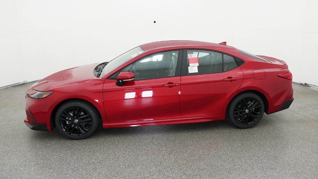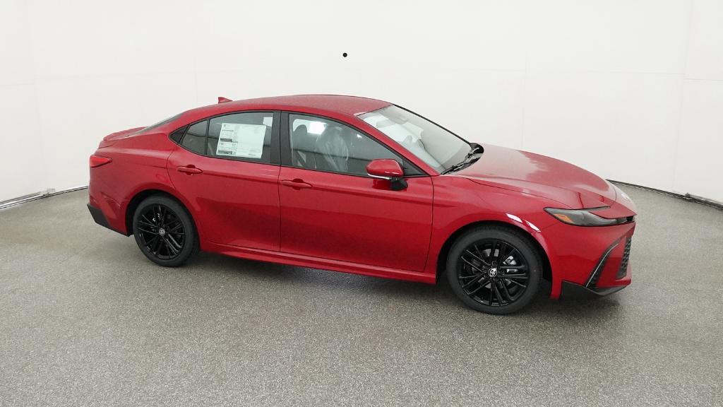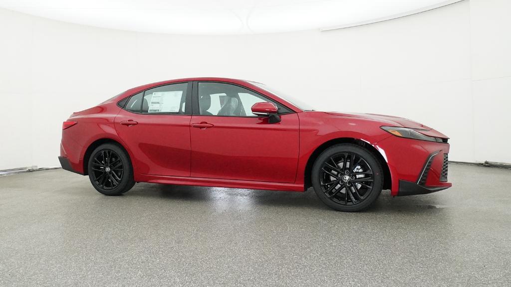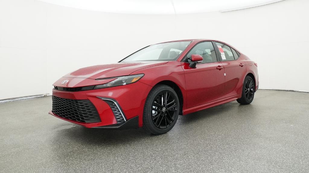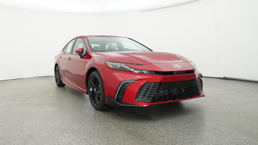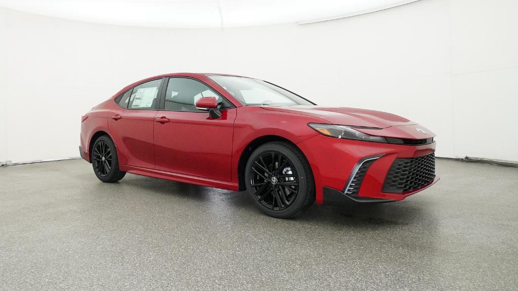 2026 Toyota Camry SE Supersonic Red FWD eCVT 2.5L 4-Cylinder 16V DOHC4-Wheel Disc Brakes, 6 Speakers, ABS brakes, Air Conditioning, Alloy wheels, AM/FM radio: SiriusXM, Apple CarPlay/Android Auto, Auto High-beam Headlights, Automatic temperature control, Brake assist, Bumpers: body-color, Delay-off headlights, Driver door bin, Driver vanity mirror, Dual front impact airbags, Dual front side impact airbags, Electronic Stability Control, Emergency communication system: Safety Connect (5-year trial), Exterior Parking Camera Rear, Four wheel independent suspension, Front anti-roll bar, Front Bucket Seats, Front Center Armrest, Front dual zone A/C, Front reading lights, Front Seats, Fully automatic headlights, Heated door mirrors, Heated Front Seats, Illuminated entry, Knee airbag, Leather Shift Knob, Leather steering wheel, Low tire pressure warning, Occupant sensing airbag, Outside temperature display, Overhead airbag, Overhead console, Panic alarm, Passenger door bin, Passenger vanity mirror, Power door mirrors, Power driver seat, Power steering, Power windows, Radio data system, Radio: 12.3 Toyota Multimedia Audio, Radio: 8 Toyota Audio Multimedia, Rear anti-roll bar, Rear reading lights, Rear seat center armrest, Rear window defroster, Remote keyless entry, Security system, SofTex and Fabric Seat Trim, Speed control, Speed-sensing steering, Split folding rear seat, Spoiler, Steering wheel mounted audio controls, Telescoping steering wheel, Tilt steering wheel, Traction control, Trip computer, Turn signal indicator mirrors, Variably intermittent wipers, Wheels: 18 Multi-Spoke Black-Finished Alloy.