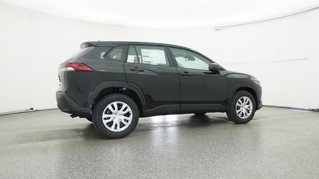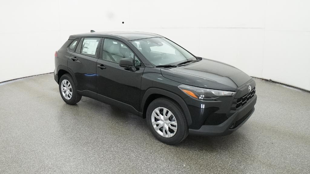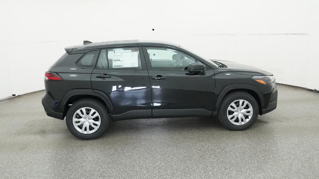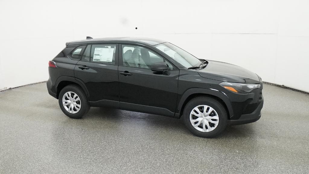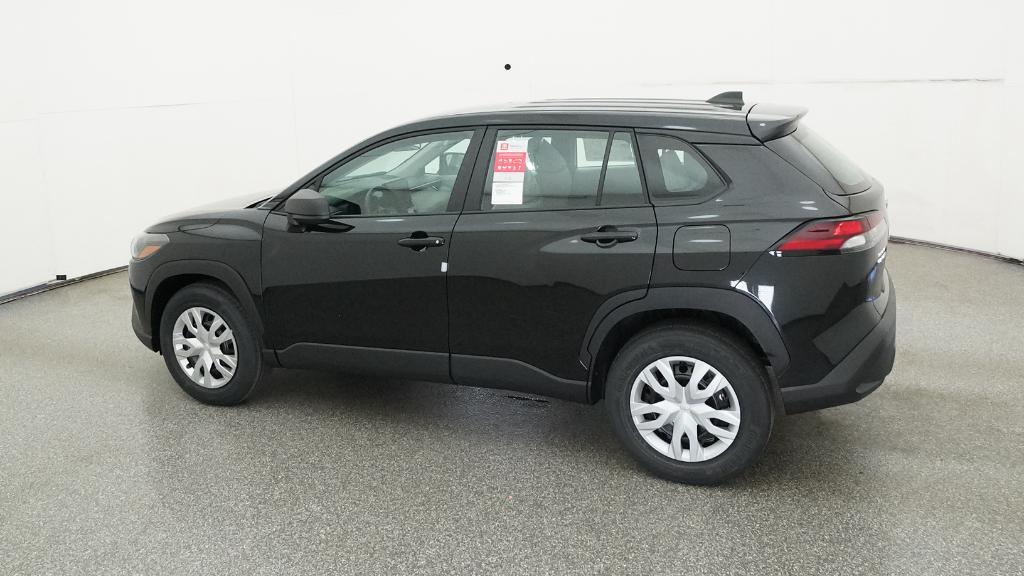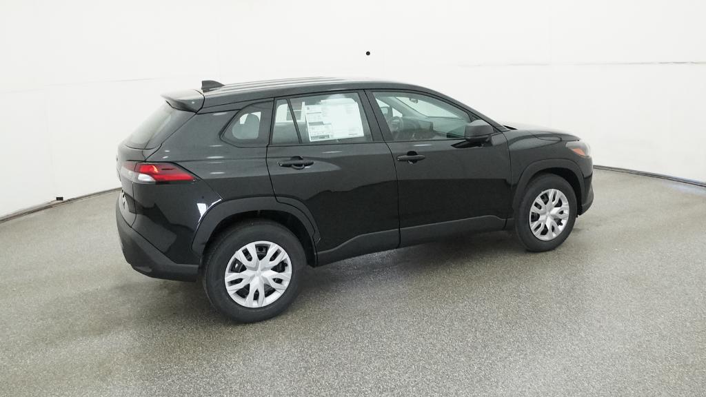 2026 Toyota Corolla Cross L Jet Black FWD CVT 2.0L I4 PDI DOHC 16V LEV3-SULEV30 169hp4-Wheel Disc Brakes, 6 Speakers, ABS brakes, Air Conditioning, AM/FM radio: SiriusXM, Auto High-beam Headlights, Brake assist, Bumpers: body-color, Delay-off headlights, Driver door bin, Driver vanity mirror, Dual front impact airbags, Dual front side impact airbags, Electronic Stability Control, Emergency communication system: Safety Connect (10-year trial), Exterior Parking Camera Rear, Fabric Seat Trim, Front anti-roll bar, Front Bucket Seats, Front Center Armrest, Front reading lights, Front Seats, Front wheel independent suspension, Heated door mirrors, Illuminated entry, Knee airbag, Low tire pressure warning, Occupant sensing airbag, Outside temperature display, Overhead airbag, Panic alarm, Passenger door bin, Passenger vanity mirror, Power door mirrors, Power steering, Power windows, Radio data system, Radio: 8 Toyota Audio Multimedia with 6 Speakers, Rear anti-roll bar, Rear side impact airbag, Rear window defroster, Remote keyless entry, Speed control, Split folding rear seat, Spoiler, Steering wheel mounted audio controls, Tachometer, Telescoping steering wheel, Tilt steering wheel, Traction control, Trip computer, Turn signal indicator mirrors, Variably intermittent wipers, Wheels: 17 Steel with Covers.