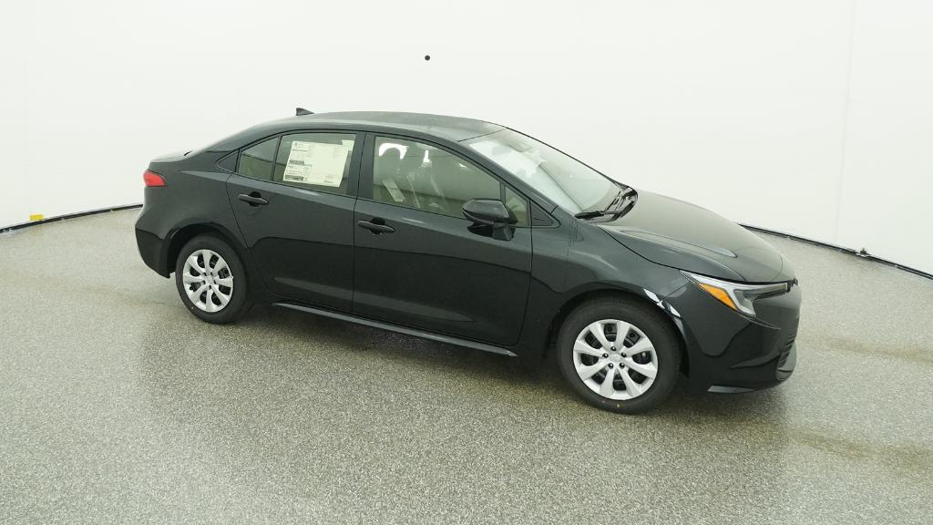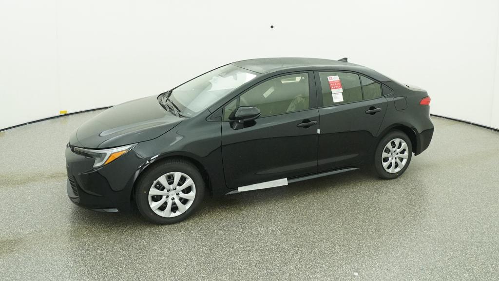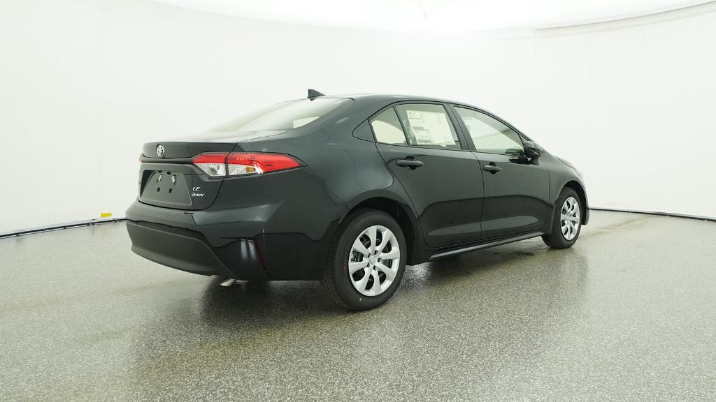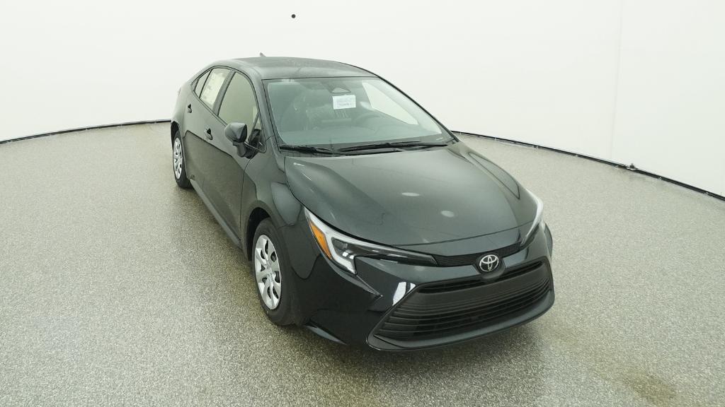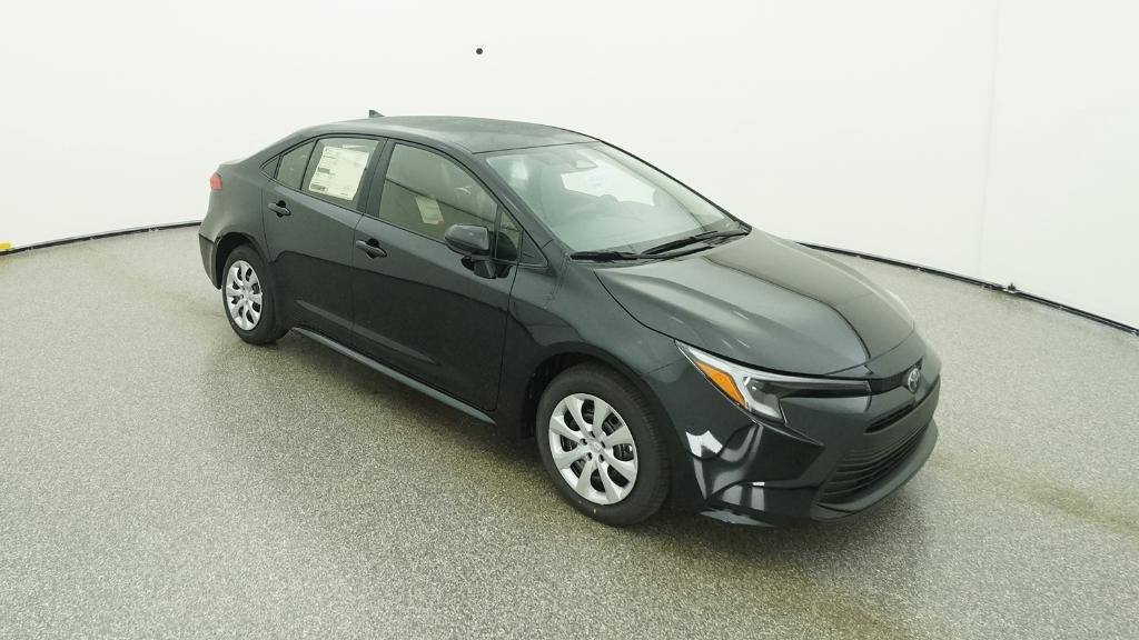 2026 Toyota Corolla Hybrid LE Midnight Black Metallic FWD eCVT 1.8L DOHC 16V VVT4-Wheel Disc Brakes, 6 Speakers, ABS brakes, Air Conditioning, AM/FM radio: SiriusXM, Apple CarPlay/Android Auto, Auto High-beam Headlights, Automatic temperature control, Brake assist, Bumpers: body-color, Delay-off headlights, Driver door bin, Driver vanity mirror, Dual front impact airbags, Dual front side impact airbags, Electronic Stability Control, Emergency communication system: Safety Connect (up to 10-year trial subscription), Exterior Parking Camera Rear, Four wheel independent suspension, Front anti-roll bar, Front Bucket Seats, Front Center Armrest, Front reading lights, Fully automatic headlights, Illuminated entry, Knee airbag, Low tire pressure warning, Occupant sensing airbag, Outside temperature display, Overhead airbag, Panic alarm, Passenger door bin, Passenger vanity mirror, Power door mirrors, Power steering, Power windows, Premium Fabric Seat Trim, Radio data system, Radio: 8 Toyota Audio Multimedia, Rear anti-roll bar, Rear seat center armrest, Rear side impact airbag, Rear window defroster, Remote keyless entry, Speed control, Split folding rear seat, Steering wheel mounted audio controls, Tachometer, Telescoping steering wheel, Tilt steering wheel, Traction control, Trip computer, Wheels: 16 Wide Vent Steel.