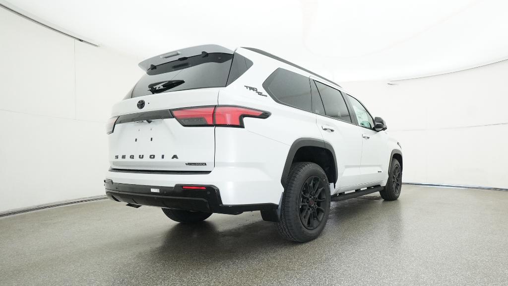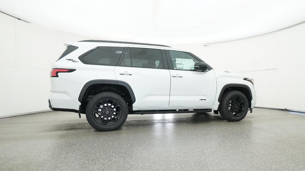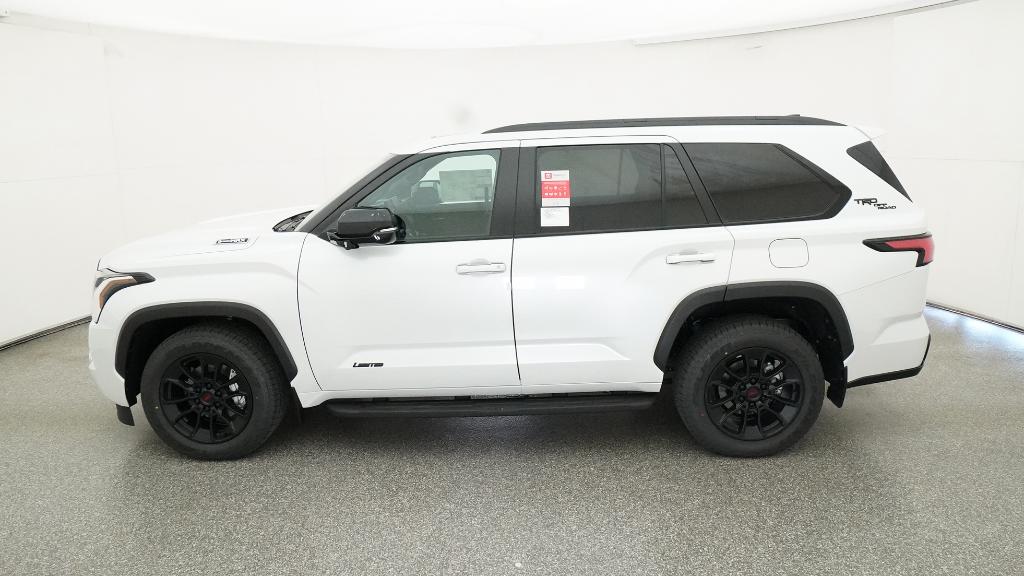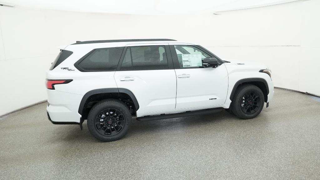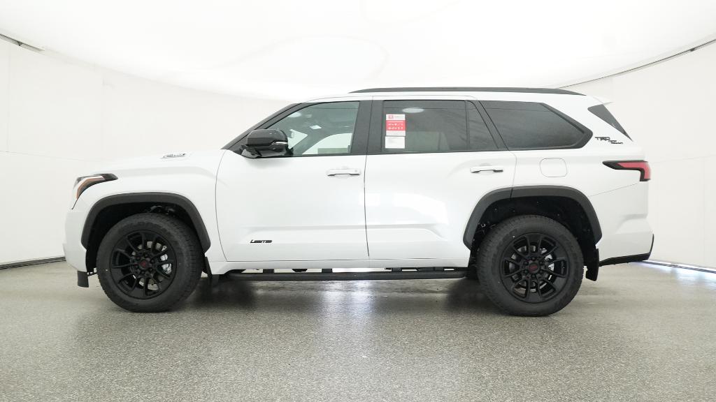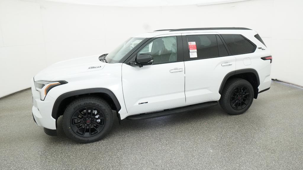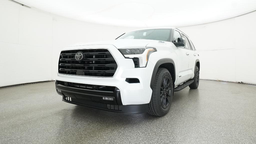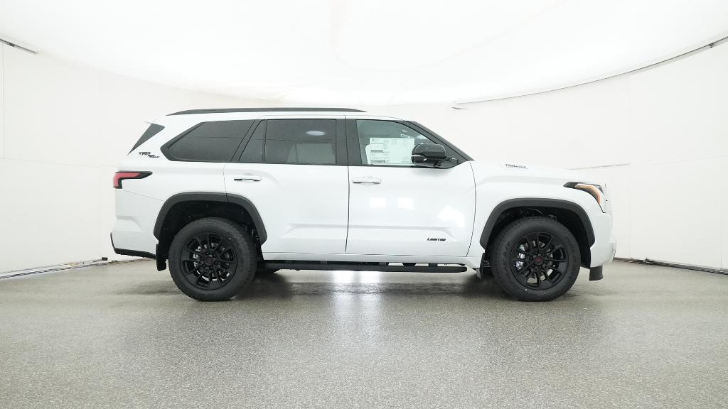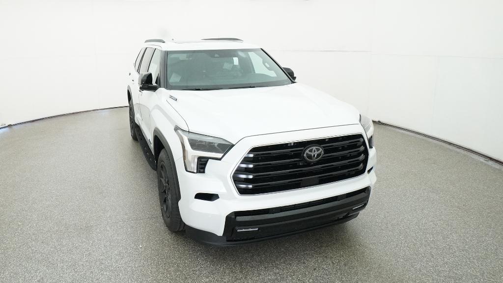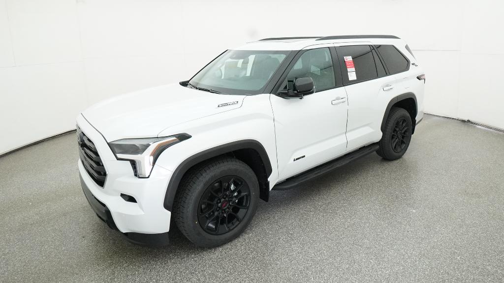 2026 Toyota Sequoia Limited Wind Chill Pearl 4WD 10-Speed Automatic V6 Hybrid3rd row seats: split-bench, 4-Wheel Disc Brakes, 8 Speakers, ABS brakes, Air Conditioning, Alloy wheels, AM/FM radio: SiriusXM, Anti-whiplash front head restraints, Apple CarPlay/Android Auto, Auto High-beam Headlights, Auto-dimming door mirrors, Auto-dimming Rear-View mirror, Automatic temperature control, Brake assist, Bumpers: body-color, Delay-off headlights, Driver door bin, Driver vanity mirror, Dual front impact airbags, Dual front side impact airbags, Electronic Stability Control, Emergency communication system: Safety Connect (10-year trial), Exterior Parking Camera Rear, Front anti-roll bar, Front Bucket Seats, Front Center Armrest w/Storage, Front dual zone A/C, Front fog lights, Front reading lights, Front wheel independent suspension, Fully automatic headlights, Garage door transmitter: HomeLink, Headlight cleaning, Heated and Ventilated Front Seats, Heated door mirrors, Heated front seats, Heated steering wheel, Illuminated entry, Knee airbag, Leather Seat Trim, Leather Shift Knob, Leather steering wheel, Low tire pressure warning, Memory seat, Navigation system: Drive Connect (1 year trial) includes Cloud Navigation with real time traffic and Google POI, Occupant sensing airbag, Outside temperature display, Overhead airbag, Overhead console, Panic alarm, Passenger door bin, Passenger vanity mirror, Power door mirrors, Power driver seat, Power Liftgate, Power moonroof, Power passenger seat, Power steering, Power windows, Radio: 14 Toyota Audio Multimedia, Rear air conditioning, Rear reading lights, Rear seat center armrest, Rear window defroster, Rear window wiper, Reclining 3rd row seat, Remote keyless entry, Security system, Speed control, Speed-sensing steering, Split folding rear seat, Spoiler, Steering wheel mounted audio controls, Tachometer, Telescoping steering wheel, Tilt steering wheel, Traction control, Trip computer, Turn signal indicator mirrors, Variably intermittent wipers, Ventilated front seats, Voltmeter, Wheels: 20 Machined-Finish Alloy.
