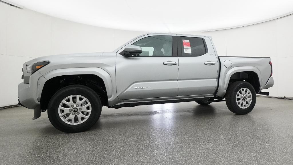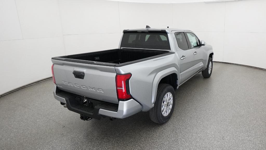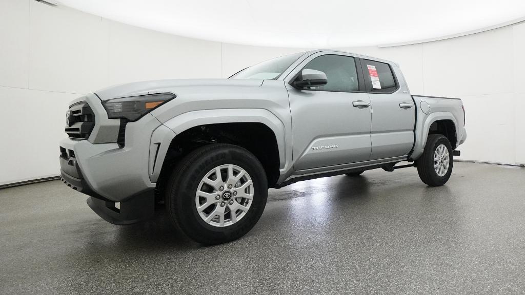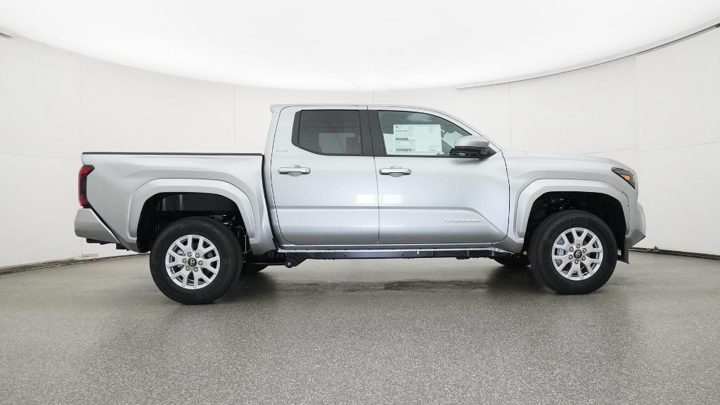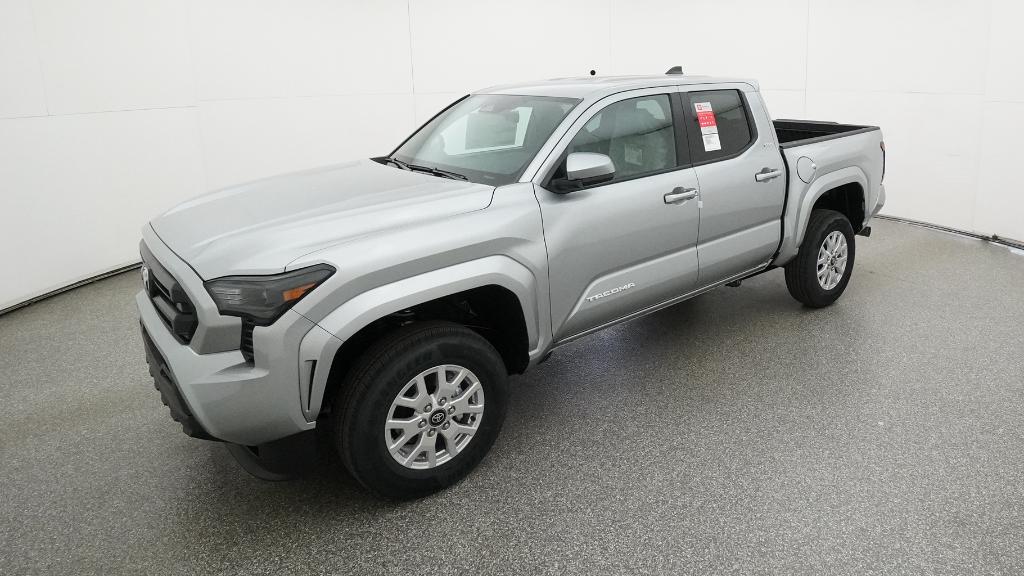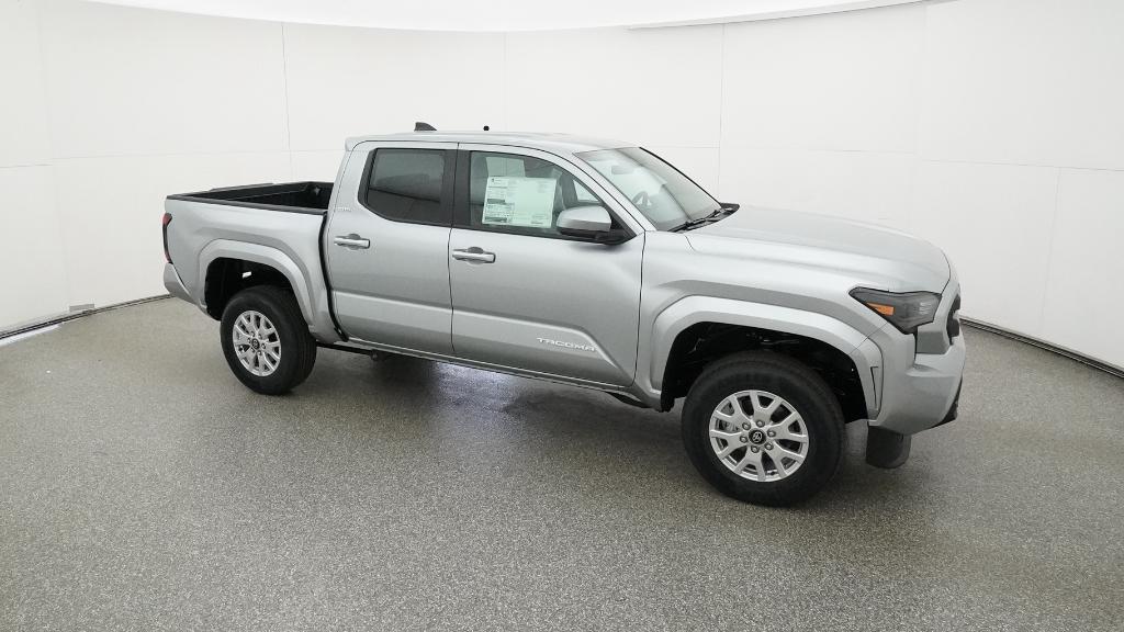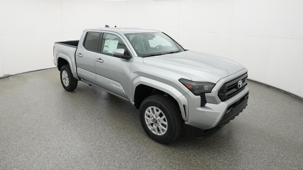 2026 Toyota Tacoma SR5 Celestial Silver Metallic 4WD 8-Speed Automatic 2.4L 4-Cylinder3.583 Axle Ratio, 4-Wheel Disc Brakes, 6 Speakers, ABS brakes, Air Conditioning, Alloy wheels, AM/FM radio: SiriusXM, Anti-whiplash front head restraints, Apple CarPlay/Android Auto, Auto High-beam Headlights, Auto-dimming Rear-View mirror, Brake assist, Bumpers: body-color, Driver door bin, Dual front impact airbags, Dual front side impact airbags, Electronic Stability Control, Emergency communication system: Safety Connect (up to 10-year trial subscription), Exterior Parking Camera Rear, Fabric Seat Trim, Four wheel independent suspension, Front anti-roll bar, Front Bucket Seats, Front Center Armrest, Front fog lights, Front reading lights, Fully automatic headlights, Heated door mirrors, Illuminated entry, JBL Premium Audio, Knee airbag, Low tire pressure warning, Occupant sensing airbag, Outside temperature display, Overhead airbag, Overhead console, Panic alarm, Passenger door bin, Power door mirrors, Power steering, Power windows, Radio: 8 Toyota Audio Multimedia, Rear step bumper, Rear window defroster, Remote keyless entry, Speed control, Speed-sensing steering, Split folding rear seat, Steering wheel mounted audio controls, Tachometer, Telescoping steering wheel, Tilt steering wheel, Traction control, Trip computer, Variably intermittent wipers, Wheels: 17 Styled Alloy.