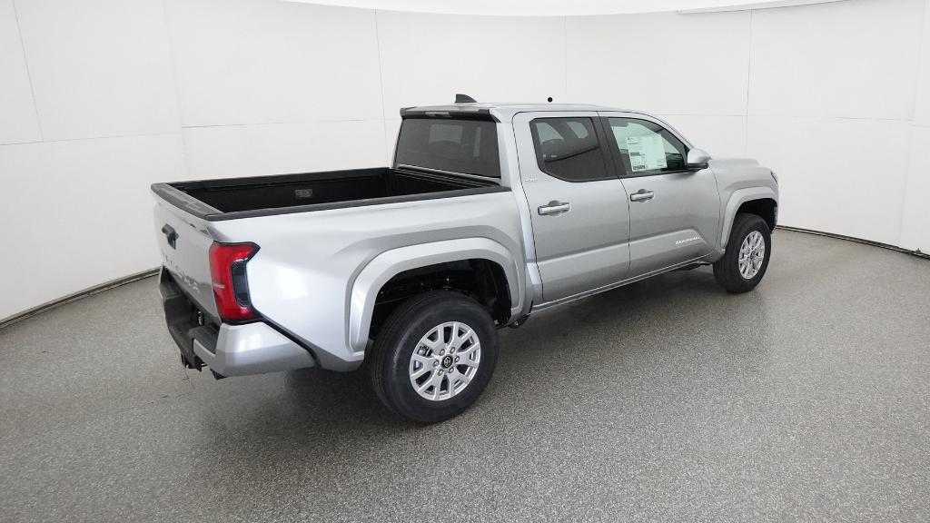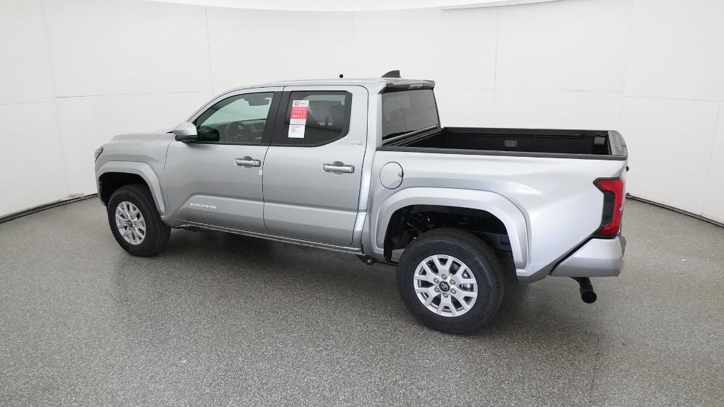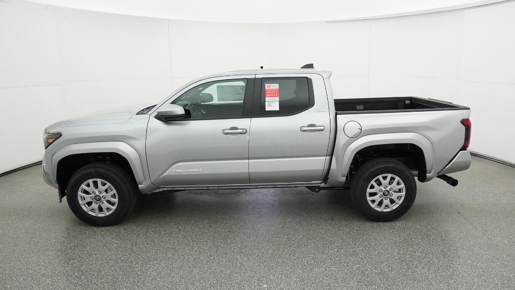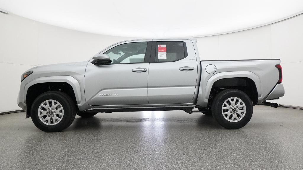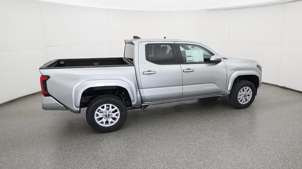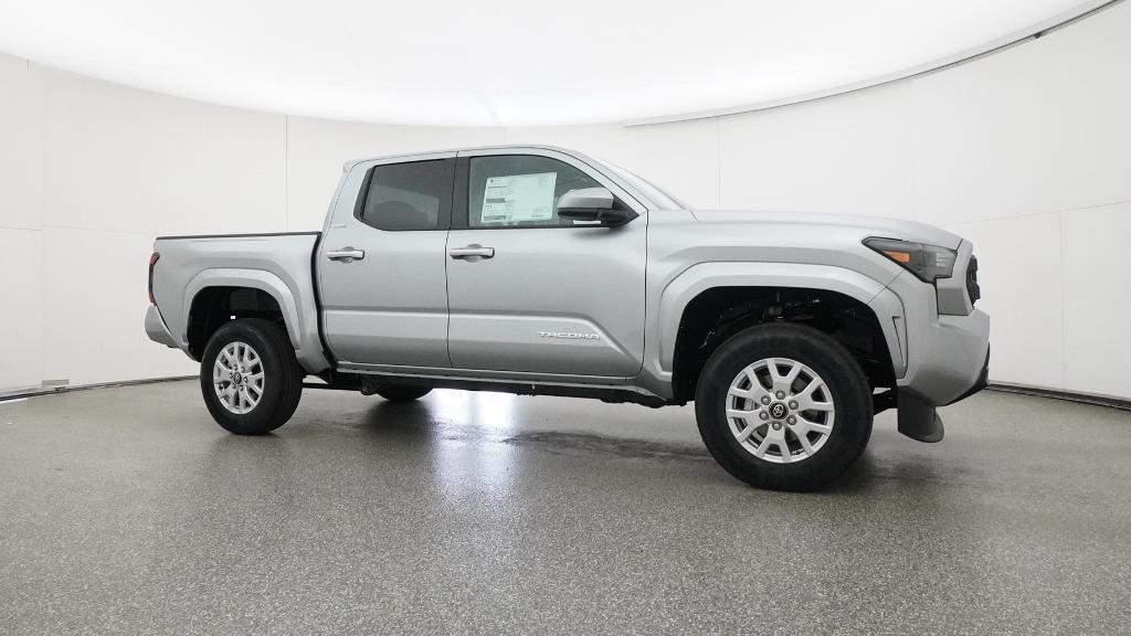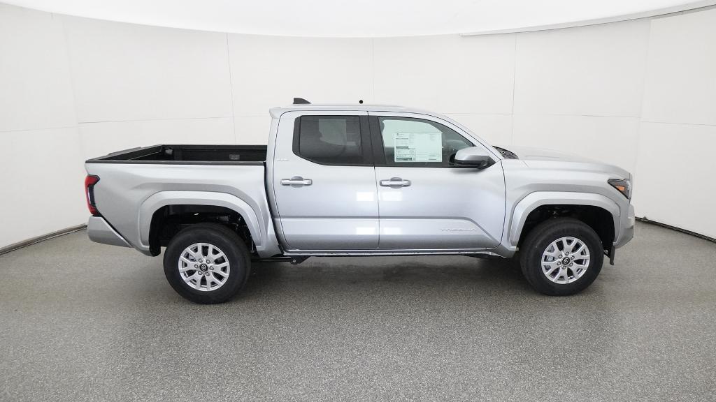 2026 Toyota Tacoma SR5 Celestial Silver Metallic 4WD 8-Speed Automatic 2.4L 4-Cylinder3.583 Axle Ratio, 4-Wheel Disc Brakes, 6 Speakers, ABS brakes, Air Conditioning, Alloy wheels, AM/FM radio: SiriusXM, Anti-whiplash front head restraints, Apple CarPlay/Android Auto, Auto High-beam Headlights, Auto-dimming Rear-View mirror, Brake assist, Bumpers: body-color, Driver door bin, Dual front impact airbags, Dual front side impact airbags, Electronic Stability Control, Emergency communication system: Safety Connect (up to 10-year trial subscription), Exterior Parking Camera Rear, Fabric Seat Trim, Four wheel independent suspension, Front anti-roll bar, Front Bucket Seats, Front Center Armrest, Front fog lights, Front reading lights, Fully automatic headlights, Heated door mirrors, Illuminated entry, JBL Premium Audio, Knee airbag, Low tire pressure warning, Occupant sensing airbag, Outside temperature display, Overhead airbag, Overhead console, Panic alarm, Passenger door bin, Power door mirrors, Power steering, Power windows, Radio: 8 Toyota Audio Multimedia, Rear step bumper, Rear window defroster, Remote keyless entry, Speed control, Speed-sensing steering, Split folding rear seat, Steering wheel mounted audio controls, Tachometer, Telescoping steering wheel, Tilt steering wheel, Traction control, Trip computer, Variably intermittent wipers, Wheels: 17 Styled Alloy.