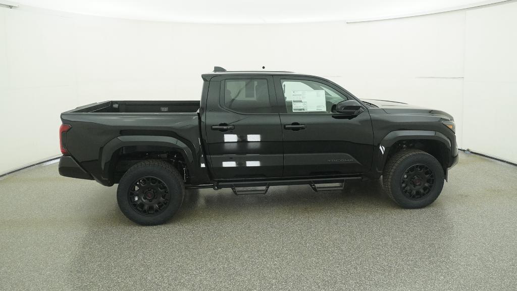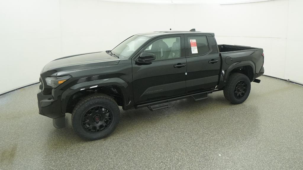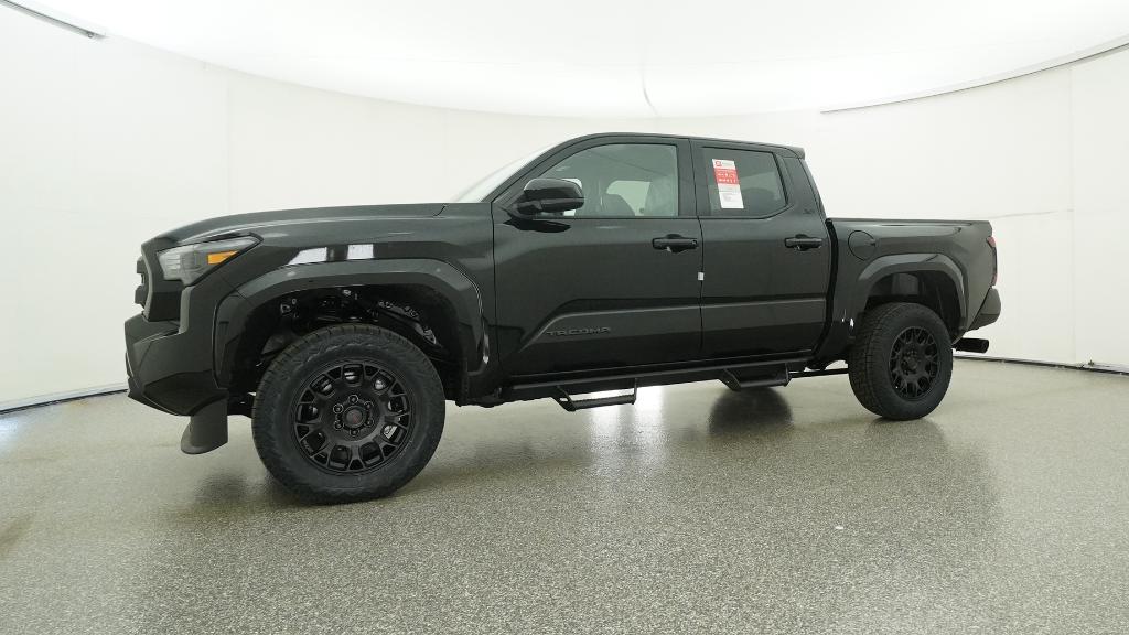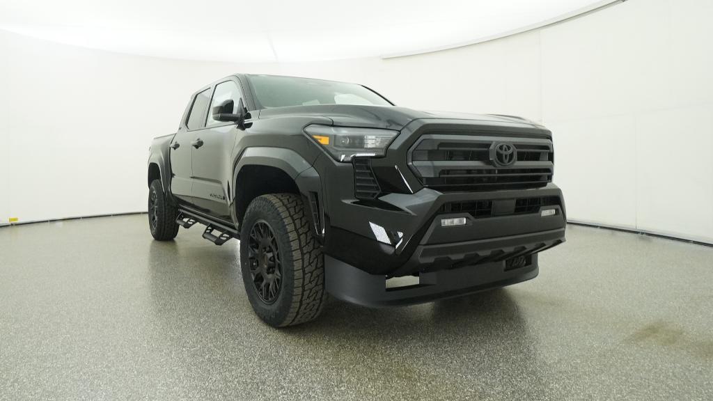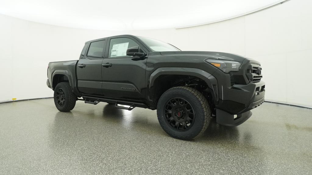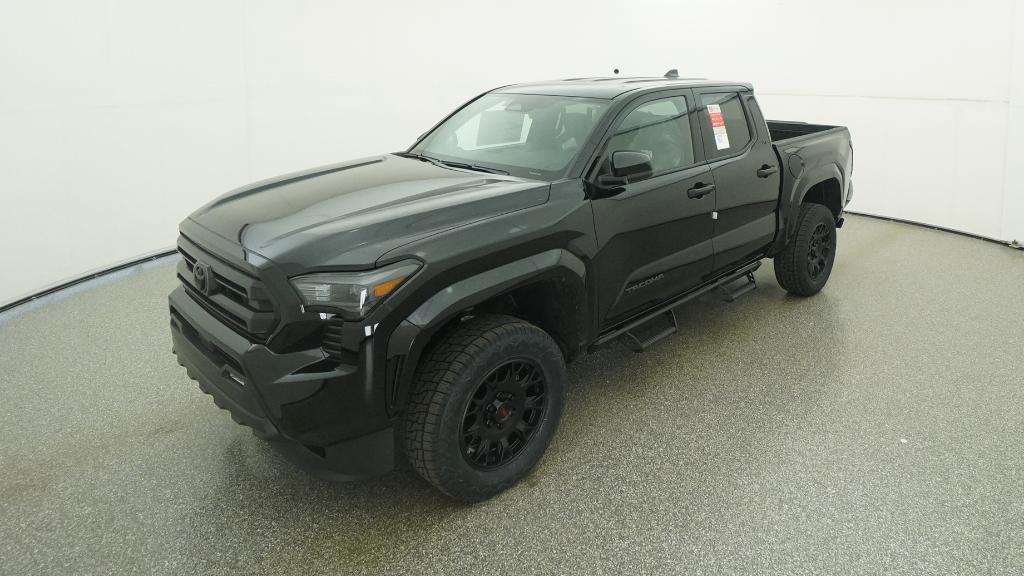 2026 Toyota Tacoma SR5 Black 4WD 8-Speed Automatic 2.4L 4-Cylinder3.583 Axle Ratio, 4-Wheel Disc Brakes, 6 Speakers, ABS brakes, Air Conditioning, Alloy wheels, AM/FM radio: SiriusXM, Anti-whiplash front head restraints, Apple CarPlay/Android Auto, Auto High-beam Headlights, Auto-dimming Rear-View mirror, Brake assist, Bumpers: body-color, Driver door bin, Dual front impact airbags, Dual front side impact airbags, Electronic Stability Control, Emergency communication system: Safety Connect (up to 10-year trial subscription), Exterior Parking Camera Rear, Fabric Seat Trim, Four wheel independent suspension, Front anti-roll bar, Front Bucket Seats, Front Center Armrest, Front fog lights, Front reading lights, Fully automatic headlights, Heated door mirrors, Illuminated entry, JBL Premium Audio, Knee airbag, Low tire pressure warning, Occupant sensing airbag, Outside temperature display, Overhead airbag, Overhead console, Panic alarm, Passenger door bin, Power door mirrors, Power steering, Power windows, Radio: 8 Toyota Audio Multimedia, Rear step bumper, Rear window defroster, Remote keyless entry, Speed control, Speed-sensing steering, Split folding rear seat, Steering wheel mounted audio controls, Tachometer, Telescoping steering wheel, Tilt steering wheel, Traction control, Trip computer, Variably intermittent wipers, Wheels: 17 Styled Alloy.