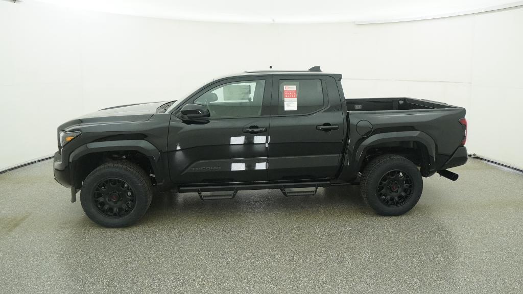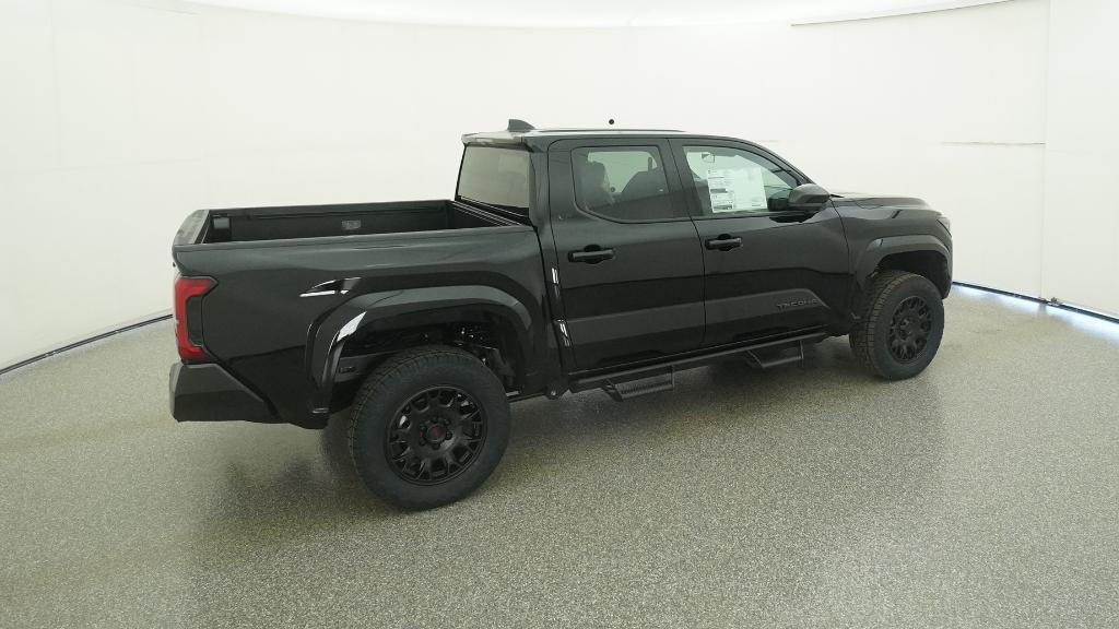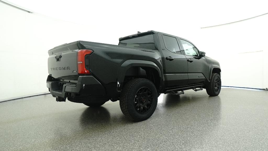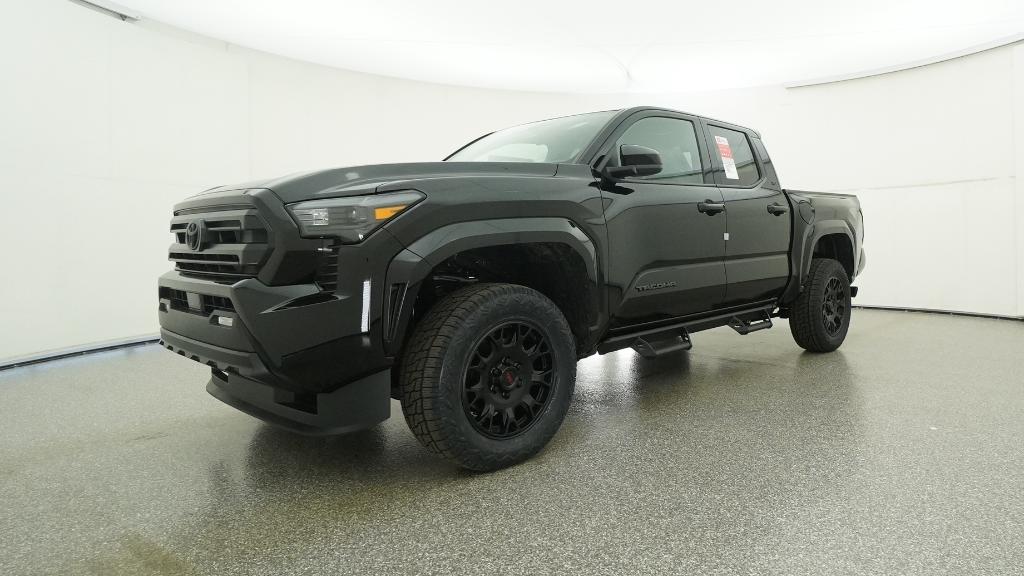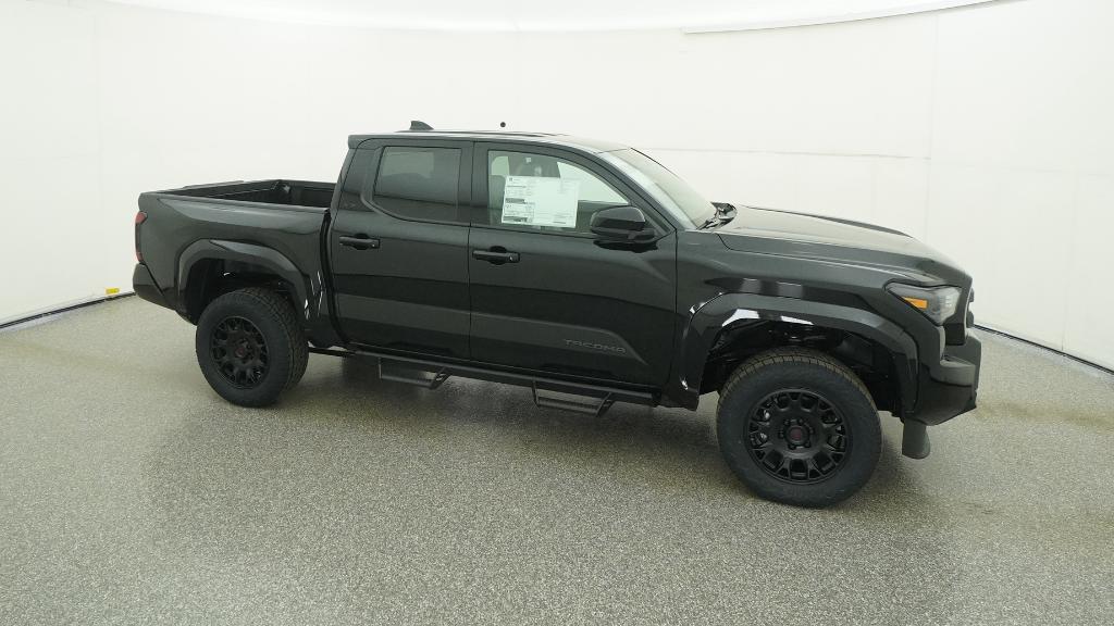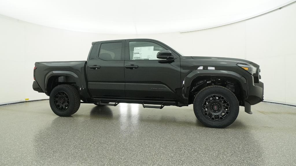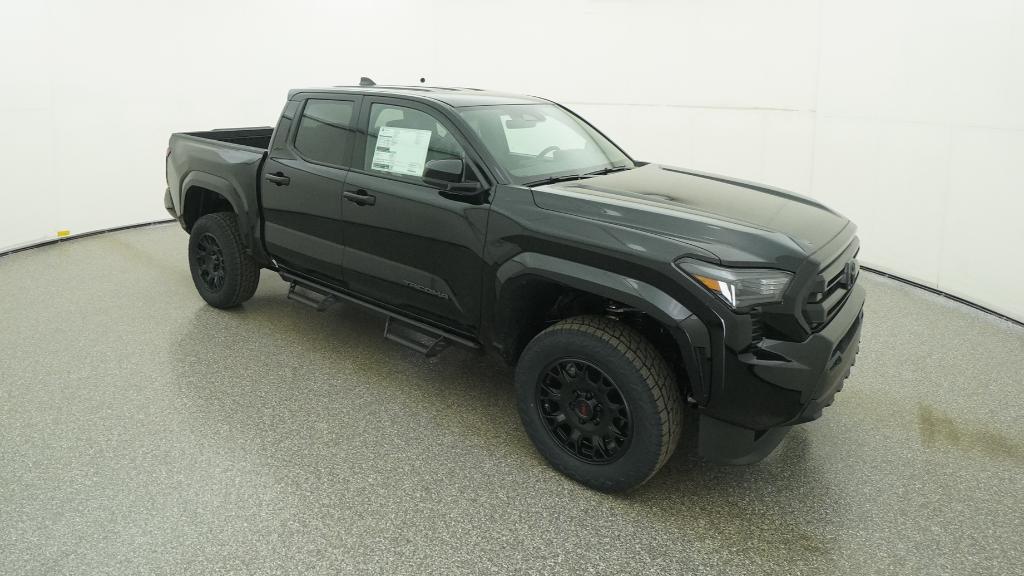 2026 Toyota Tacoma SR5 Black 4WD 8-Speed Automatic 2.4L 4-Cylinder3.583 Axle Ratio, 4-Wheel Disc Brakes, 6 Speakers, ABS brakes, Air Conditioning, Alloy wheels, AM/FM radio: SiriusXM, Anti-whiplash front head restraints, Apple CarPlay/Android Auto, Auto High-beam Headlights, Auto-dimming Rear-View mirror, Brake assist, Bumpers: body-color, Driver door bin, Dual front impact airbags, Dual front side impact airbags, Electronic Stability Control, Emergency communication system: Safety Connect (up to 10-year trial subscription), Exterior Parking Camera Rear, Fabric Seat Trim, Four wheel independent suspension, Front anti-roll bar, Front Bucket Seats, Front Center Armrest, Front fog lights, Front reading lights, Fully automatic headlights, Heated door mirrors, Illuminated entry, JBL Premium Audio, Knee airbag, Low tire pressure warning, Occupant sensing airbag, Outside temperature display, Overhead airbag, Overhead console, Panic alarm, Passenger door bin, Power door mirrors, Power steering, Power windows, Radio: 8 Toyota Audio Multimedia, Rear step bumper, Rear window defroster, Remote keyless entry, Speed control, Speed-sensing steering, Split folding rear seat, Steering wheel mounted audio controls, Tachometer, Telescoping steering wheel, Tilt steering wheel, Traction control, Trip computer, Variably intermittent wipers, Wheels: 17 Styled Alloy.