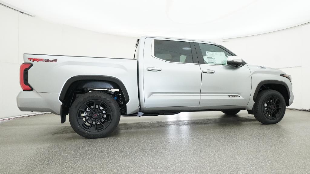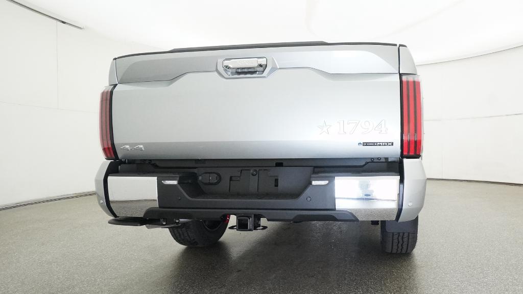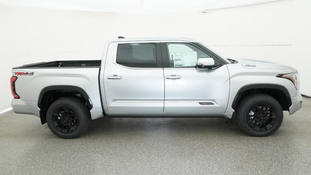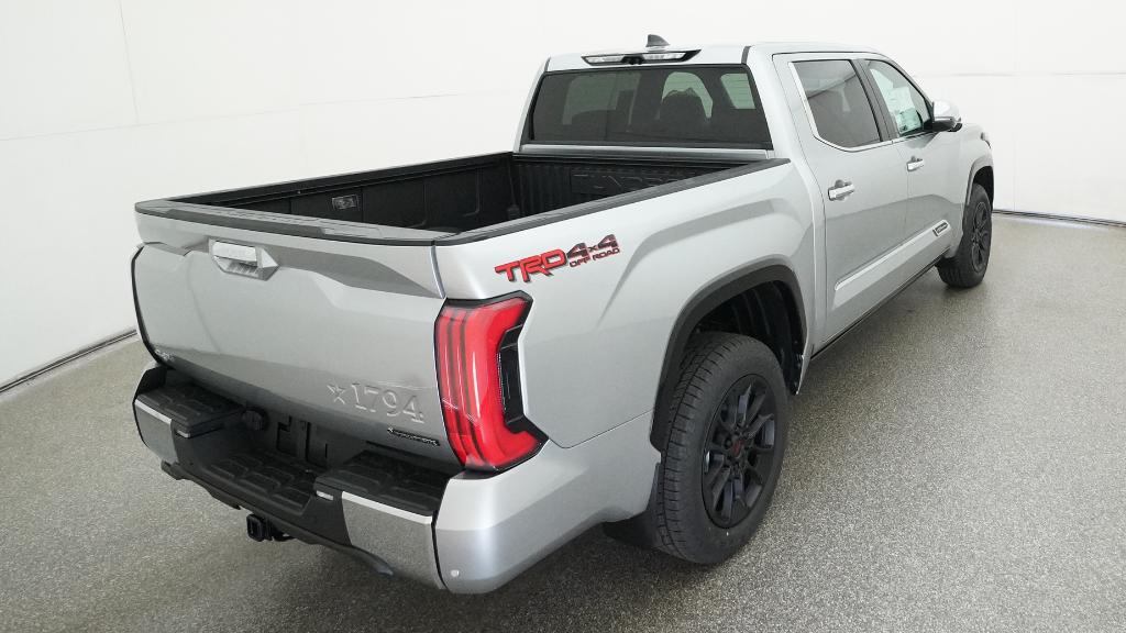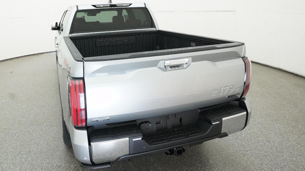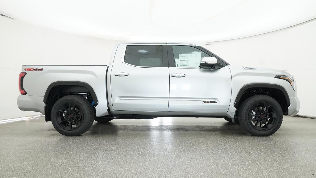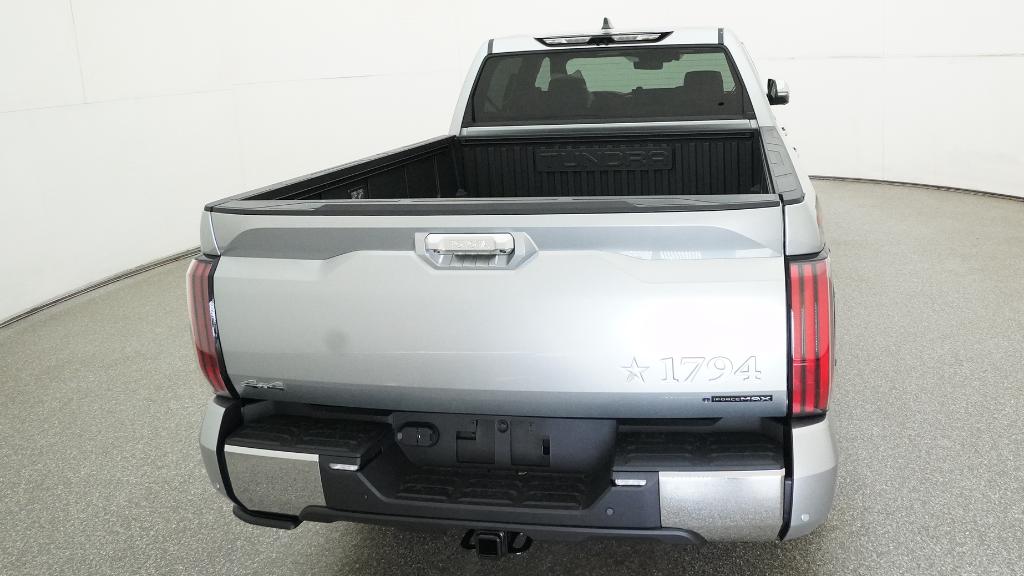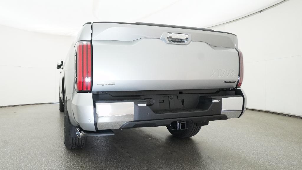 2026 Toyota Tundra Hybrid 1794 Edition Celestial Silver Metallic 4WD 10-Speed Automatic 3.4L V612 Speakers, 3.31 Axle Ratio, 4-Wheel Disc Brakes, ABS brakes, Air Conditioning, Alloy wheels, AM/FM radio: SiriusXM, Apple CarPlay/Android Auto, Auto High-beam Headlights, Auto-dimming door mirrors, Auto-dimming Rear-View mirror, Automatic temperature control, Brake assist, Bumpers: body-color, Compass, Delay-off headlights, Driver door bin, Driver vanity mirror, Dual front impact airbags, Dual front side impact airbags, Electronic Stability Control, Emergency communication system: Safety Connect (up to 10-year trial subscription), Exterior Parking Camera Rear, Front anti-roll bar, Front Bucket Seats, Front Center Armrest, Front dual zone A/C, Front fog lights, Front reading lights, Front wheel independent suspension, Fully automatic headlights, Garage door transmitter: HomeLink, Heated and Ventilated Front Bucket Seats, Heated door mirrors, Heated front seats, Heated rear seats, Heated steering wheel, Illuminated entry, Knee airbag, Leather Shift Knob, Leather steering wheel, Low tire pressure warning, Memory seat, Navigation system: Drive Connect Cloud Navigation (1-year trial subscription), Occupant sensing airbag, Outside temperature display, Overhead airbag, Overhead console, Panic alarm, Passenger door bin, Passenger vanity mirror, Power door mirrors, Power driver seat, Power moonroof, Power passenger seat, Power steering, Power windows, Premium Leather Seat Trim, Radio data system, Radio: Premium Audio with JBL, Rain sensing wipers, Rear reading lights, Rear seat center armrest, Rear step bumper, Rear window defroster, Remote keyless entry, Security system, Speed control, Speed-sensing steering, Speed-Sensitive Wipers, Split folding rear seat, Steering wheel memory, Steering wheel mounted audio controls, Tachometer, Telescoping steering wheel, Tilt steering wheel, Traction control, Trip computer, Turn signal indicator mirrors, Variably intermittent wipers, Ventilated front seats, Ventilated rear seats, Voltmeter, Wheels: 20 Machined-Finish Alloy.