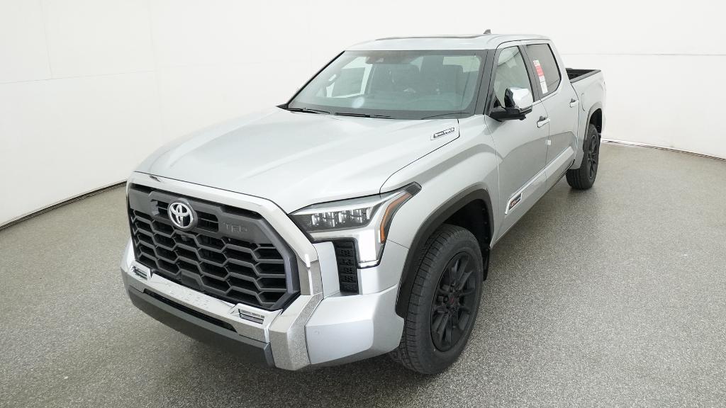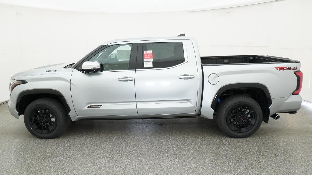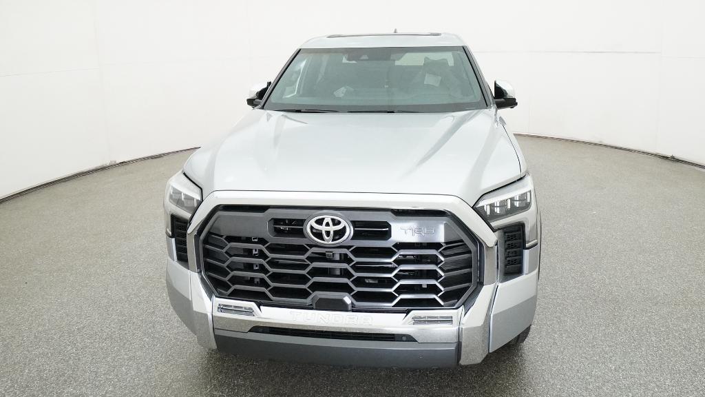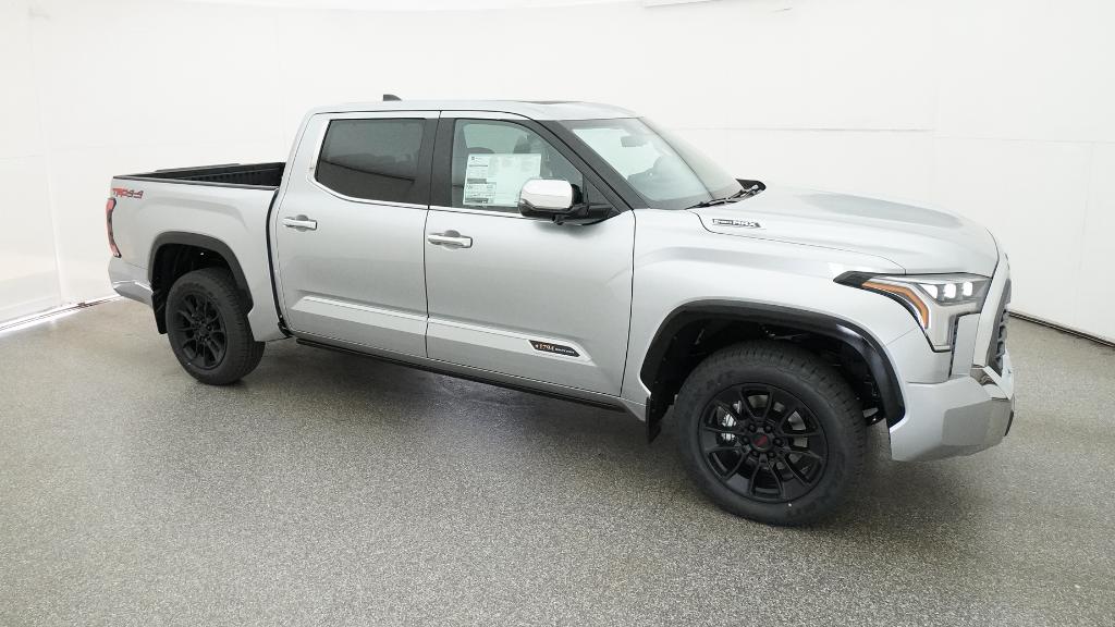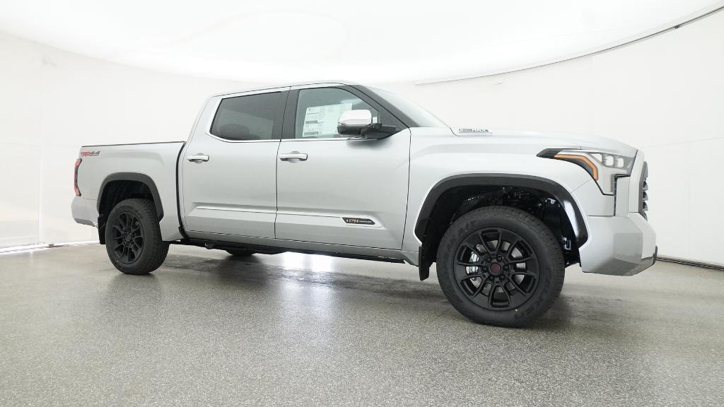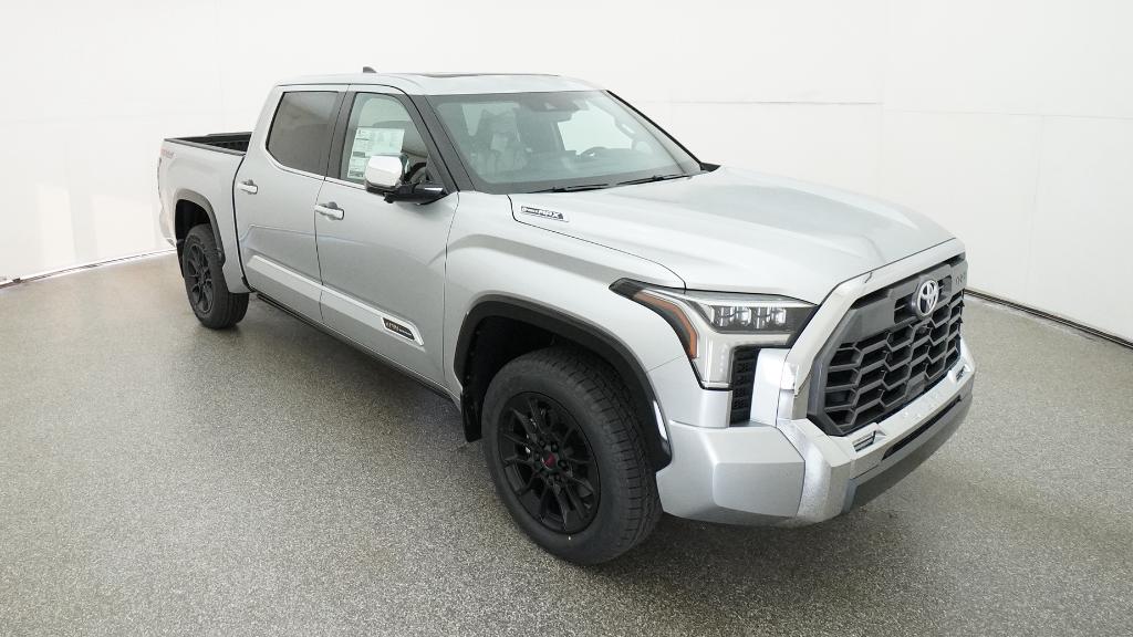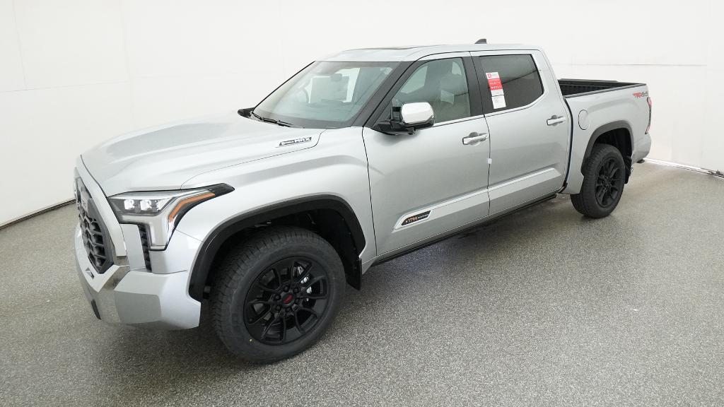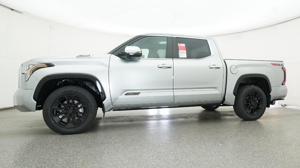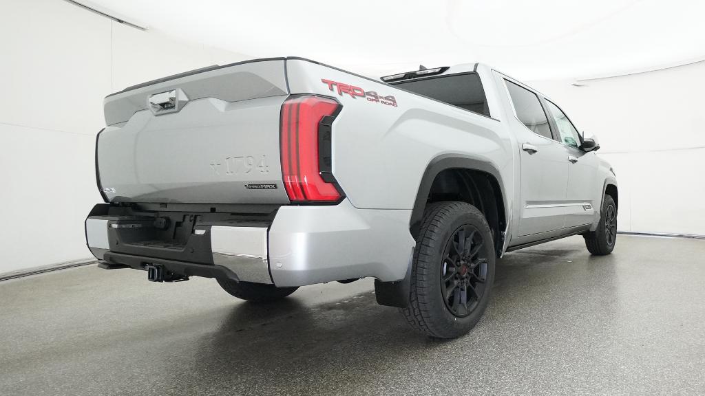 2026 Toyota Tundra Hybrid 1794 Edition Celestial Silver Metallic 4WD 10-Speed Automatic 3.4L V612 Speakers, 3.31 Axle Ratio, 4-Wheel Disc Brakes, ABS brakes, Air Conditioning, Alloy wheels, AM/FM radio: SiriusXM, Apple CarPlay/Android Auto, Auto High-beam Headlights, Auto-dimming door mirrors, Auto-dimming Rear-View mirror, Automatic temperature control, Brake assist, Bumpers: body-color, Compass, Delay-off headlights, Driver door bin, Driver vanity mirror, Dual front impact airbags, Dual front side impact airbags, Electronic Stability Control, Emergency communication system: Safety Connect (up to 10-year trial subscription), Exterior Parking Camera Rear, Front anti-roll bar, Front Bucket Seats, Front Center Armrest, Front dual zone A/C, Front fog lights, Front reading lights, Front wheel independent suspension, Fully automatic headlights, Garage door transmitter: HomeLink, Heated and Ventilated Front Bucket Seats, Heated door mirrors, Heated front seats, Heated rear seats, Heated steering wheel, Illuminated entry, Knee airbag, Leather Shift Knob, Leather steering wheel, Low tire pressure warning, Memory seat, Navigation system: Drive Connect Cloud Navigation (1-year trial subscription), Occupant sensing airbag, Outside temperature display, Overhead airbag, Overhead console, Panic alarm, Passenger door bin, Passenger vanity mirror, Power door mirrors, Power driver seat, Power moonroof, Power passenger seat, Power steering, Power windows, Premium Leather Seat Trim, Radio data system, Radio: Premium Audio with JBL, Rain sensing wipers, Rear reading lights, Rear seat center armrest, Rear step bumper, Rear window defroster, Remote keyless entry, Security system, Speed control, Speed-sensing steering, Speed-Sensitive Wipers, Split folding rear seat, Steering wheel memory, Steering wheel mounted audio controls, Tachometer, Telescoping steering wheel, Tilt steering wheel, Traction control, Trip computer, Turn signal indicator mirrors, Variably intermittent wipers, Ventilated front seats, Ventilated rear seats, Voltmeter, Wheels: 20 Machined-Finish Alloy.