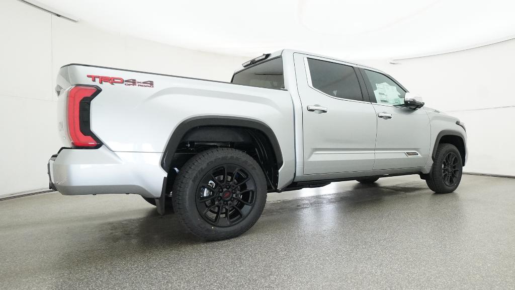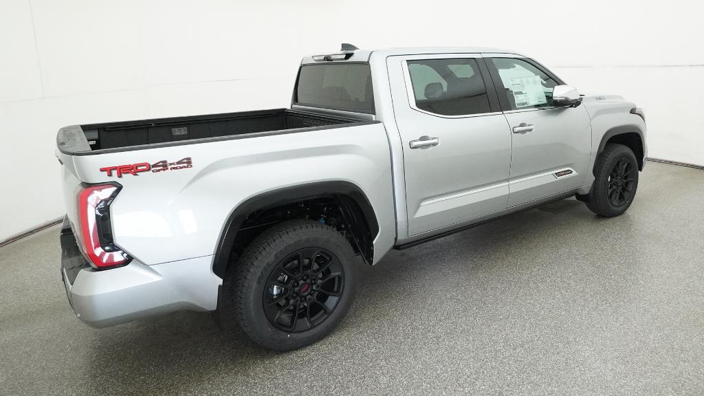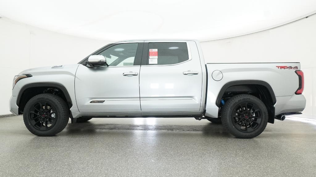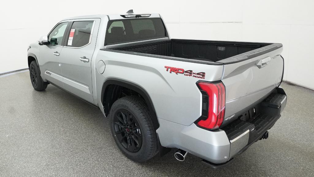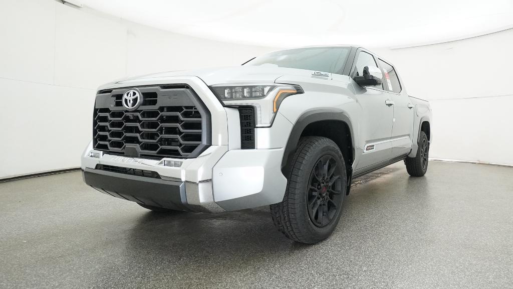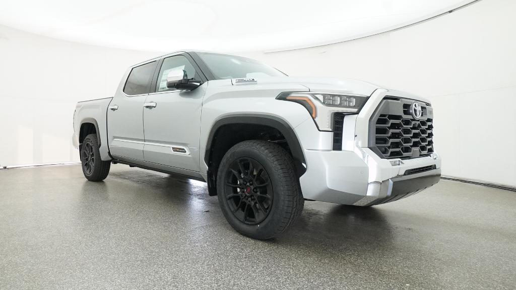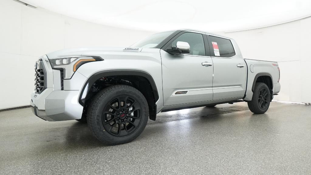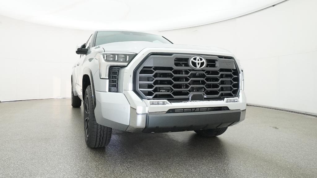 2026 Toyota Tundra Hybrid 1794 Edition Celestial Silver Metallic 4WD 10-Speed Automatic 3.4L V612 Speakers, 3.31 Axle Ratio, 4-Wheel Disc Brakes, ABS brakes, Air Conditioning, Alloy wheels, AM/FM radio: SiriusXM, Apple CarPlay/Android Auto, Auto High-beam Headlights, Auto-dimming door mirrors, Auto-dimming Rear-View mirror, Automatic temperature control, Brake assist, Bumpers: body-color, Compass, Delay-off headlights, Driver door bin, Driver vanity mirror, Dual front impact airbags, Dual front side impact airbags, Electronic Stability Control, Emergency communication system: Safety Connect (up to 10-year trial subscription), Exterior Parking Camera Rear, Front anti-roll bar, Front Bucket Seats, Front Center Armrest, Front dual zone A/C, Front fog lights, Front reading lights, Front wheel independent suspension, Fully automatic headlights, Garage door transmitter: HomeLink, Heated and Ventilated Front Bucket Seats, Heated door mirrors, Heated front seats, Heated rear seats, Heated steering wheel, Illuminated entry, Knee airbag, Leather Shift Knob, Leather steering wheel, Low tire pressure warning, Memory seat, Navigation system: Drive Connect Cloud Navigation (1-year trial subscription), Occupant sensing airbag, Outside temperature display, Overhead airbag, Overhead console, Panic alarm, Passenger door bin, Passenger vanity mirror, Power door mirrors, Power driver seat, Power moonroof, Power passenger seat, Power steering, Power windows, Premium Leather Seat Trim, Radio data system, Radio: Premium Audio with JBL, Rain sensing wipers, Rear reading lights, Rear seat center armrest, Rear step bumper, Rear window defroster, Remote keyless entry, Security system, Speed control, Speed-sensing steering, Speed-Sensitive Wipers, Split folding rear seat, Steering wheel memory, Steering wheel mounted audio controls, Tachometer, Telescoping steering wheel, Tilt steering wheel, Traction control, Trip computer, Turn signal indicator mirrors, Variably intermittent wipers, Ventilated front seats, Ventilated rear seats, Voltmeter, Wheels: 20 Machined-Finish Alloy.