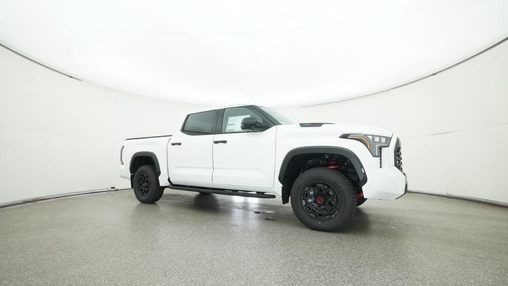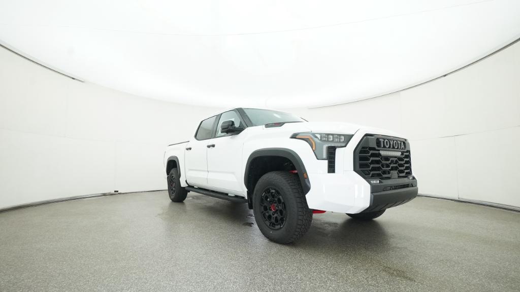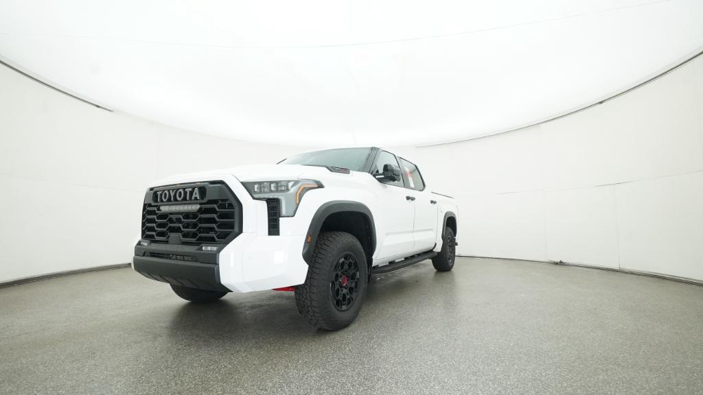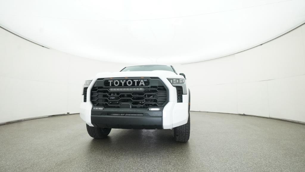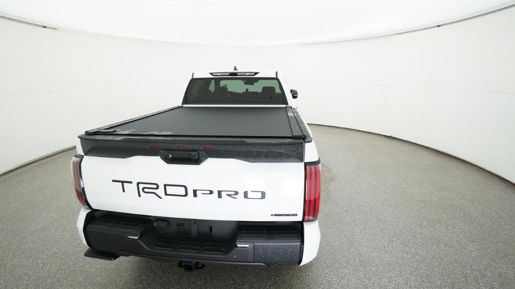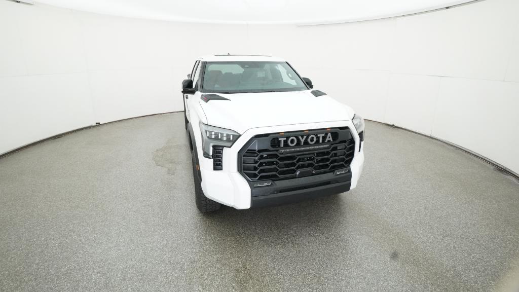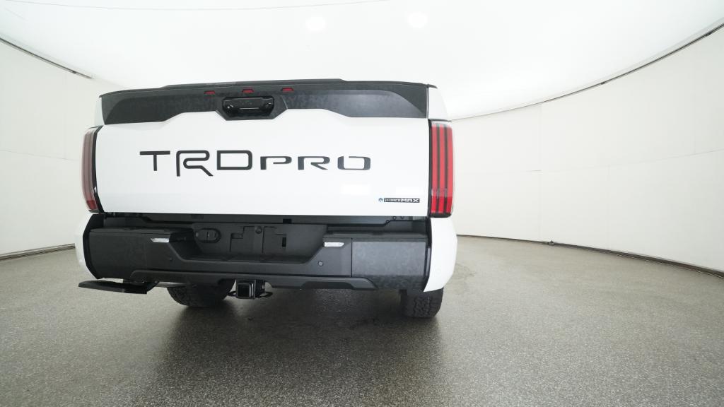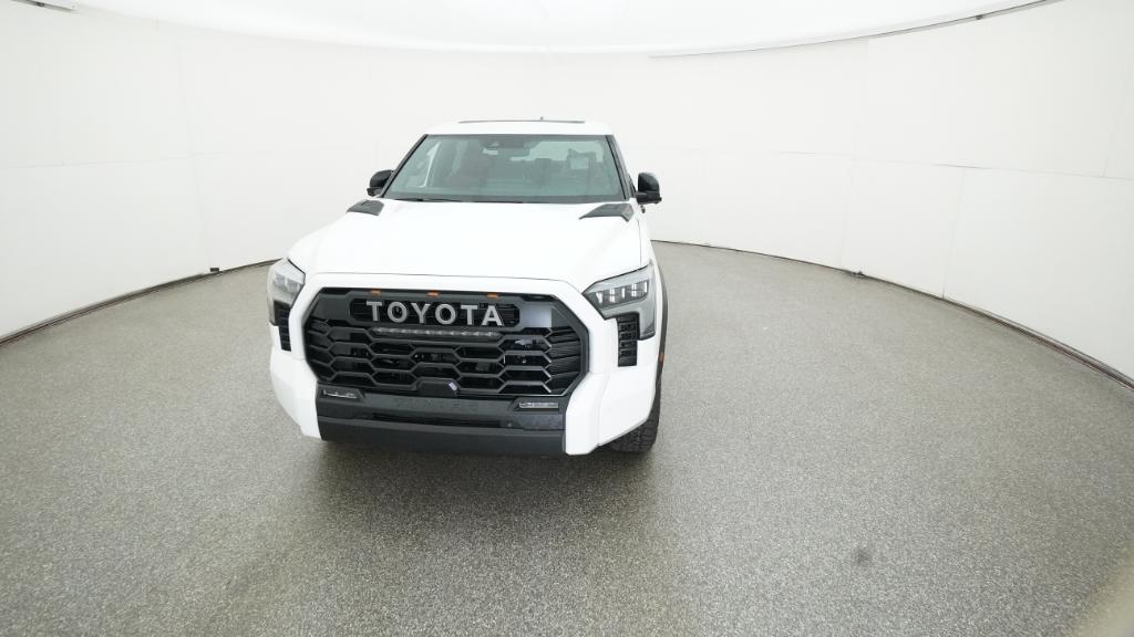 2026 Toyota Tundra Hybrid TRD Pro Ice Cap 4WD 10-Speed Automatic 3.4L V612 Speakers, 3.31 Axle Ratio, 4-Wheel Disc Brakes, ABS brakes, Air Conditioning, Alloy wheels, AM/FM radio: SiriusXM, Apple CarPlay/Android Auto, Auto High-beam Headlights, Auto-dimming door mirrors, Auto-dimming Rear-View mirror, Automatic temperature control, Brake assist, Bumpers: body-color, Delay-off headlights, Driver door bin, Driver vanity mirror, Dual front impact airbags, Dual front side impact airbags, Electronic Stability Control, Emergency communication system: Safety Connect (up to 10-year trial subscription), Exterior Parking Camera Rear, Front anti-roll bar, Front Bucket Seats, Front Center Armrest, Front dual zone A/C, Front fog lights, Front reading lights, Front wheel independent suspension, Fully automatic headlights, Garage door transmitter: HomeLink, Heated and Ventilated Front Bucket Seats, Heated door mirrors, Heated front seats, Illuminated entry, Knee airbag, Leather Shift Knob, Leather steering wheel, Low tire pressure warning, Memory seat, Navigation system: Drive Connect Cloud Navigation (1-year trial subscription), Occupant sensing airbag, Outside temperature display, Overhead airbag, Overhead console, Panic alarm, Passenger door bin, Passenger vanity mirror, Power door mirrors, Power driver seat, Power moonroof, Power passenger seat, Power steering, Power windows, Radio data system, Radio: Premium Audio with JBL, Rear reading lights, Rear seat center armrest, Rear step bumper, Rear window defroster, Remote keyless entry, Security system, SofTex Seat Trim, Speed control, Speed-sensing steering, Split folding rear seat, Sport steering wheel, Steering wheel mounted audio controls, Tachometer, Telescoping steering wheel, Tilt steering wheel, Traction control, Trip computer, Turn signal indicator mirrors, Variably intermittent wipers, Ventilated front seats, Voltmeter, Wheels: 18 Black Forged Aluminum BBS.