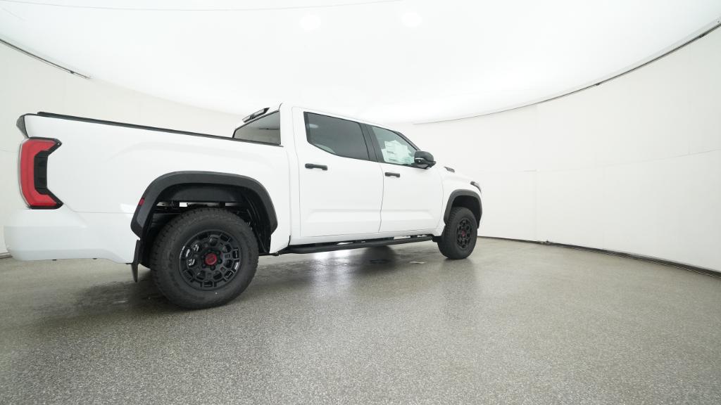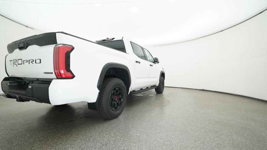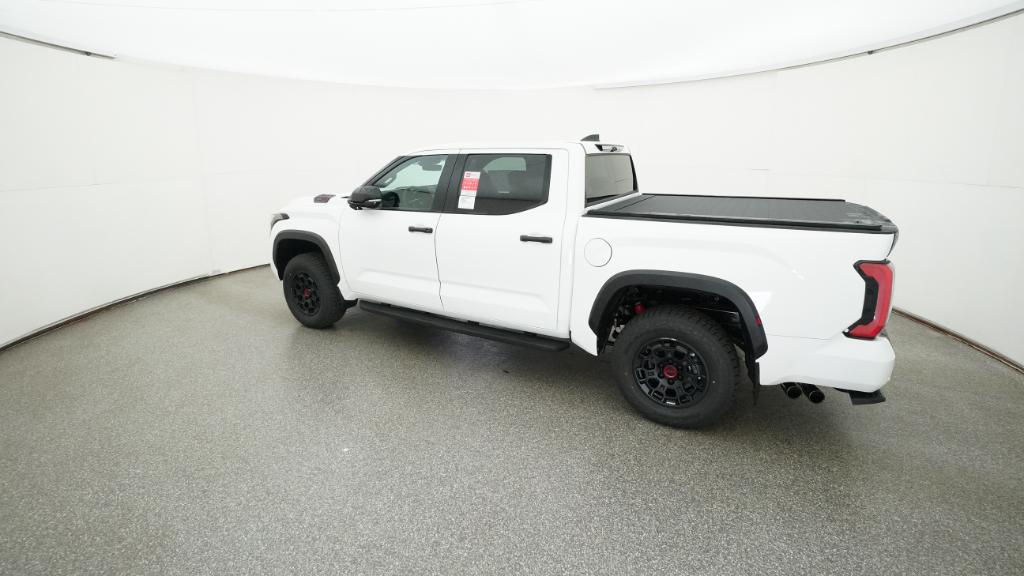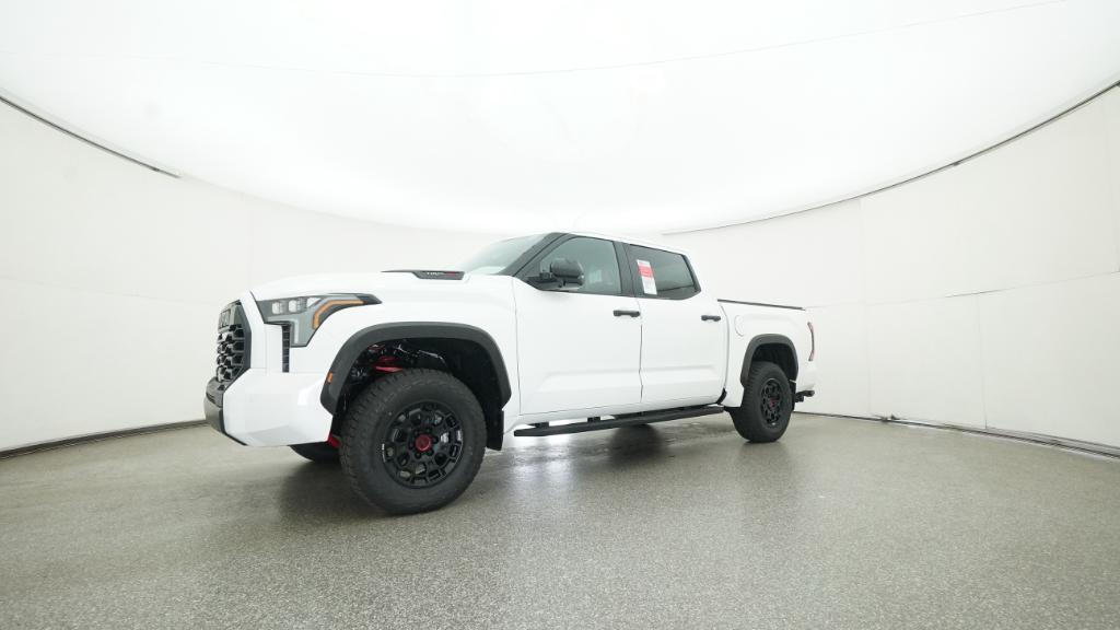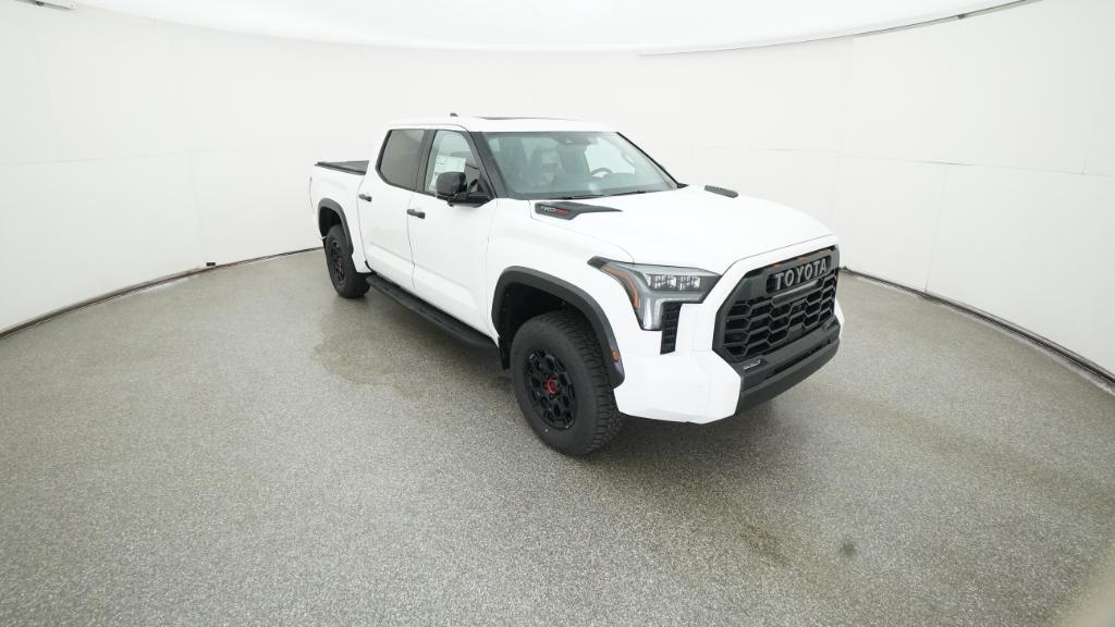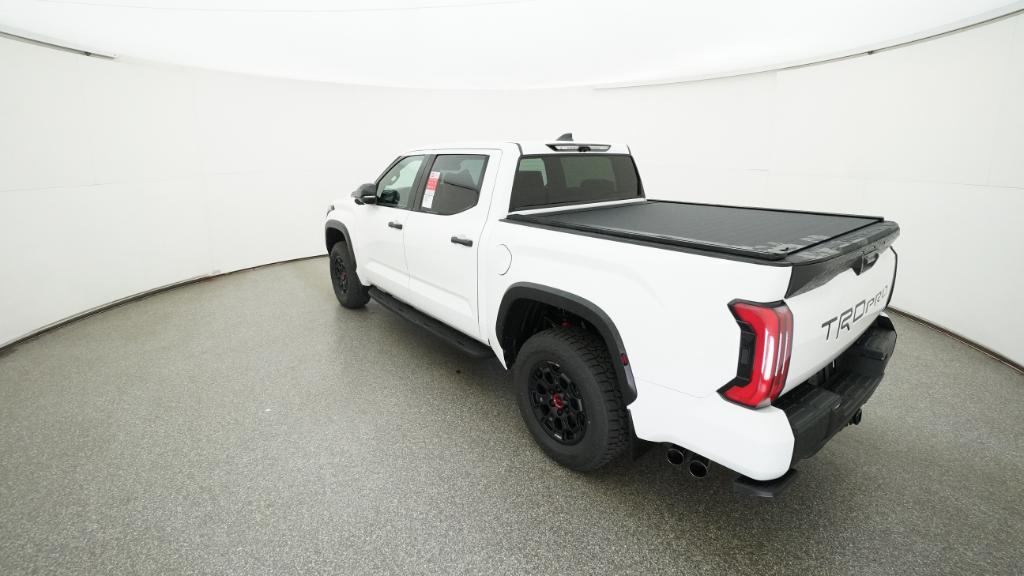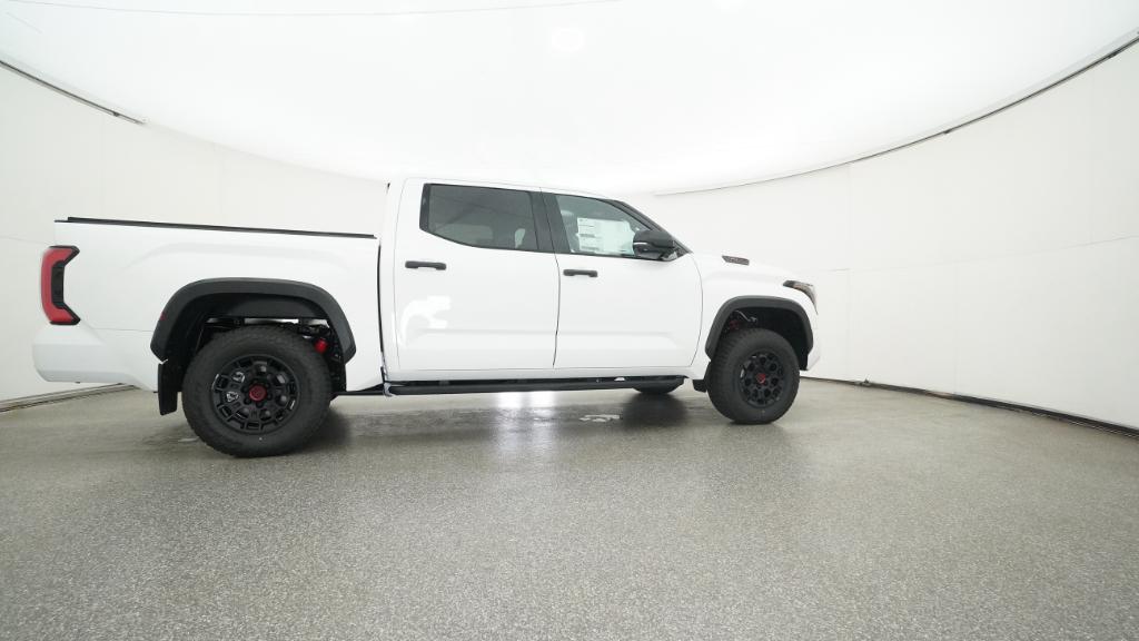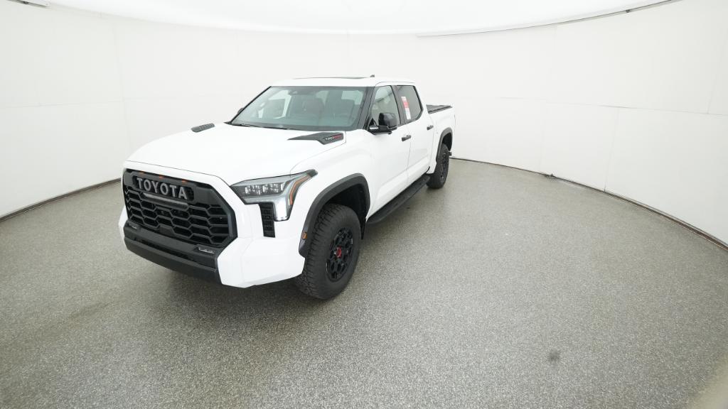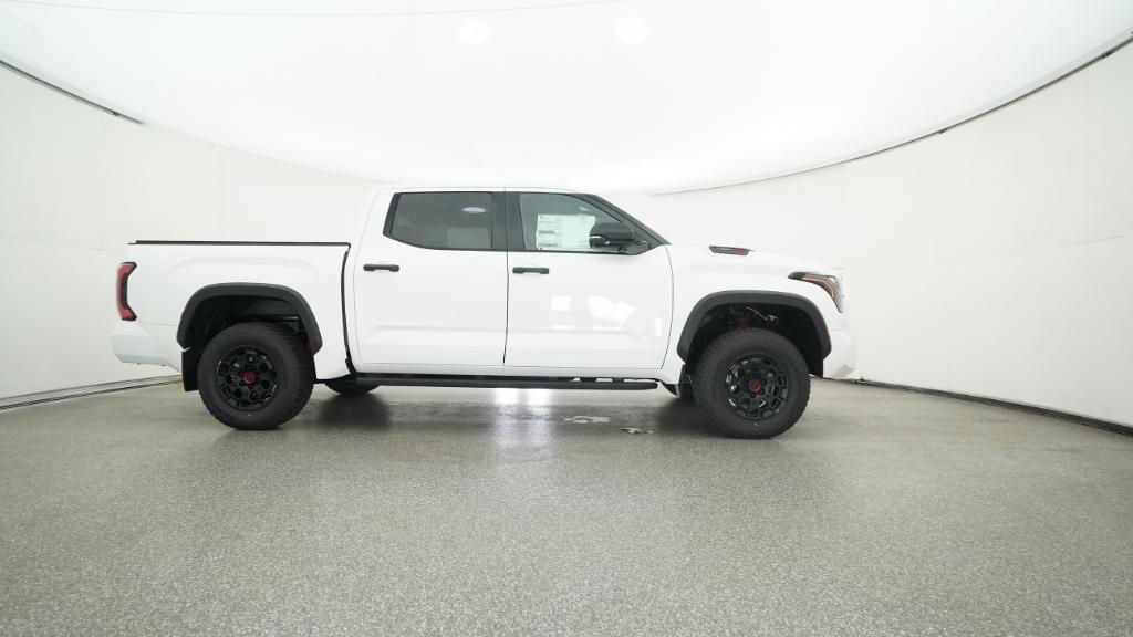 2026 Toyota Tundra Hybrid TRD Pro Ice Cap 4WD 10-Speed Automatic 3.4L V612 Speakers, 3.31 Axle Ratio, 4-Wheel Disc Brakes, ABS brakes, Air Conditioning, Alloy wheels, AM/FM radio: SiriusXM, Apple CarPlay/Android Auto, Auto High-beam Headlights, Auto-dimming door mirrors, Auto-dimming Rear-View mirror, Automatic temperature control, Brake assist, Bumpers: body-color, Delay-off headlights, Driver door bin, Driver vanity mirror, Dual front impact airbags, Dual front side impact airbags, Electronic Stability Control, Emergency communication system: Safety Connect (up to 10-year trial subscription), Exterior Parking Camera Rear, Front anti-roll bar, Front Bucket Seats, Front Center Armrest, Front dual zone A/C, Front fog lights, Front reading lights, Front wheel independent suspension, Fully automatic headlights, Garage door transmitter: HomeLink, Heated and Ventilated Front Bucket Seats, Heated door mirrors, Heated front seats, Illuminated entry, Knee airbag, Leather Shift Knob, Leather steering wheel, Low tire pressure warning, Memory seat, Navigation system: Drive Connect Cloud Navigation (1-year trial subscription), Occupant sensing airbag, Outside temperature display, Overhead airbag, Overhead console, Panic alarm, Passenger door bin, Passenger vanity mirror, Power door mirrors, Power driver seat, Power moonroof, Power passenger seat, Power steering, Power windows, Radio data system, Radio: Premium Audio with JBL, Rear reading lights, Rear seat center armrest, Rear step bumper, Rear window defroster, Remote keyless entry, Security system, SofTex Seat Trim, Speed control, Speed-sensing steering, Split folding rear seat, Sport steering wheel, Steering wheel mounted audio controls, Tachometer, Telescoping steering wheel, Tilt steering wheel, Traction control, Trip computer, Turn signal indicator mirrors, Variably intermittent wipers, Ventilated front seats, Voltmeter, Wheels: 18 Black Forged Aluminum BBS.