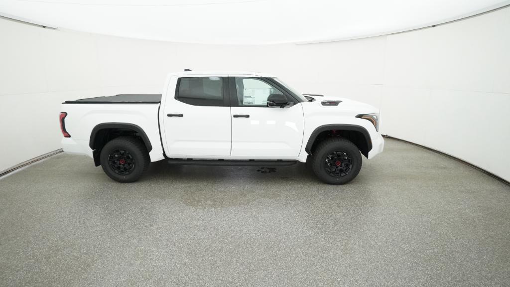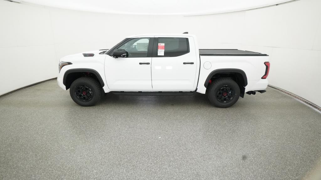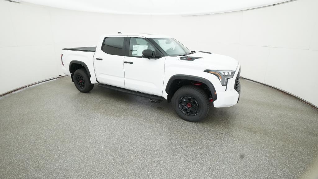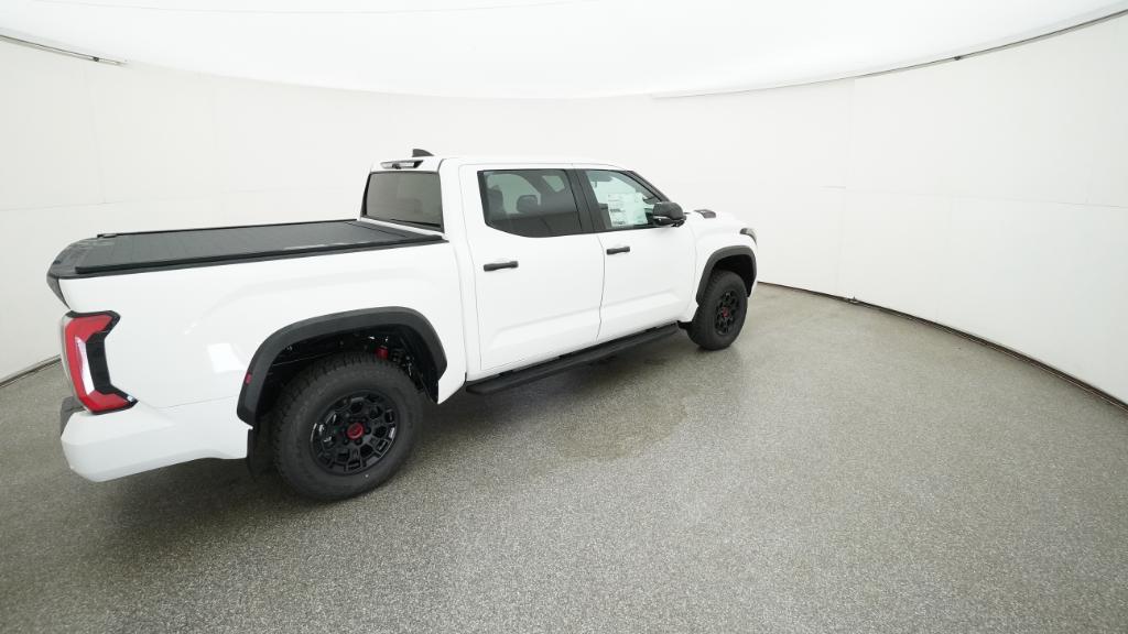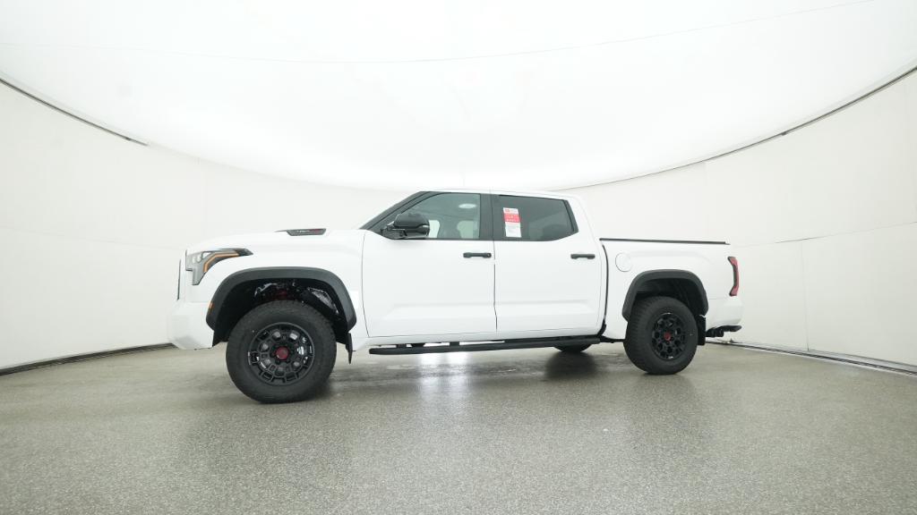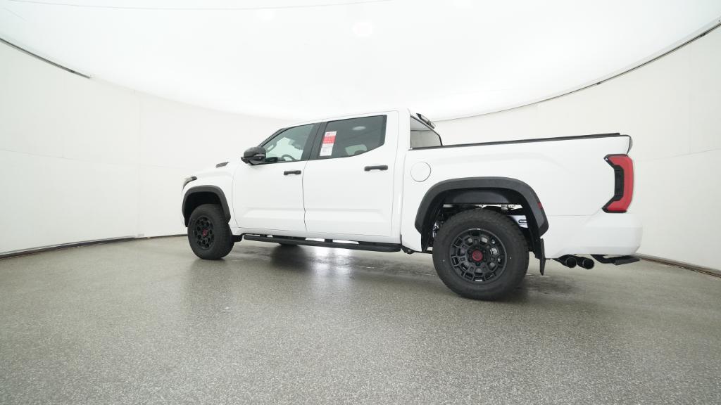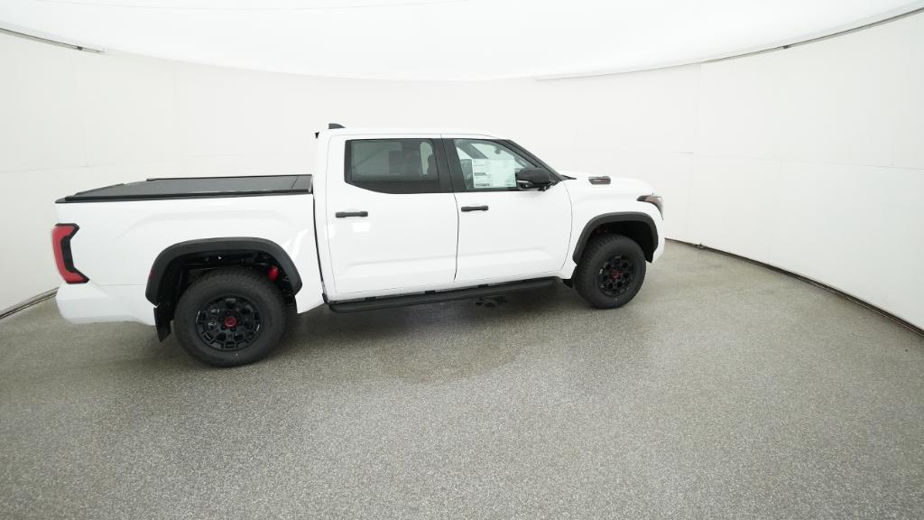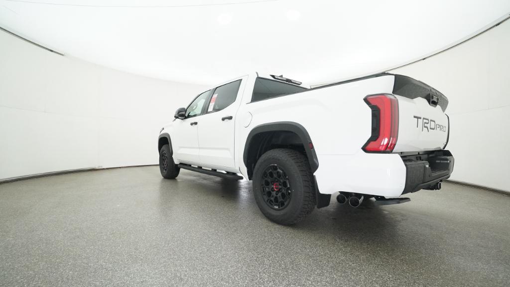 2026 Toyota Tundra Hybrid TRD Pro Ice Cap 4WD 10-Speed Automatic 3.4L V612 Speakers, 3.31 Axle Ratio, 4-Wheel Disc Brakes, ABS brakes, Air Conditioning, Alloy wheels, AM/FM radio: SiriusXM, Apple CarPlay/Android Auto, Auto High-beam Headlights, Auto-dimming door mirrors, Auto-dimming Rear-View mirror, Automatic temperature control, Brake assist, Bumpers: body-color, Delay-off headlights, Driver door bin, Driver vanity mirror, Dual front impact airbags, Dual front side impact airbags, Electronic Stability Control, Emergency communication system: Safety Connect (up to 10-year trial subscription), Exterior Parking Camera Rear, Front anti-roll bar, Front Bucket Seats, Front Center Armrest, Front dual zone A/C, Front fog lights, Front reading lights, Front wheel independent suspension, Fully automatic headlights, Garage door transmitter: HomeLink, Heated and Ventilated Front Bucket Seats, Heated door mirrors, Heated front seats, Illuminated entry, Knee airbag, Leather Shift Knob, Leather steering wheel, Low tire pressure warning, Memory seat, Navigation system: Drive Connect Cloud Navigation (1-year trial subscription), Occupant sensing airbag, Outside temperature display, Overhead airbag, Overhead console, Panic alarm, Passenger door bin, Passenger vanity mirror, Power door mirrors, Power driver seat, Power moonroof, Power passenger seat, Power steering, Power windows, Radio data system, Radio: Premium Audio with JBL, Rear reading lights, Rear seat center armrest, Rear step bumper, Rear window defroster, Remote keyless entry, Security system, SofTex Seat Trim, Speed control, Speed-sensing steering, Split folding rear seat, Sport steering wheel, Steering wheel mounted audio controls, Tachometer, Telescoping steering wheel, Tilt steering wheel, Traction control, Trip computer, Turn signal indicator mirrors, Variably intermittent wipers, Ventilated front seats, Voltmeter, Wheels: 18 Black Forged Aluminum BBS.