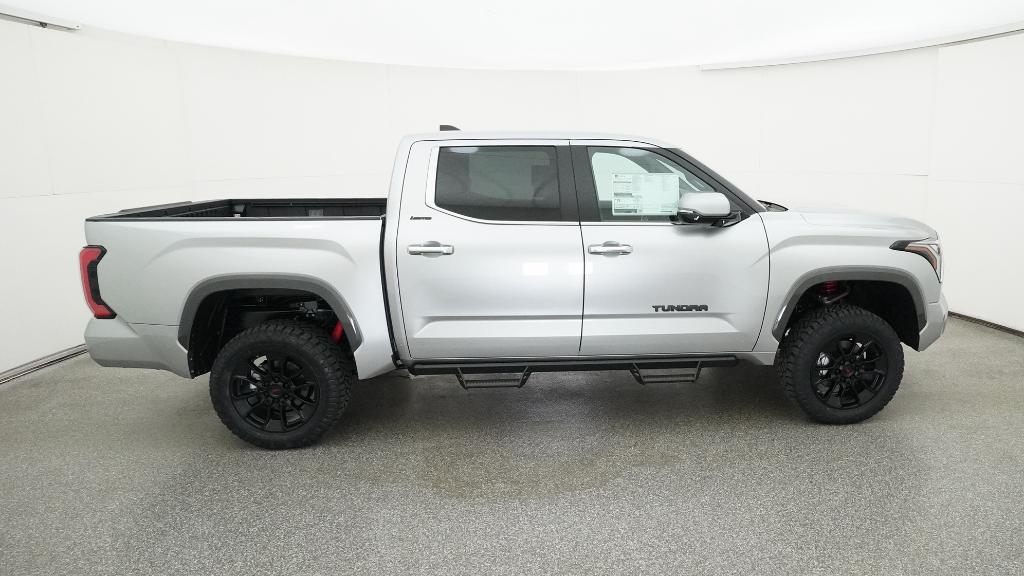 2026 Toyota Tundra Limited Celestial Silver Metallic 4WD 10-Speed Automatic 3.4L V620 Alloy Wheels, 3.31 Axle Ratio, 4-Wheel Disc Brakes, 8-Way Power Adjustable Heated/Ventilated Front Seats, 9 Speakers, ABS brakes, Air Conditioning, Alloy wheels, AM/FM radio: SiriusXM, Apple CarPlay/Android Auto, Auto High-beam Headlights, Auto-dimming door mirrors, Auto-dimming Rear-View mirror, Automatic temperature control, Brake assist, Bumpers: body-color, Delay-off headlights, Driver door bin, Driver vanity mirror, Dual front impact airbags, Dual front side impact airbags, Electronic Stability Control, Emergency communication system: Safety Connect (up to 10-year trial subscription), Exterior Parking Camera Rear, Front anti-roll bar, Front Bucket Seats, Front Center Armrest, Front dual zone A/C, Front fog lights, Front reading lights, Front wheel independent suspension, Fully automatic headlights, Garage door transmitter: HomeLink, Heated door mirrors, Heated front seats, Illuminated entry, Knee airbag, Leather Seat Trim, Leather Shift Knob, Leather steering wheel, Low tire pressure warning, Memory seat, Navigation system: Drive Connect Cloud Navigation (1-year trial subscription), Occupant sensing airbag, Outside temperature display, Overhead airbag, Overhead console, Panic alarm, Passenger door bin, Passenger vanity mirror, Power door mirrors, Power driver seat, Power passenger seat, Power steering, Power windows, Radio data system, Radio: Audio Plus, Rear reading lights, Rear seat center armrest, Rear step bumper, Rear window defroster, Remote keyless entry, Safety Connect, Security system, Speed control, Speed-sensing steering, Split folding rear seat, Steering wheel mounted audio controls, Tachometer, Telescoping steering wheel, Tilt steering wheel, Traction control, Trip computer, Turn signal indicator mirrors, Variably intermittent wipers, Ventilated front seats, Voltmeter.