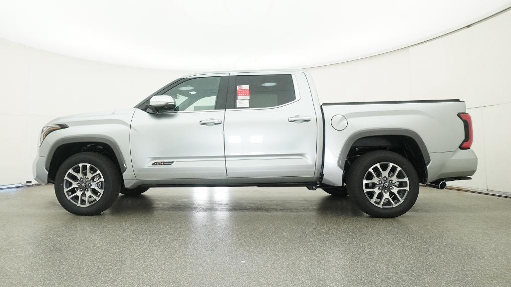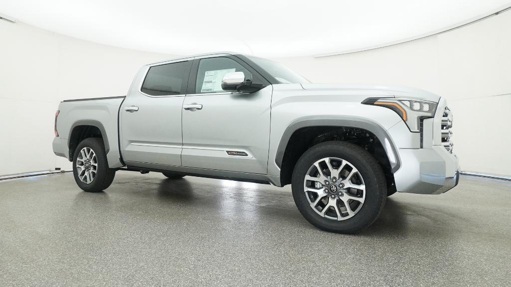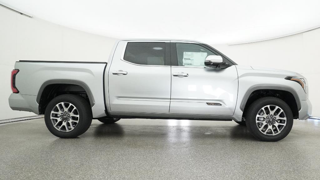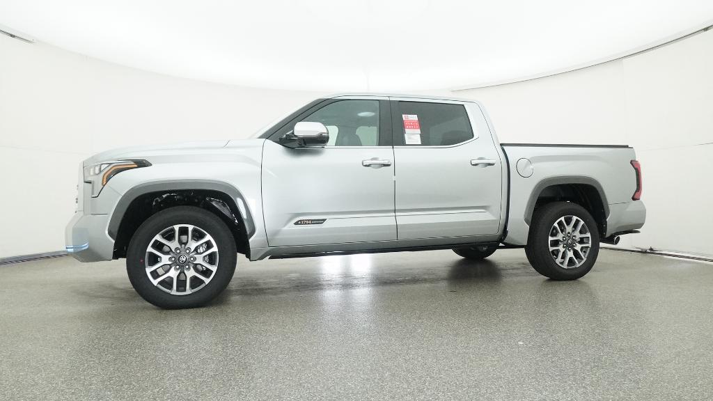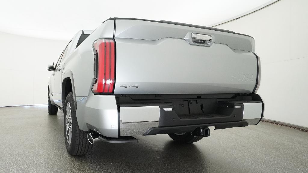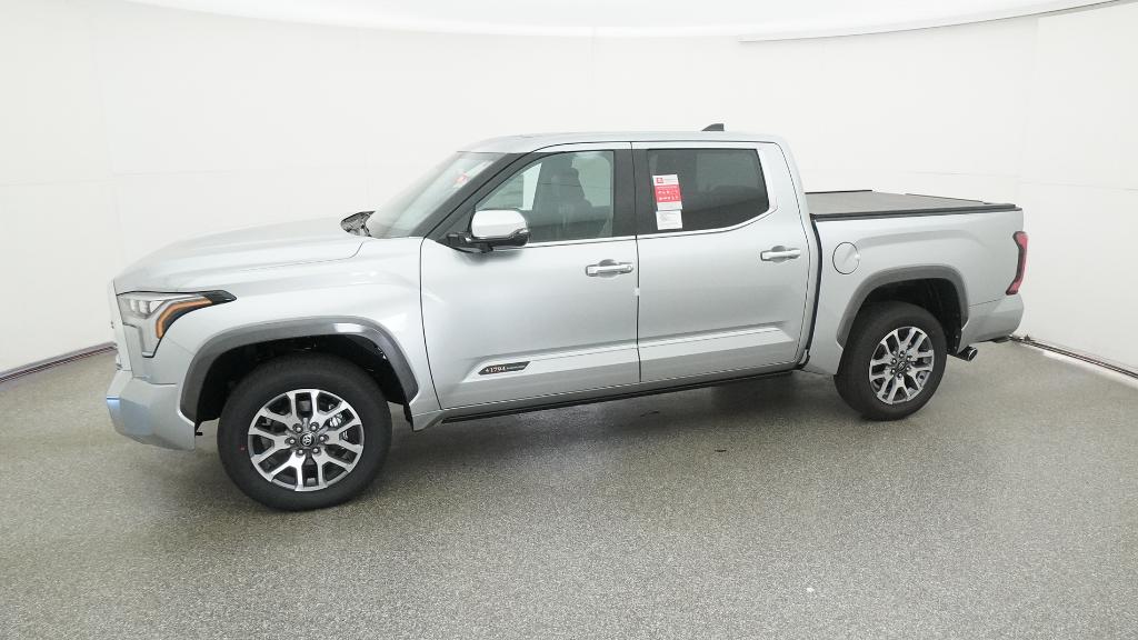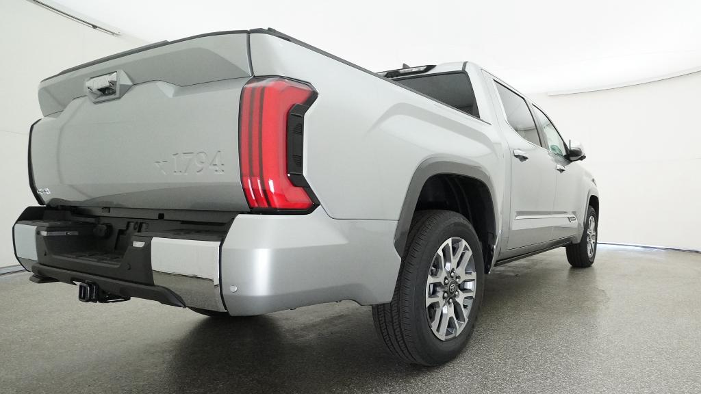 2026 Toyota Tundra 1794 Celestial Silver Metallic 4WD 10-Speed Automatic 3.4L V610-Way Power Adjustable Heated and Ventilated Front Seats, 12 Speakers, 3.31 Axle Ratio, 4-Wheel Disc Brakes, ABS brakes, Air Conditioning, Alloy wheels, AM/FM radio: SiriusXM, Apple CarPlay/Android Auto, Auto High-beam Headlights, Auto-dimming door mirrors, Auto-dimming Rear-View mirror, Automatic temperature control, Brake assist, Bumpers: body-color, Chrome Exhaust Tail Pipe & Diffuser, Compass, Delay-off headlights, Driver door bin, Driver vanity mirror, Dual front impact airbags, Dual front side impact airbags, Electronic Stability Control, Emergency communication system: Safety Connect (up to 10-year trial subscription), Exterior Parking Camera Rear, Front anti-roll bar, Front Bucket Seats, Front Center Armrest, Front dual zone A/C, Front fog lights, Front reading lights, Front wheel independent suspension, Fully automatic headlights, Garage door transmitter: HomeLink, Heated door mirrors, Heated front seats, Heated rear seats, Heated steering wheel, Illuminated entry, Knee airbag, Leather Shift Knob, Leather steering wheel, Low tire pressure warning, Memory seat, Navigation system: Drive Connect Cloud Navigation (1-year trial subscription), Occupant sensing airbag, Outside temperature display, Overhead airbag, Overhead console, Panic alarm, Passenger door bin, Passenger vanity mirror, Power door mirrors, Power driver seat, Power moonroof, Power passenger seat, Power steering, Power windows, Premium Leather Seat Trim, Radio data system, Radio: Premium Audio, Rain sensing wipers, Rear reading lights, Rear seat center armrest, Rear step bumper, Rear window defroster, Remote keyless entry, Safety Connect, Security system, Speed control, Speed-sensing steering, Speed-Sensitive Wipers, Split folding rear seat, Steering wheel memory, Steering wheel mounted audio controls, Tachometer, Telescoping steering wheel, Tilt steering wheel, Traction control, Trip computer, Turn signal indicator mirrors, Variably intermittent wipers, Ventilated front seats, Ventilated rear seats, Voltmeter, Wheels: 20 Machined Finish Alloy.
