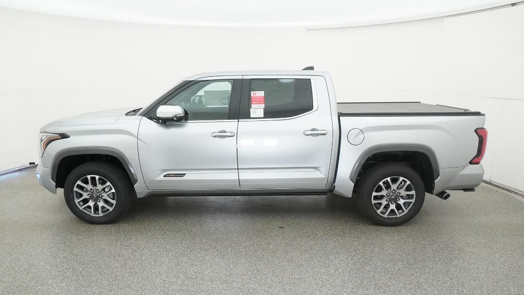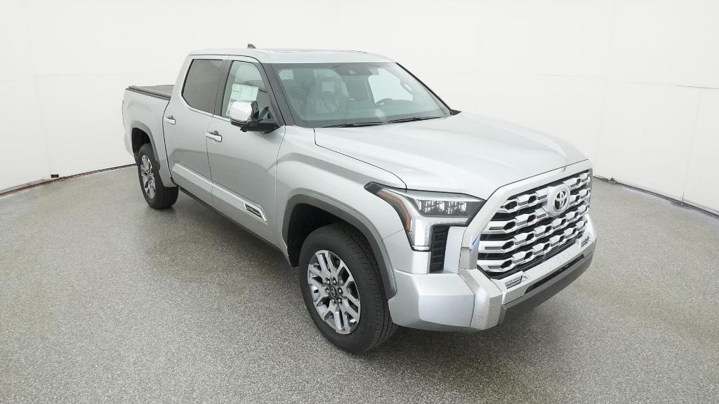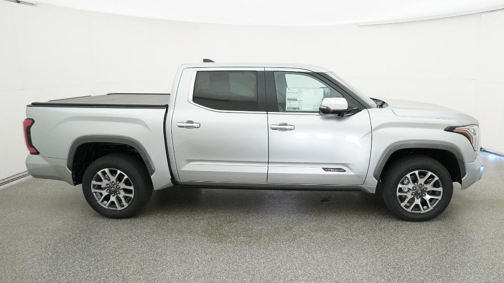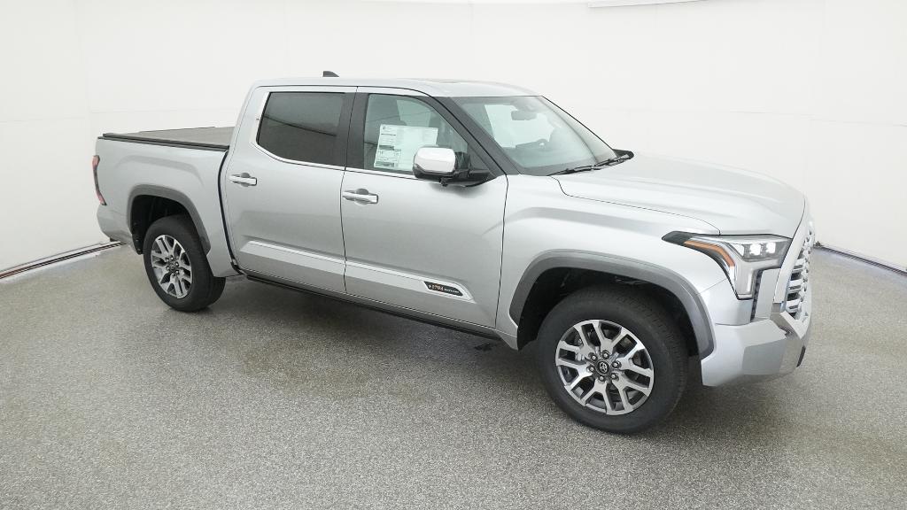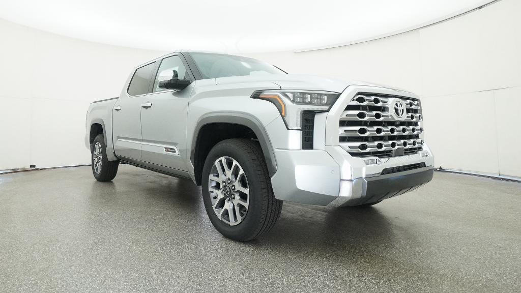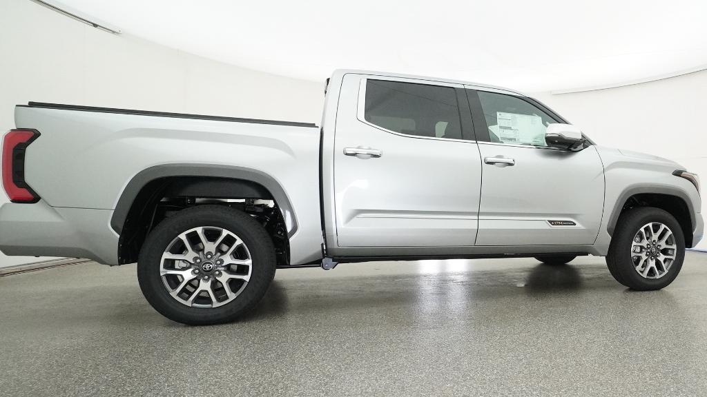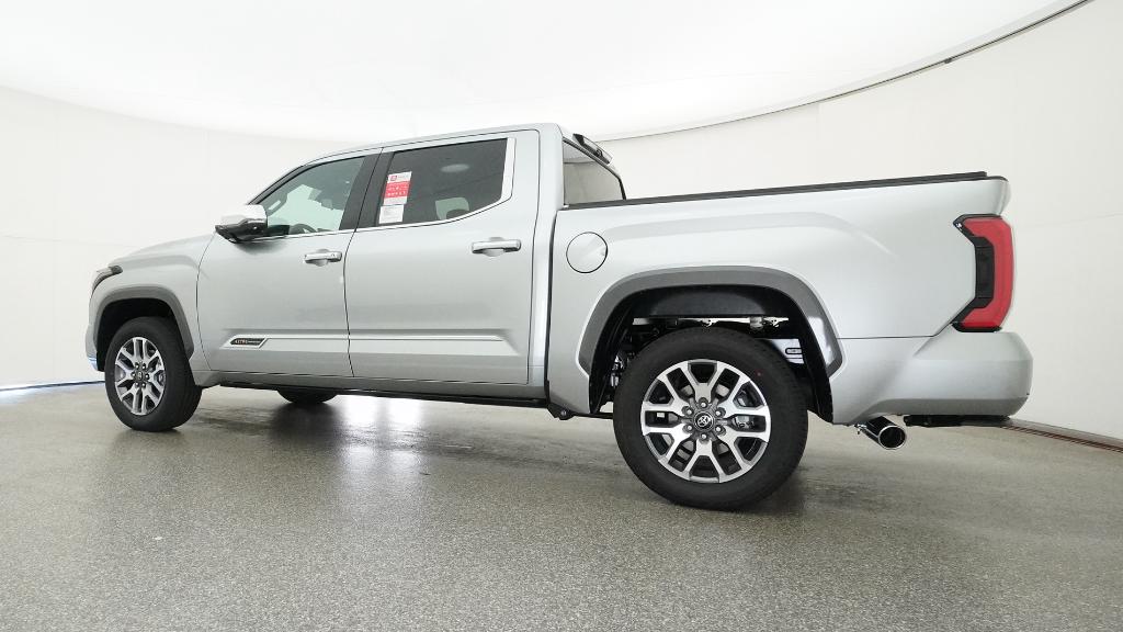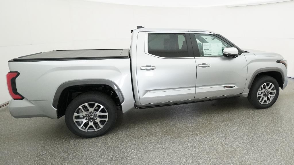 2026 Toyota Tundra 1794 Celestial Silver Metallic 4WD 10-Speed Automatic 3.4L V610-Way Power Adjustable Heated and Ventilated Front Seats, 12 Speakers, 3.31 Axle Ratio, 4-Wheel Disc Brakes, ABS brakes, Air Conditioning, Alloy wheels, AM/FM radio: SiriusXM, Apple CarPlay/Android Auto, Auto High-beam Headlights, Auto-dimming door mirrors, Auto-dimming Rear-View mirror, Automatic temperature control, Brake assist, Bumpers: body-color, Chrome Exhaust Tail Pipe & Diffuser, Compass, Delay-off headlights, Driver door bin, Driver vanity mirror, Dual front impact airbags, Dual front side impact airbags, Electronic Stability Control, Emergency communication system: Safety Connect (up to 10-year trial subscription), Exterior Parking Camera Rear, Front anti-roll bar, Front Bucket Seats, Front Center Armrest, Front dual zone A/C, Front fog lights, Front reading lights, Front wheel independent suspension, Fully automatic headlights, Garage door transmitter: HomeLink, Heated door mirrors, Heated front seats, Heated rear seats, Heated steering wheel, Illuminated entry, Knee airbag, Leather Shift Knob, Leather steering wheel, Low tire pressure warning, Memory seat, Navigation system: Drive Connect Cloud Navigation (1-year trial subscription), Occupant sensing airbag, Outside temperature display, Overhead airbag, Overhead console, Panic alarm, Passenger door bin, Passenger vanity mirror, Power door mirrors, Power driver seat, Power moonroof, Power passenger seat, Power steering, Power windows, Premium Leather Seat Trim, Radio data system, Radio: Premium Audio, Rain sensing wipers, Rear reading lights, Rear seat center armrest, Rear step bumper, Rear window defroster, Remote keyless entry, Safety Connect, Security system, Speed control, Speed-sensing steering, Speed-Sensitive Wipers, Split folding rear seat, Steering wheel memory, Steering wheel mounted audio controls, Tachometer, Telescoping steering wheel, Tilt steering wheel, Traction control, Trip computer, Turn signal indicator mirrors, Variably intermittent wipers, Ventilated front seats, Ventilated rear seats, Voltmeter, Wheels: 20 Machined Finish Alloy.